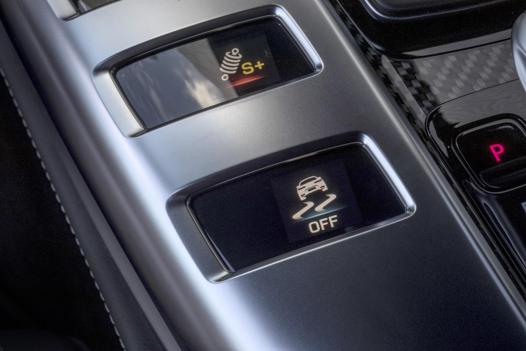The last part is aero. Most noticeable is the active rear spoiler, integrated into the trunklid. Not only does it extend when required and retract when not, it has five different stages of deployment, all controlled automatically depending on vehicle speed. At up to 49 mph, for example, the spoiler rises to improve on downforce and aerodynamic efficiency as the car accumulates speed. Stage 2 comes upon reaching 87 mph, to boost downforce, while Stage 3 doesn't arrive until 161 mph, delivering maximum downforce and stability.