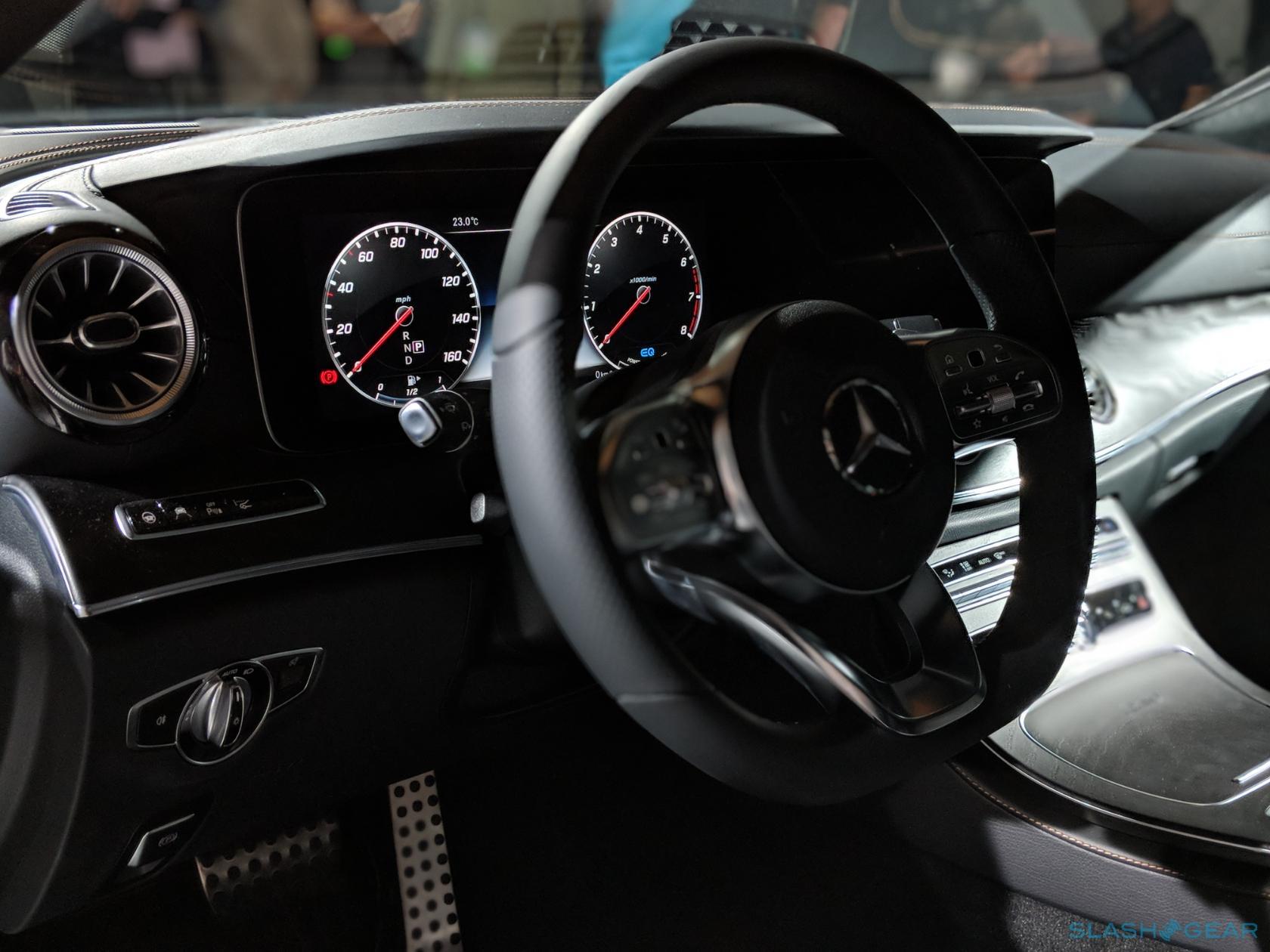 Inside, there's a new cabin with the twin displays of the S-Class as an option. Multi-color LED lighting and Burmester audio are options, and there's now space for three in the back. It'll arrive in US dealerships come Fall 2018.