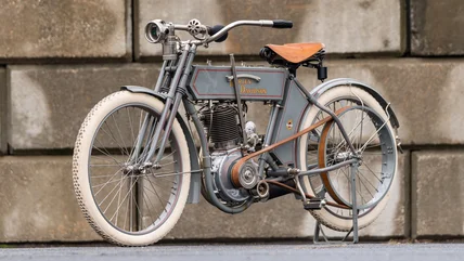 The record-setting Strap Tank was one of 450 motorcycles produced by Harley-Davidson that year, and is among the company's earliest surviving models. What made it particularly exceptional was that the bike was largely original, having been discovered in a barn in 1941 and then carefully stored by its owner in Wisconsin for over six decades. It was then restored by a specialist and eventually made its way to auction, complete with its original four-horsepower engine.
