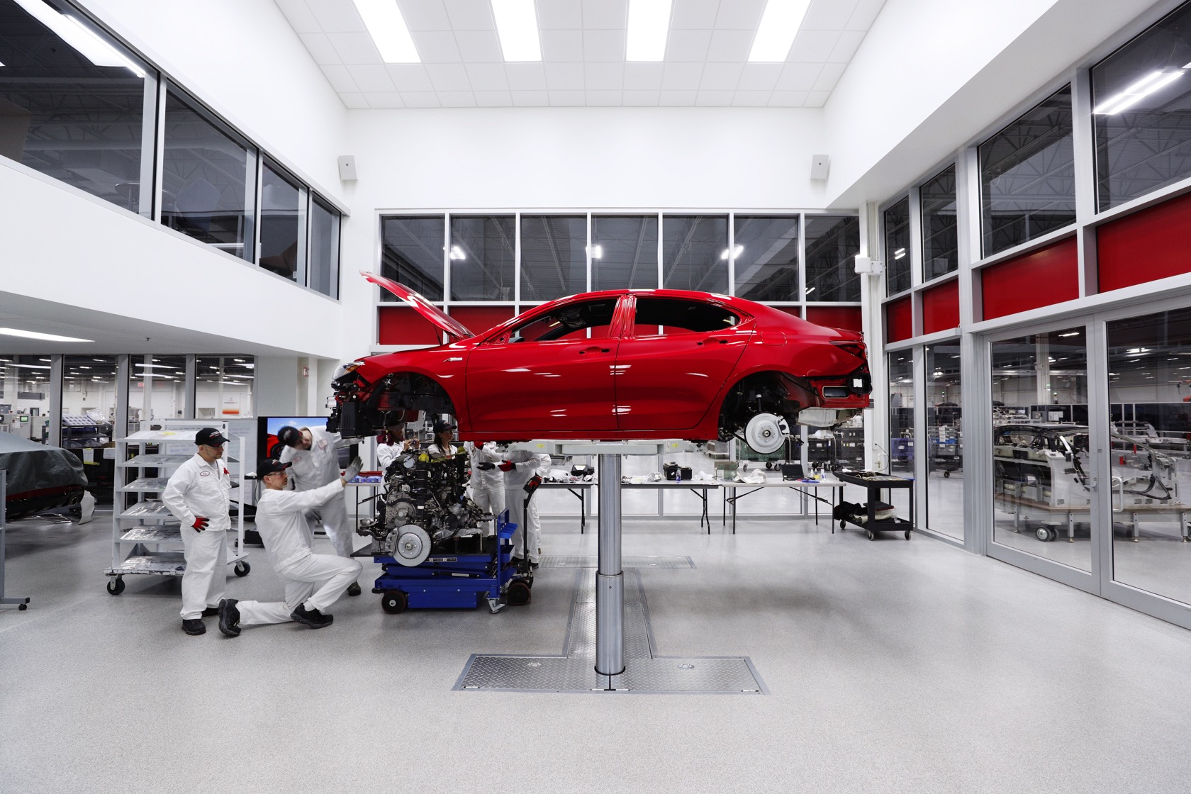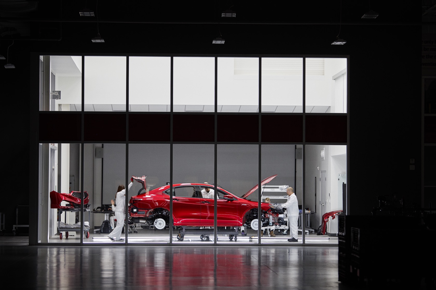The previously NSX-only Valencia Red Pearl paint will be standard, a labor-intensive finish that takes five days to complete. The V6 engine, SH-AWD system, and A-Spec body kit will be standard, as will the TLX's top spec tech package. They'll all get PMC Edition tweaks, however.