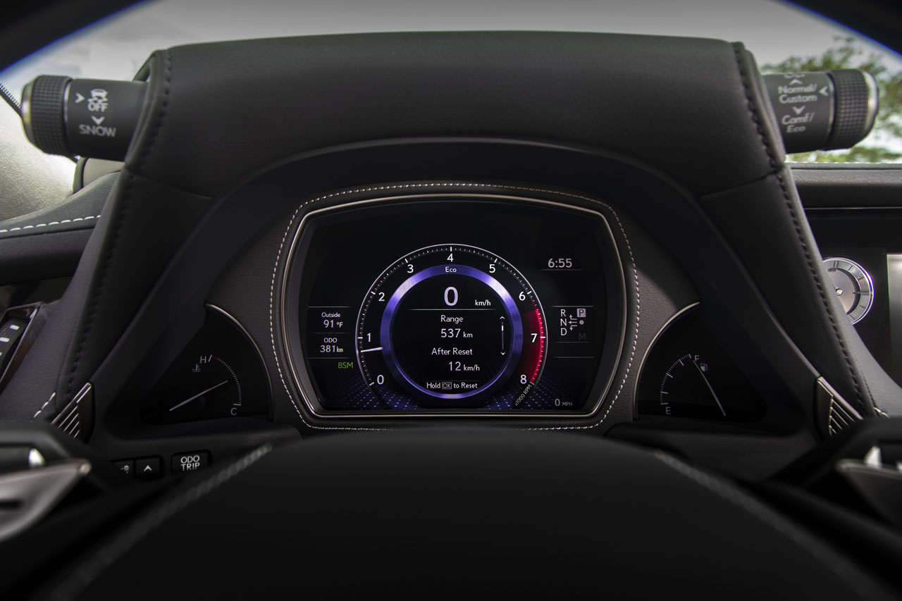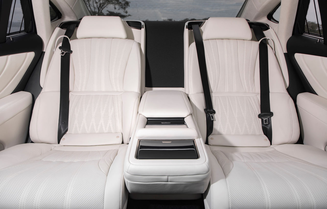 The door panels have Kiriko glass trim that was previously only offered on the Executive Package. The design of the glass panel is meant to reflect the white door trim and the Mark Levinson speaker grills. Lexus says that the glass bridges the light and dark elements.