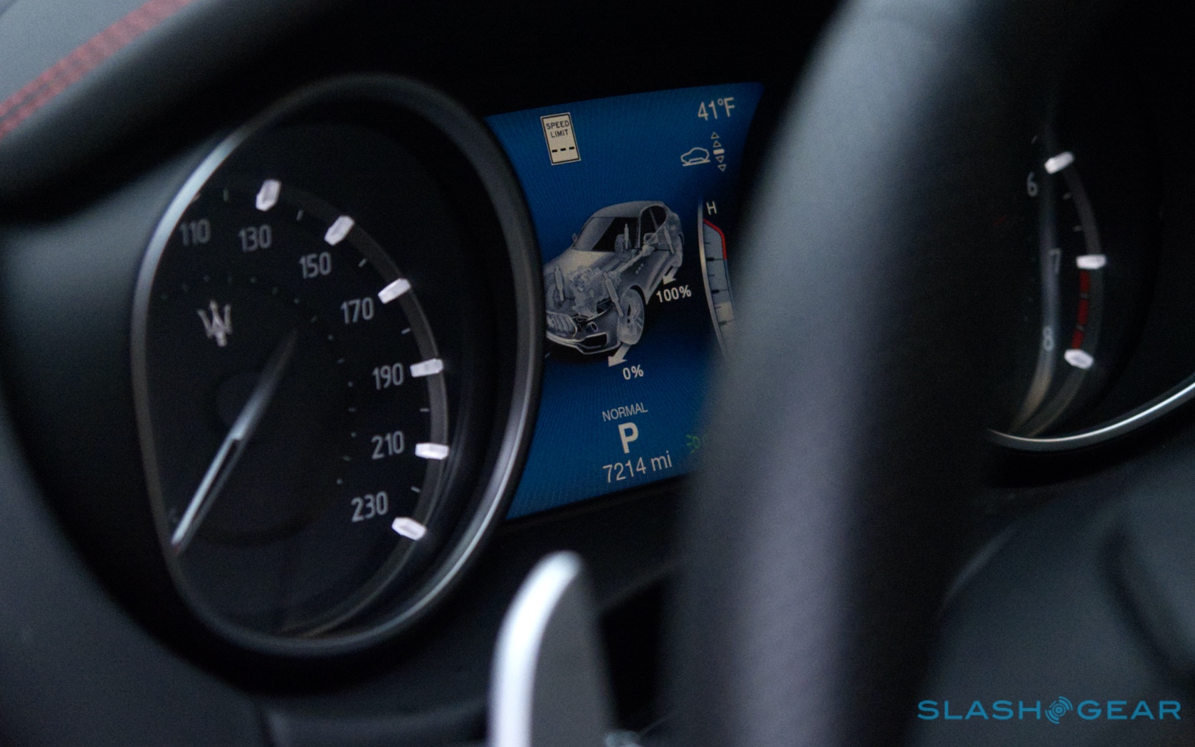 Outside, it looks as good as it sounds. Big grille, squinting lights, and some brash brightwork to counter the carbon fiber. Inside, there's a little too much Fiat Chrysler parts-bin raiding to meet the price tag, frankly. Question is, is that enough to distract you from how this supercar-hearted crossover drives and sounds.