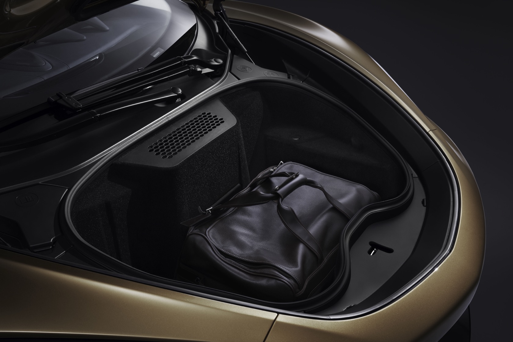 So, outside it looks every bit a sports car performer. It's actually longer than any car in the Sports or Super Series, though better front approach angles and ride height should make urban driving less of a headache. Expanded rear and front trunks, meanwhile, add up to more than twenty cubic feet of cargo space.