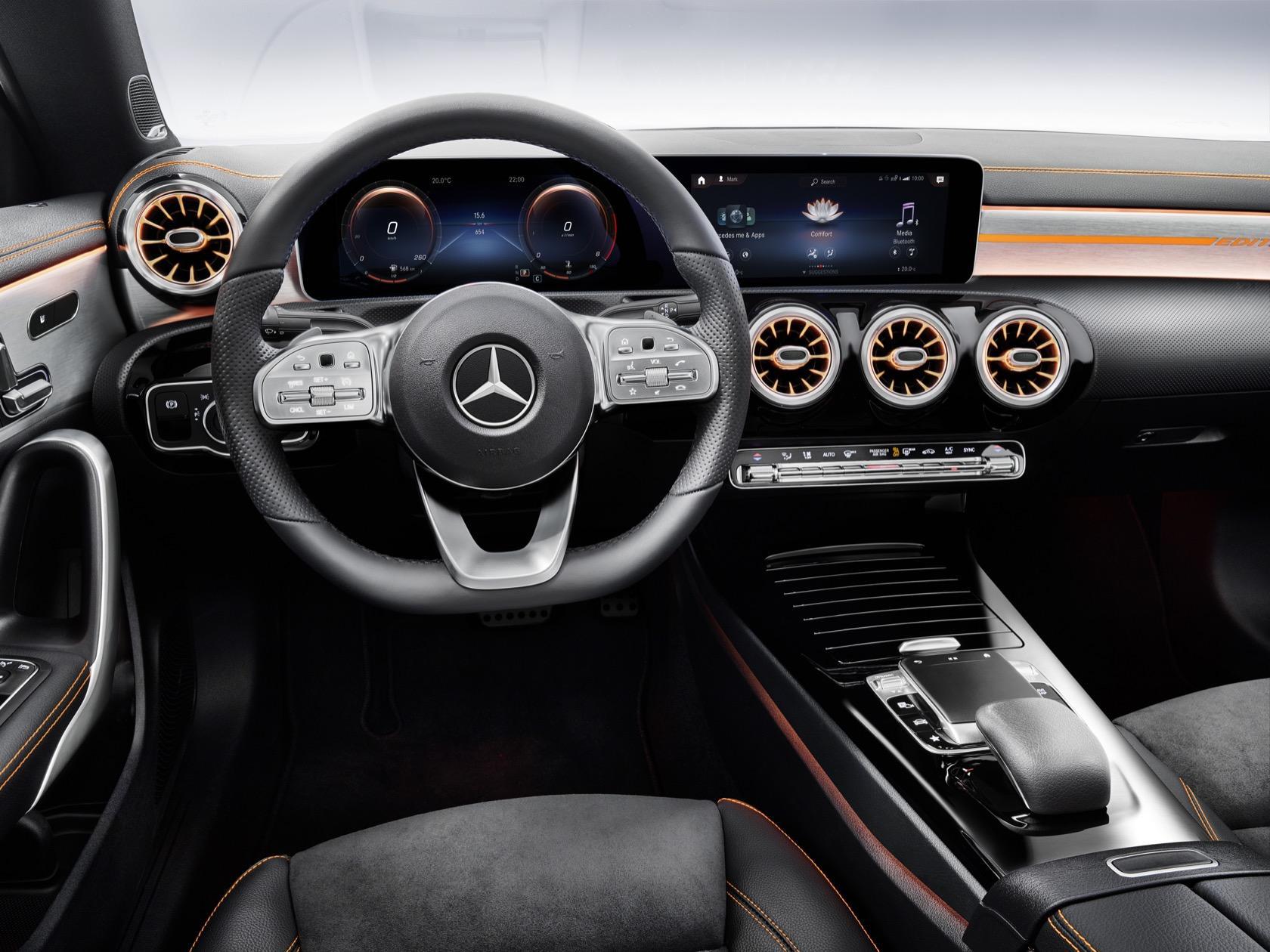 The tech, though, is primarily found inside. Like the 2019 A-Class, the new CLA uses the Mercedes-Benz User Experience, or MBUX, complete with twin 7-inch freestanding displays, voice control, and now gesture recognition. It'll arrive in US dealerships in late 2019.