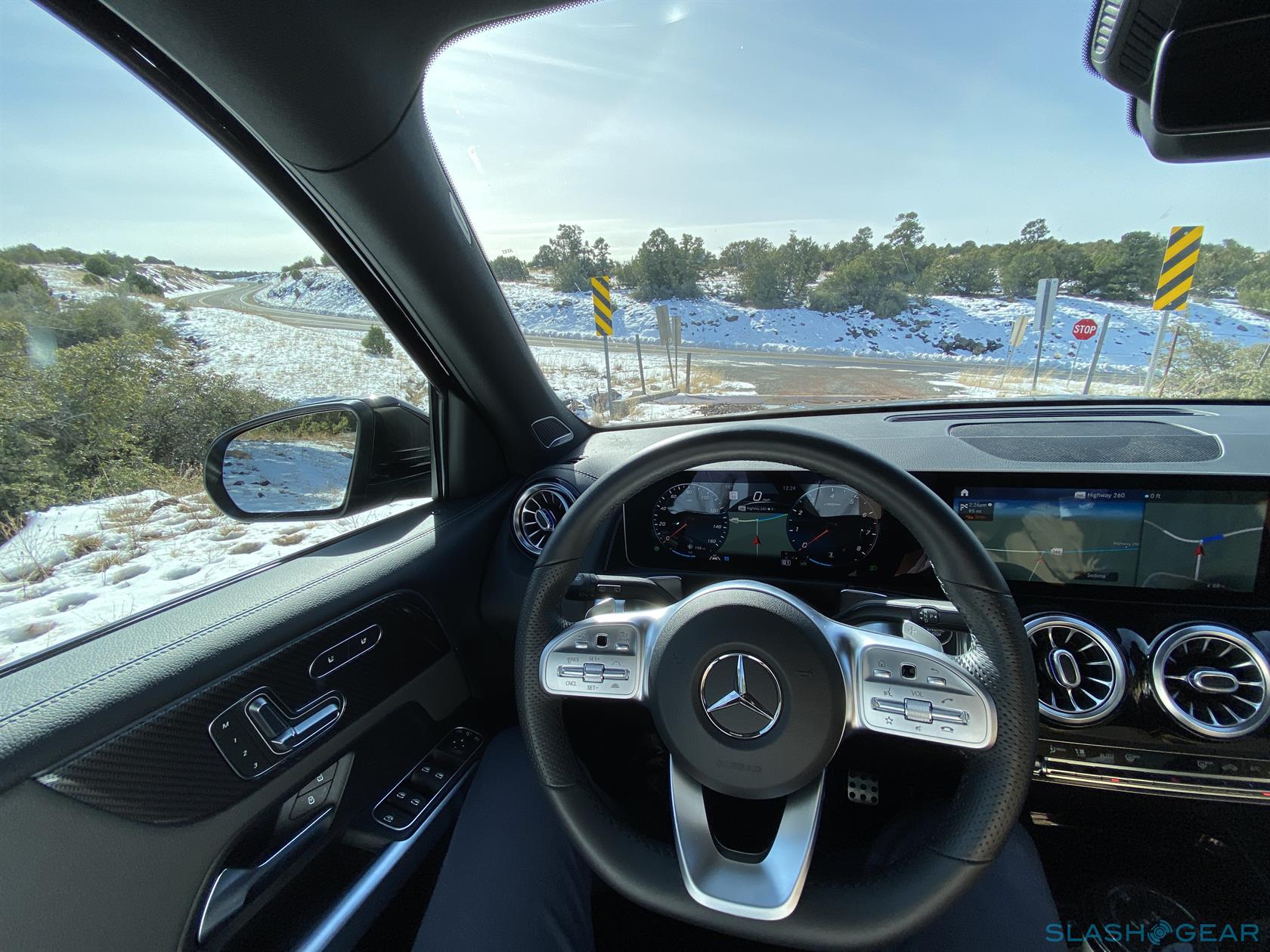 Most important, peak torque is accessible from 1,800 all the way to 4,000 rpm, which gives the smaller gas motor the sensation of a torque-rich diesel. That'll have to make up for the fact that the US won't be getting a diesel GLB anytime soon. Most buyers, I suspect, won't notice or care that from a dead stop it's not terribly zippy: once you get it going, it feels much faster. 0 to 60 mph arrives in 6.9 seconds.