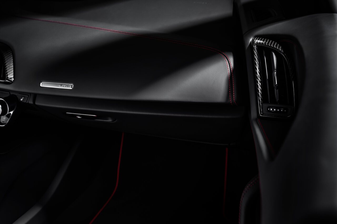 Meanwhile, the interior is black-and-red like the exterior. Crimson Red leather seats are standard, while the rest of the cabin is covered in black leather with red stitching. On the other hand, the steering wheel, gear shifter, and headliner are swathed in fine Alcantara.
