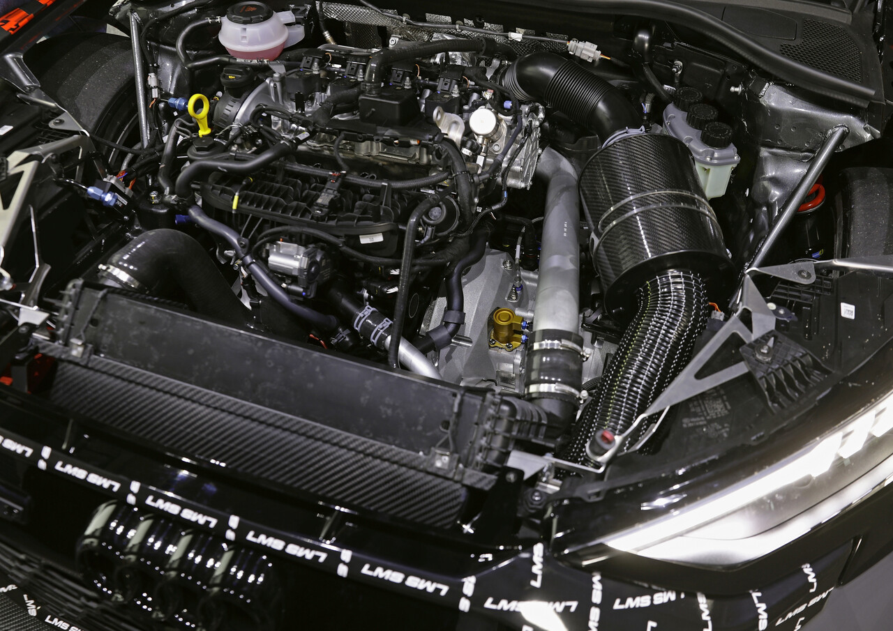 Standard in the RS3 LMS is an FIA-approved roll cage, a fire suppression system, dual-circuit brakes with adjustable pressure distribution, and a removable roof hatch. Meanwhile, the suspension has adjustable front and rear sway bars with varying-thickness suspension arms.