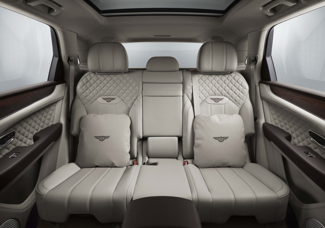 Let's talk more about the accessory kits, shall we? The Exterior accessory pack includes carbon-fiber mirror cowls and optional fixed side steps with rubberized treads. The steps are available in three finishes: Carbon, Moonbeam, and Black Gloss. Meanwhile, the Interior pack is more oriented towards luxury and practicality. It includes leather scatter cushions, additional footrests with deep-pile carpeting, and a bespoke luggage set including a range of Bentley golf bags.