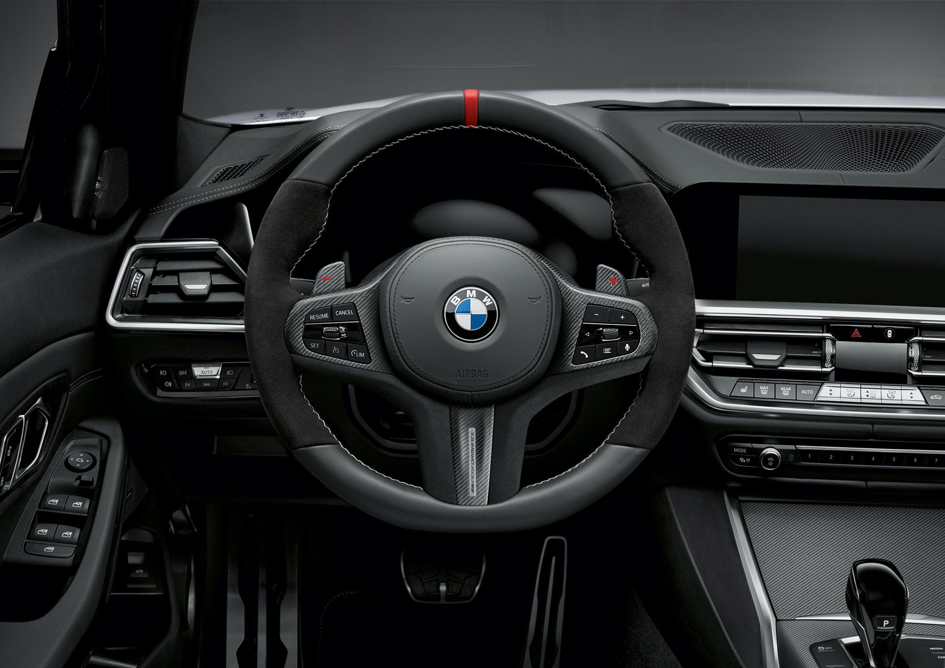 The interior is not spared from carbon-fiber. The package includes carbon trimmings on the dashboard and steering wheel, the latter of which features a red 12 o'clock marker and is wrapped in a combination of cowhide and fine Alcantara. The car featured here is the M440i xDrive model equipped with a more powerful 3.0-liter turbocharged engine with a 48-volt mild-hybrid assist system. It's good enough to sprint from zero to 60 mph in 4.5-seconds.