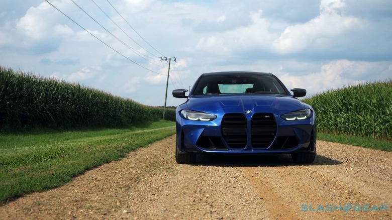 Maybe it's early-onset dementia, or the fact that this 2021 BMW M4 Coupe is finished in handsome Portimao Blue Metallic and not the bilious green launch color, or perhaps Bavaria's designers were right all along, but I find myself not hating the M4's most controversial styling feature. Much has been said about the expansive snout on BMW's enthusiast coupe, and vanishingly small amounts of it proved positive, but I find myself bucking the trend.