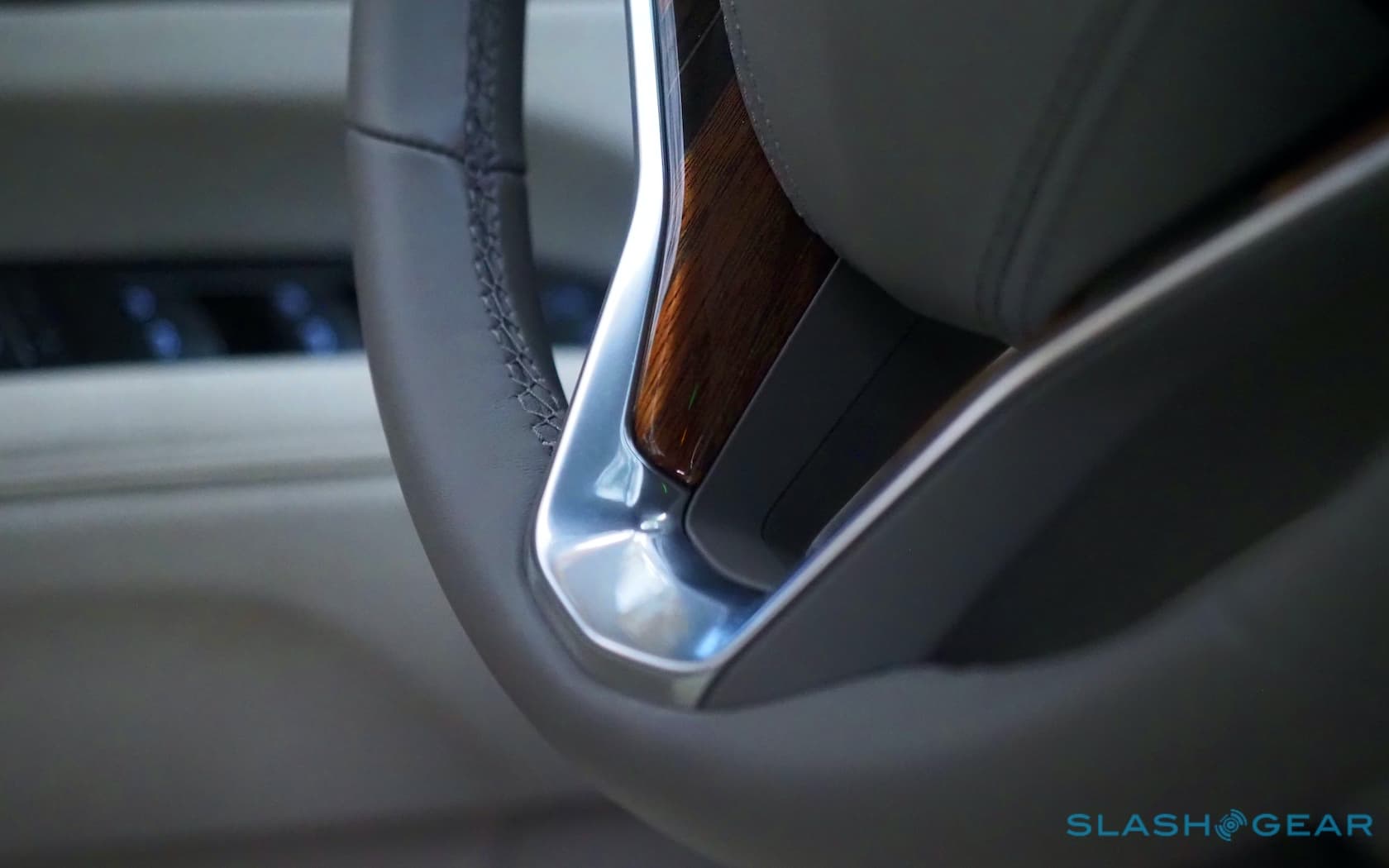 There are hints of Cadillac's well-received Escala concept, and I only wish that had continued around to the side. The Escalade's crease-lines may be a little crisper, but it's still a little too easy to see the family resemblance to the Chevrolet Tahoe with which it shares a platform. At least, once you get to the back, those iconic vertical light bars are still present and correct. There's no mistaking what you're following when you're in the Caddy's wake.