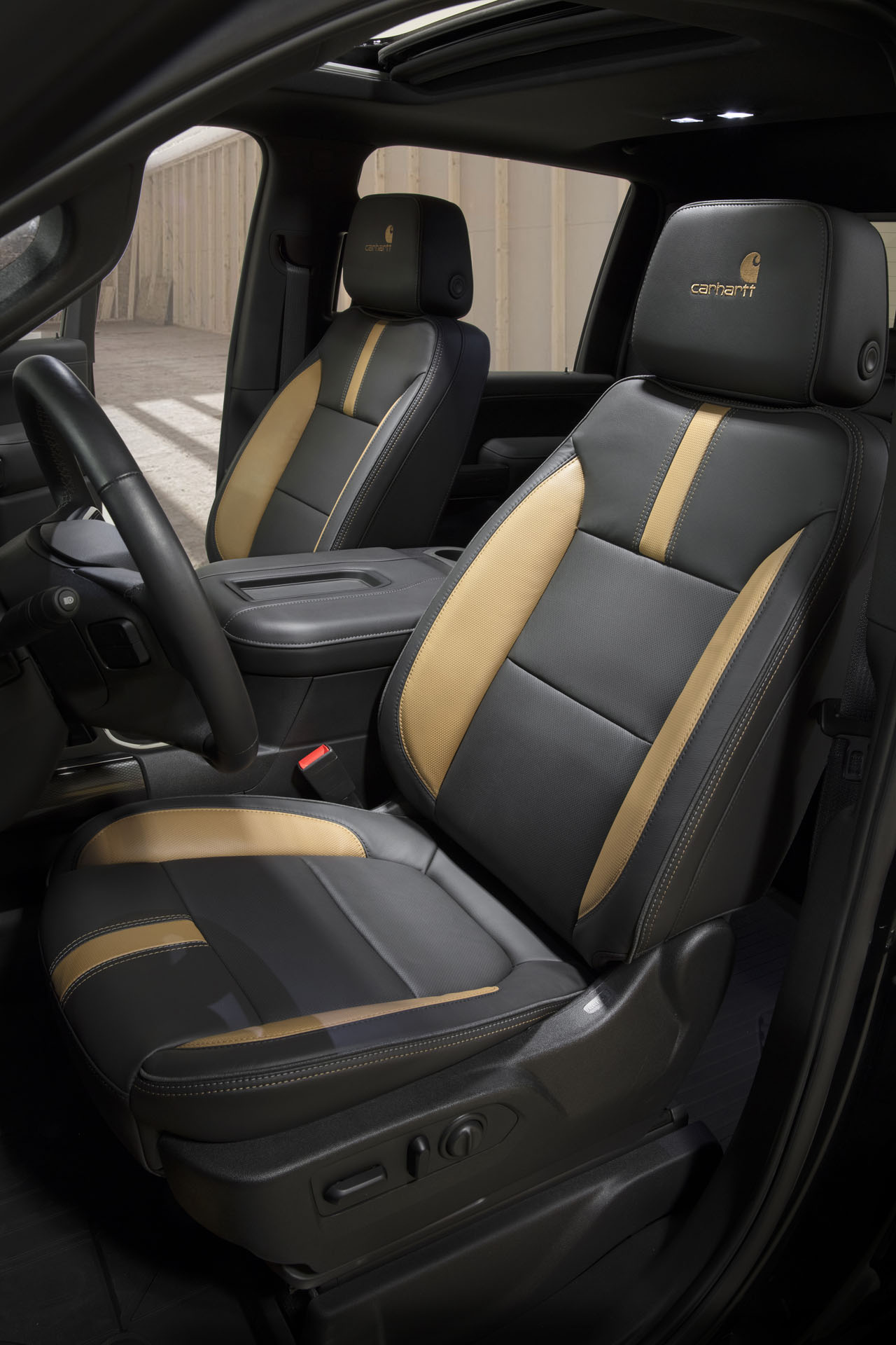 The Rear Trailer View camera offers guidelines and a trailer-angle indicator, and the rear side view capability has been enhanced. There are several special editions of the Silverado HD pickup, including the Carhartt Special Edition pictured here that's offered exclusively on the LTZ. Another is the Midnight Edition offered on black LTZ and LT trims, offering a blacked-out appearance and standard mud-terrain tires.