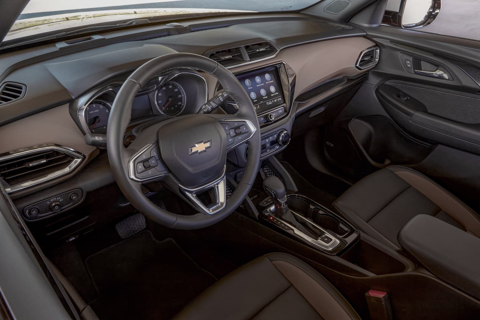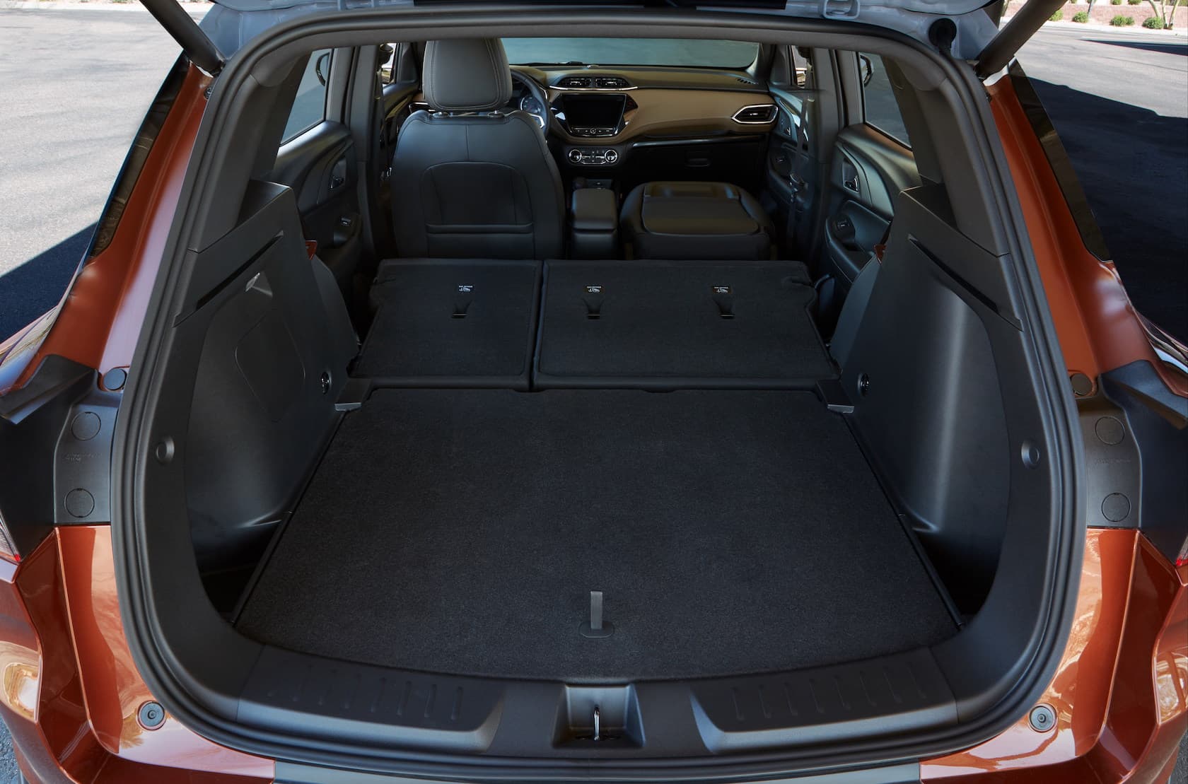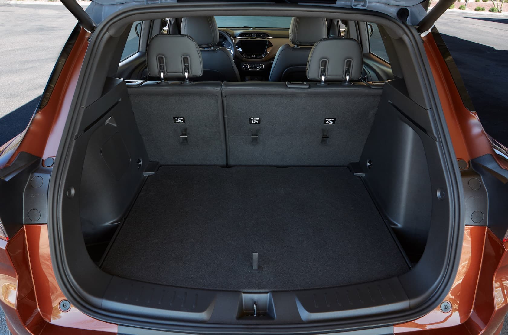 25.3 cu-ft of cargo space with the rear seats up expands to 54.4 cu-ft with them down. Honda's HR-V has more; Nissan's Kicks has less. What the Chevy gets that neither rival offers is a folding front passenger seat, opening almost the full length of the cabin for hauling longer items. The HR-V and Trailblazer have more legroom in the rear than the Kicks does, too.
