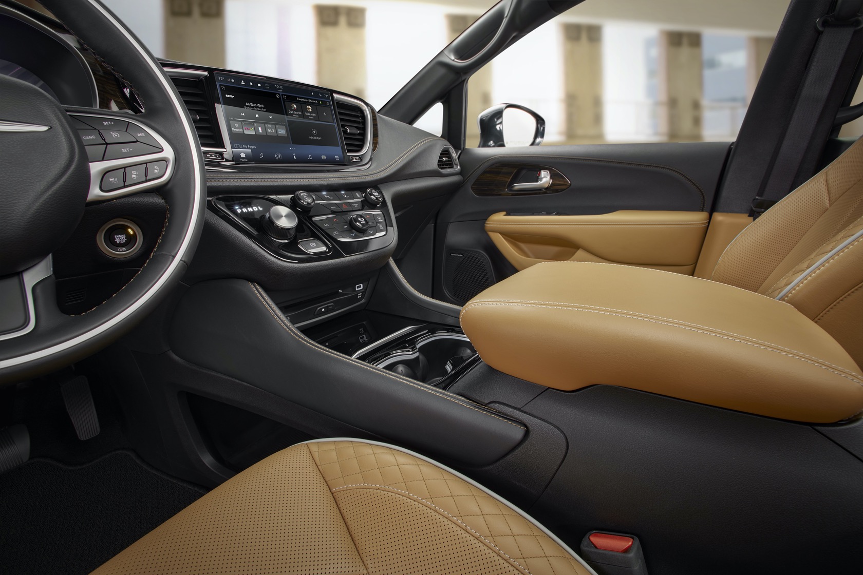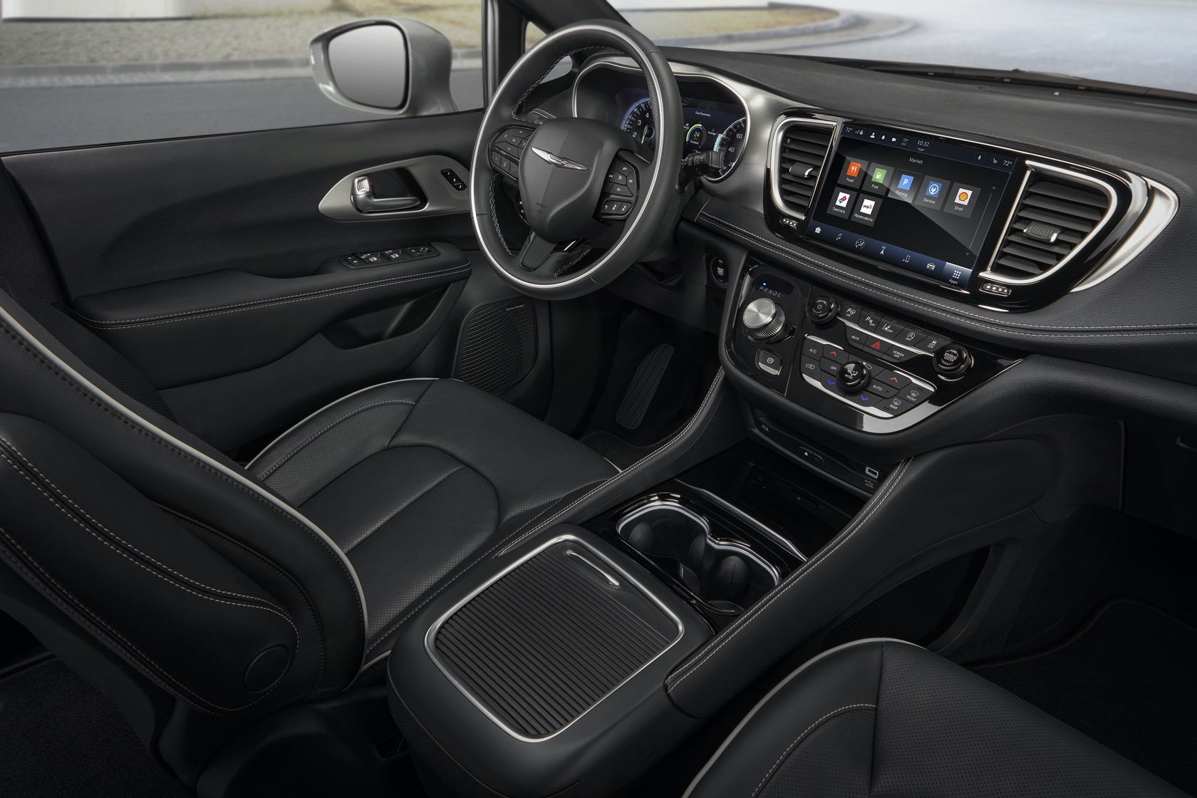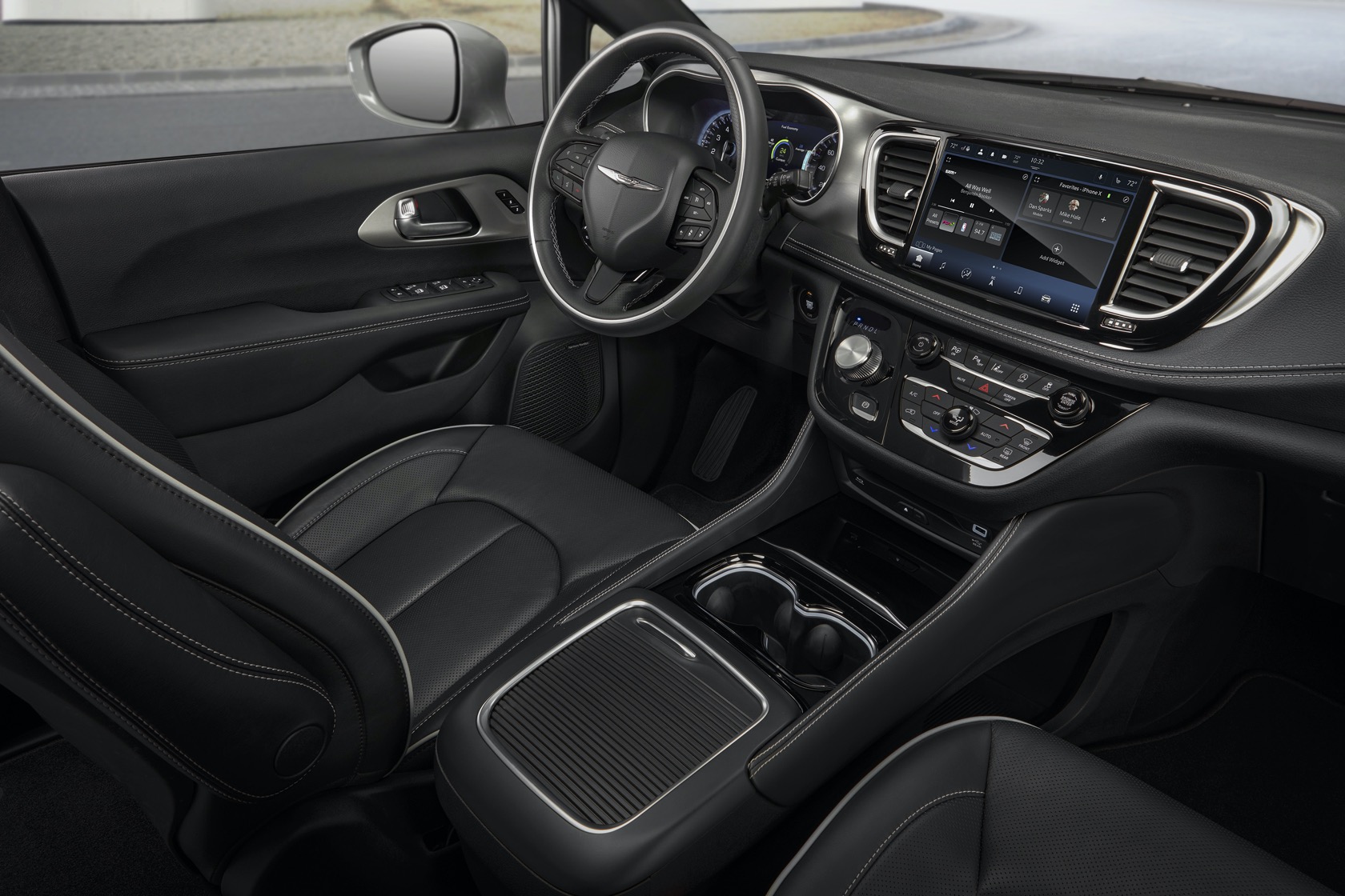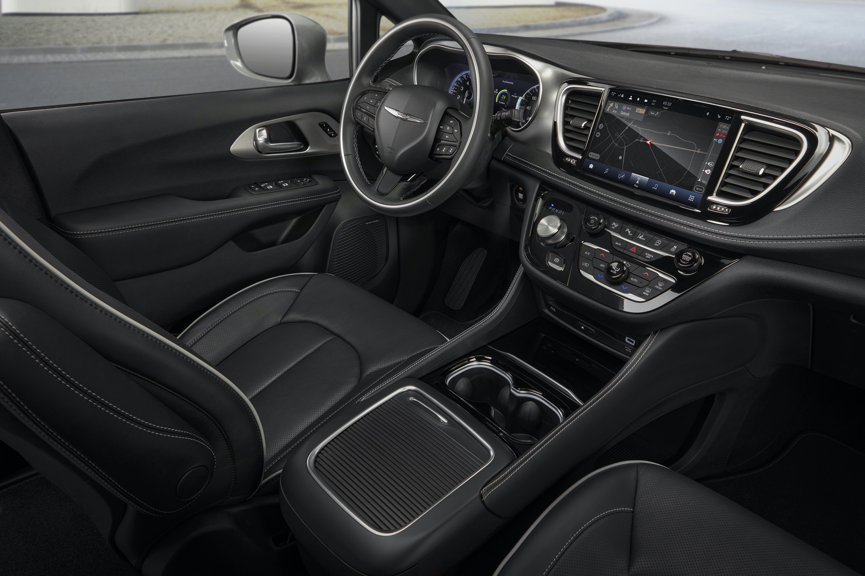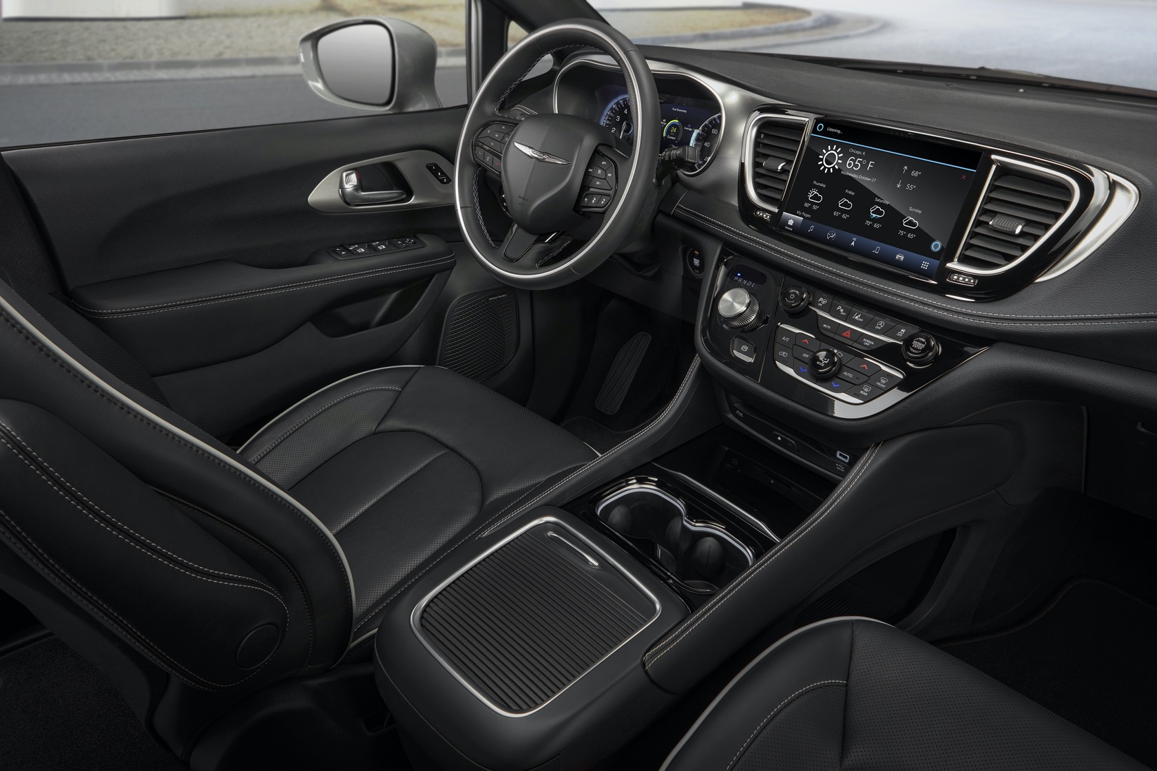 The Pacifica Hybrid is still being offered, with 30+ miles of all-electric range. A new Pacifica Pinnacle trim has been added, with a more plush cabin. Uconnect 5 is now standard, with embedded Alexa, the ability to pair two Bluetooth devices simultaneously, and the option of wireless Apple CarPlay and Android Auto. A new FamCAM feature beams a view of the rear seats to the standard 10.1-inch dashboard touchscreen.