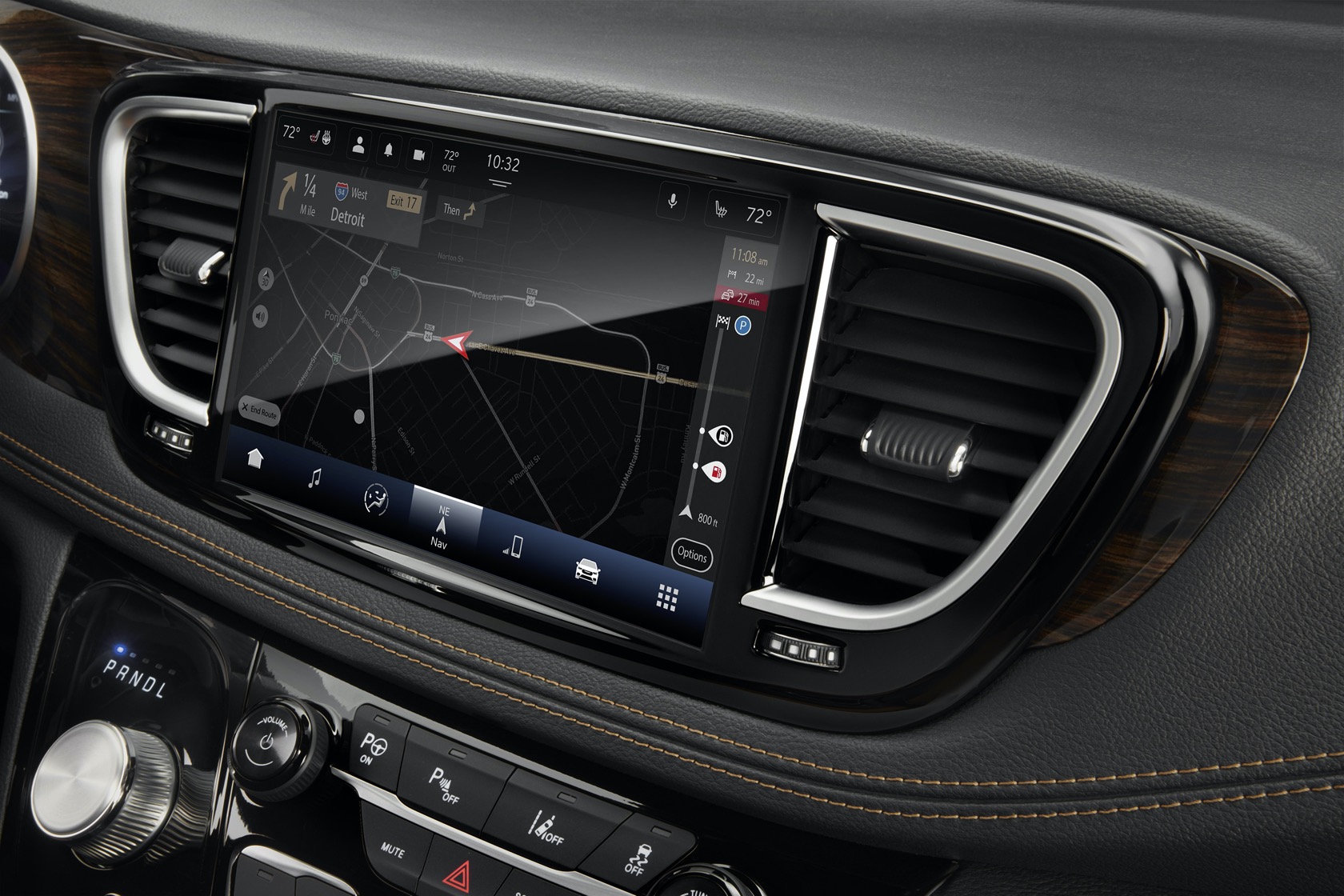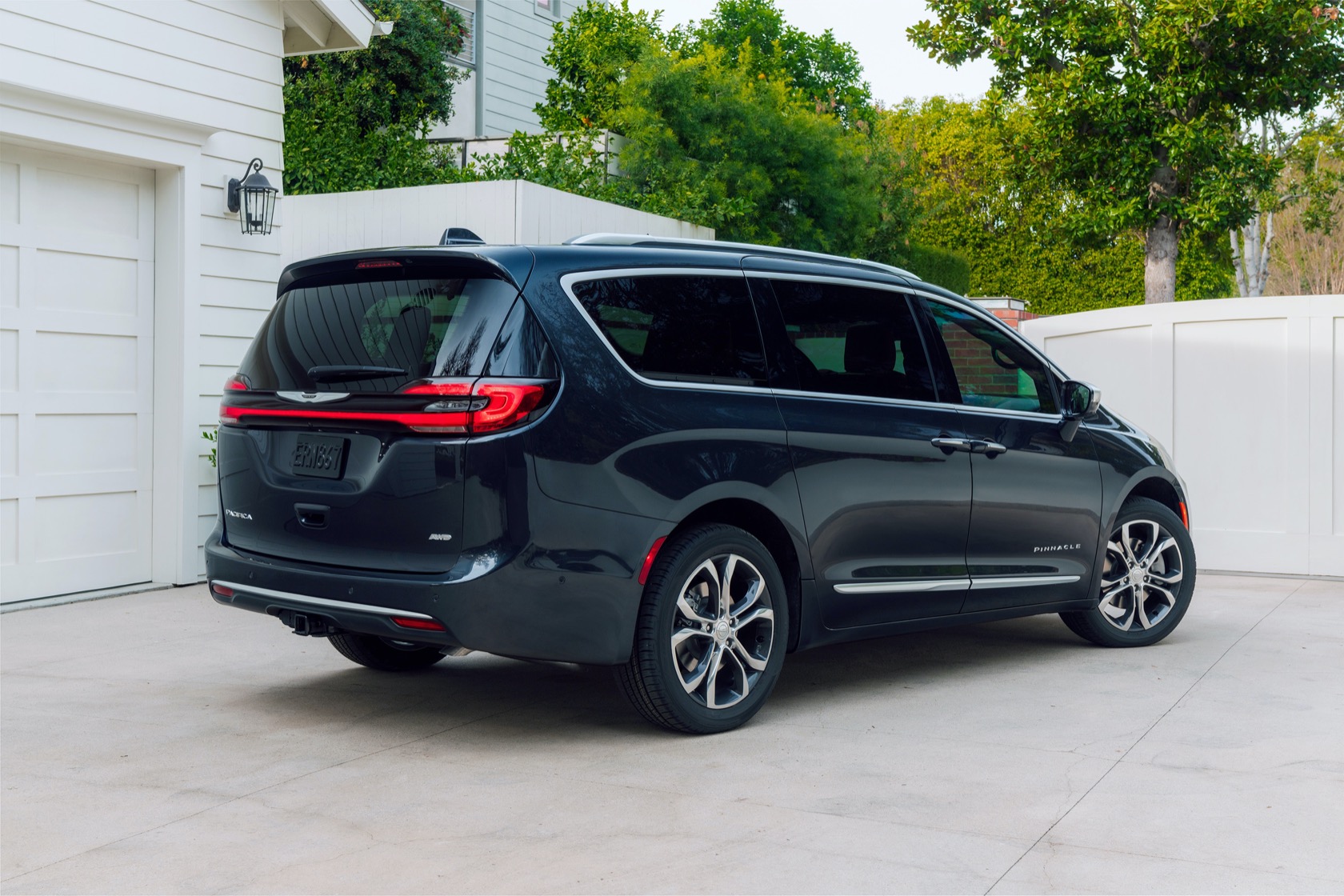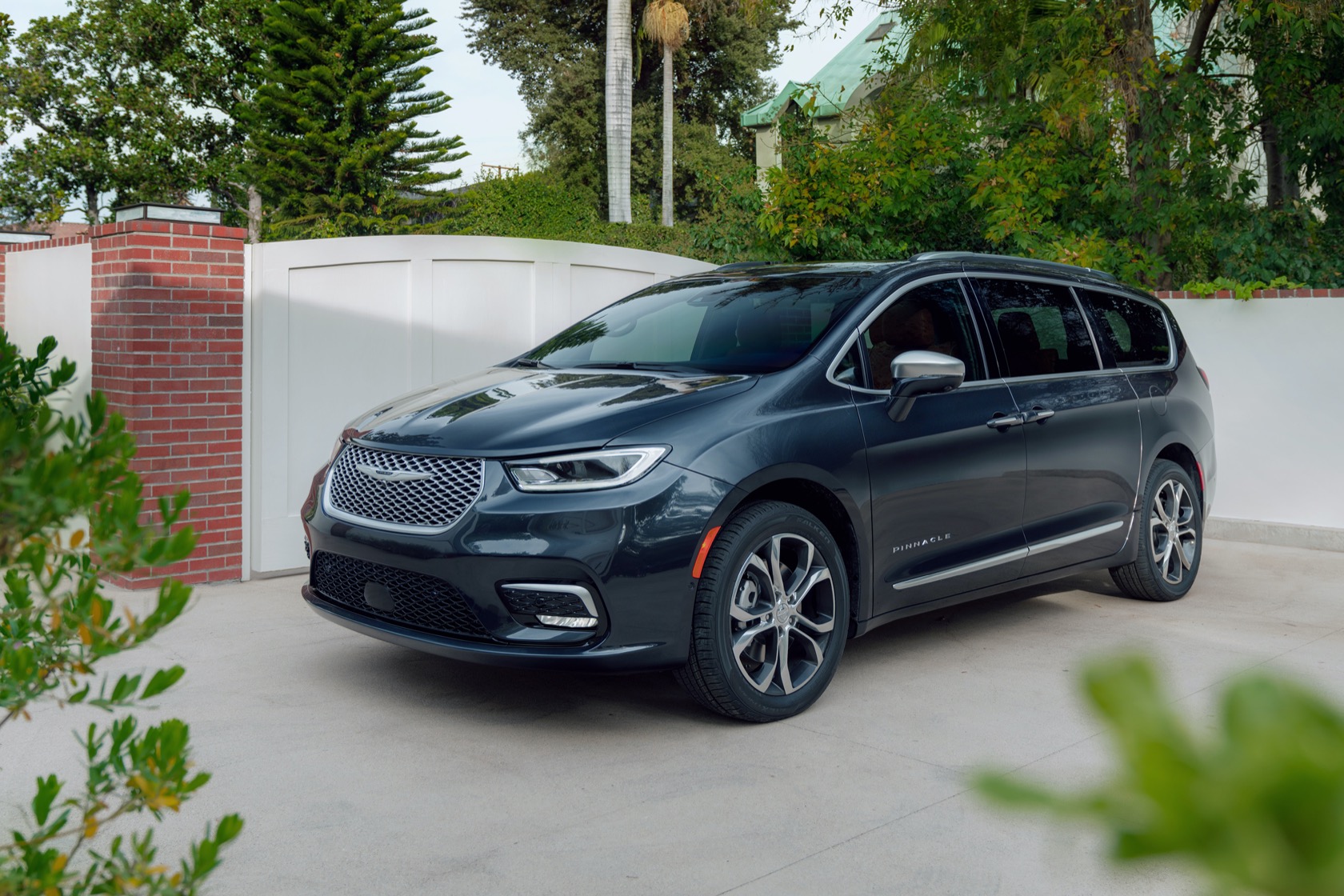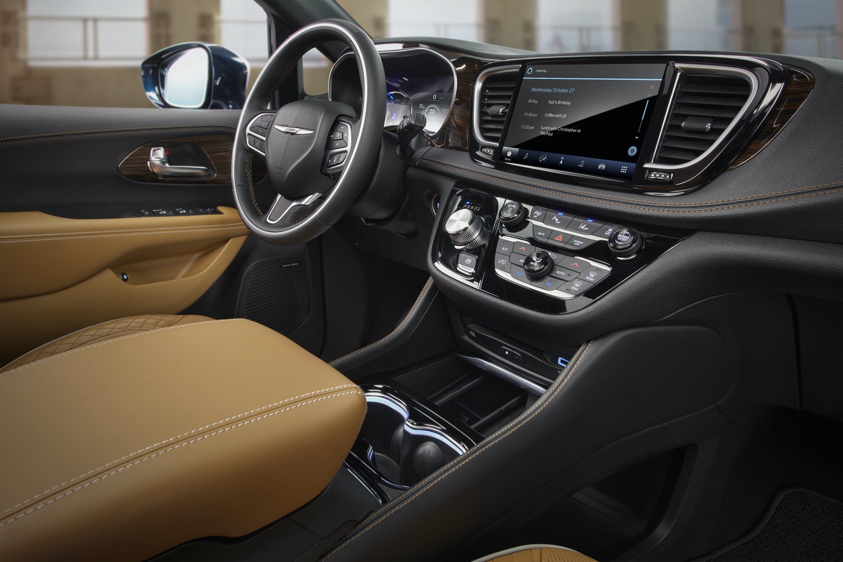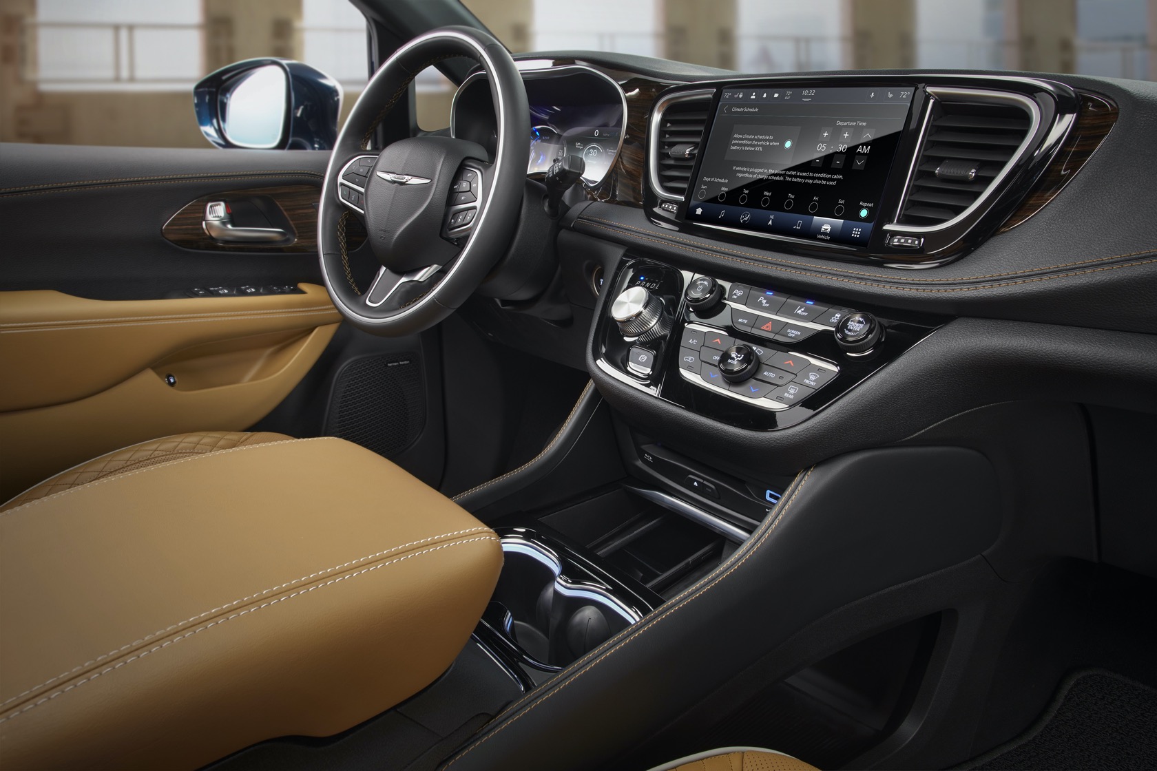 The Pacifica Hybrid is still being offered, with 30+ miles of all-electric range. A new Pacifica Pinnacle trim has been added, with a more plush cabin. Uconnect 5 is now standard, with embedded Alexa, the ability to pair two Bluetooth devices simultaneously, and the option of wireless Apple CarPlay and Android Auto. A new FamCAM feature beams a view of the rear seats to the standard 10.1-inch dashboard touchscreen.