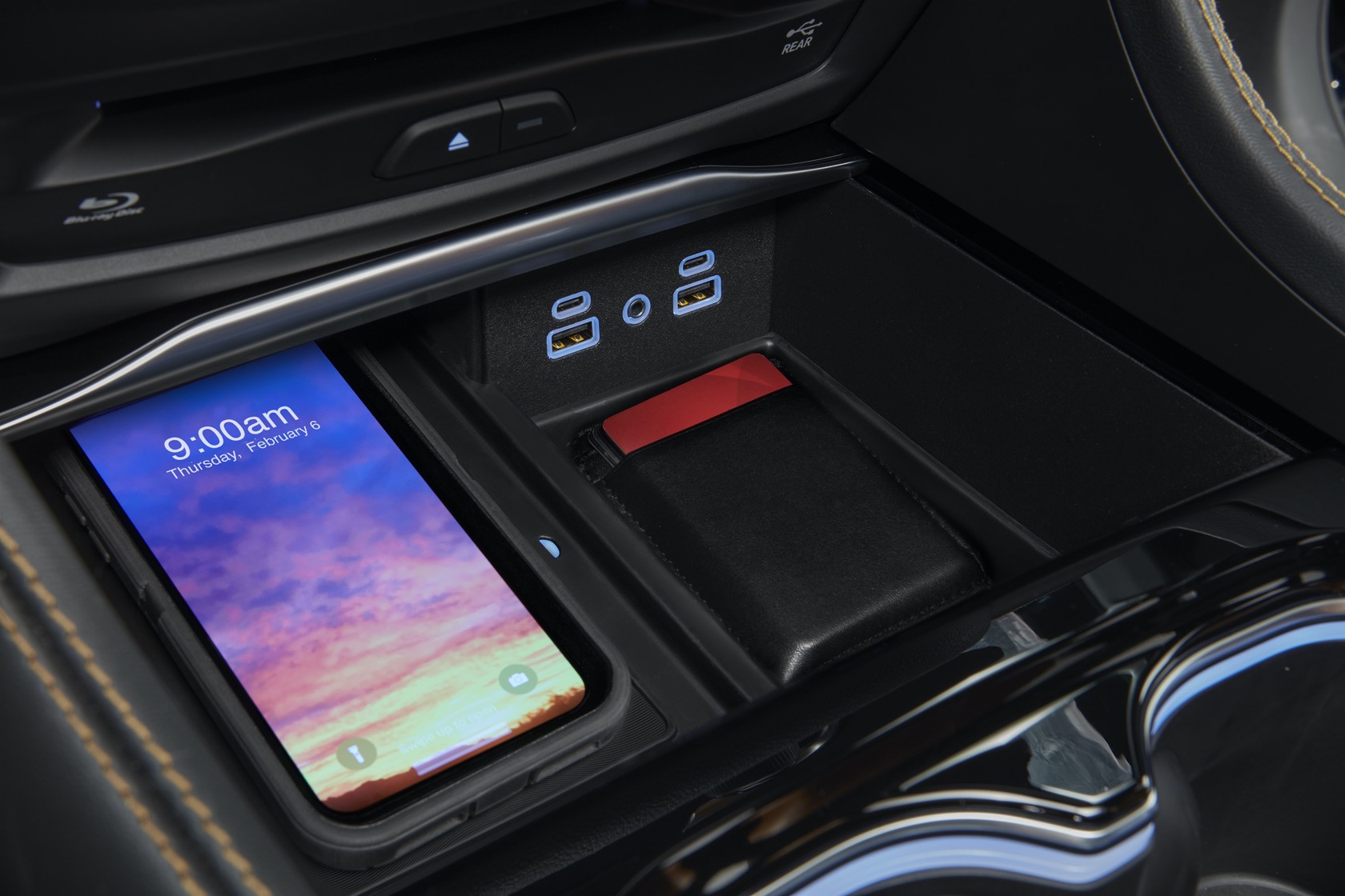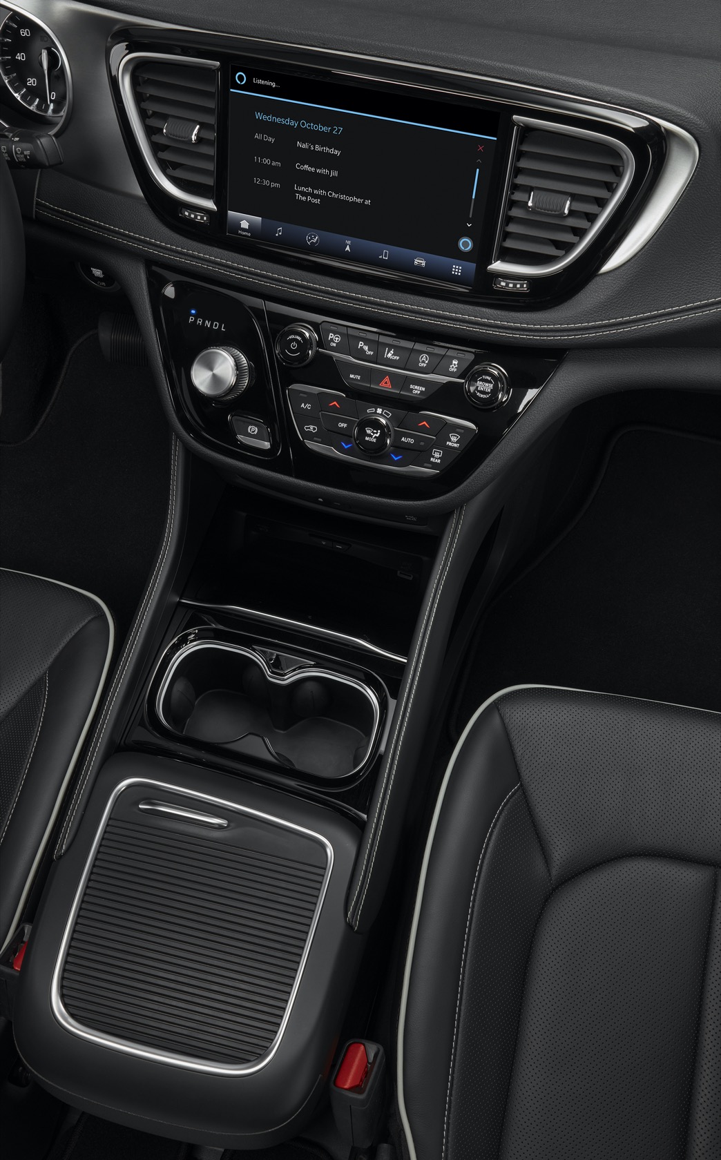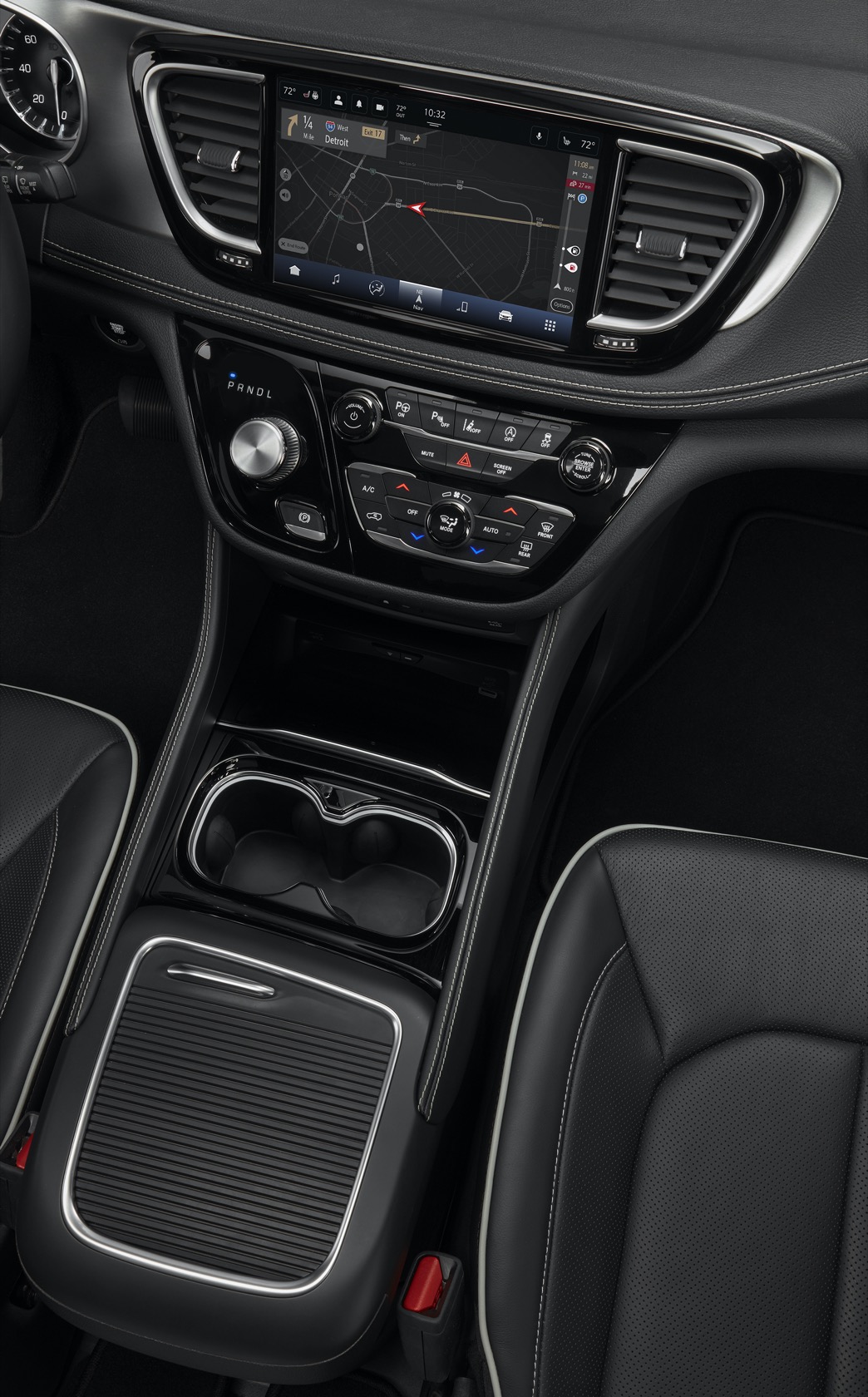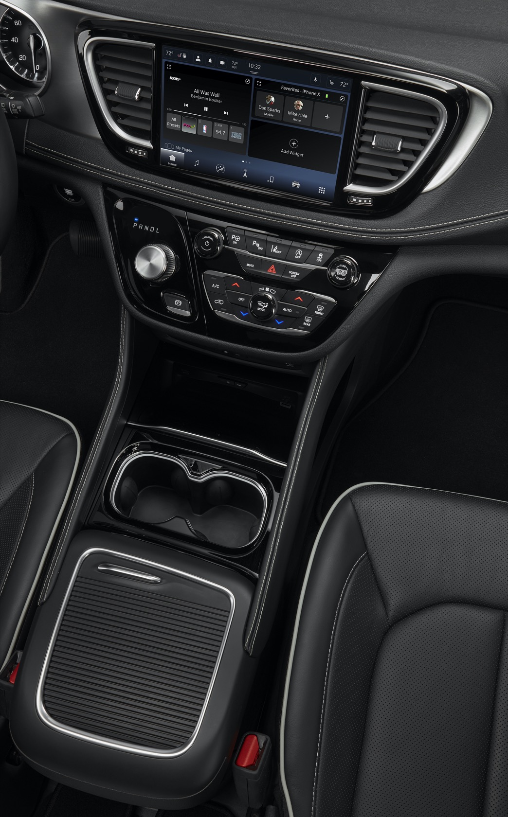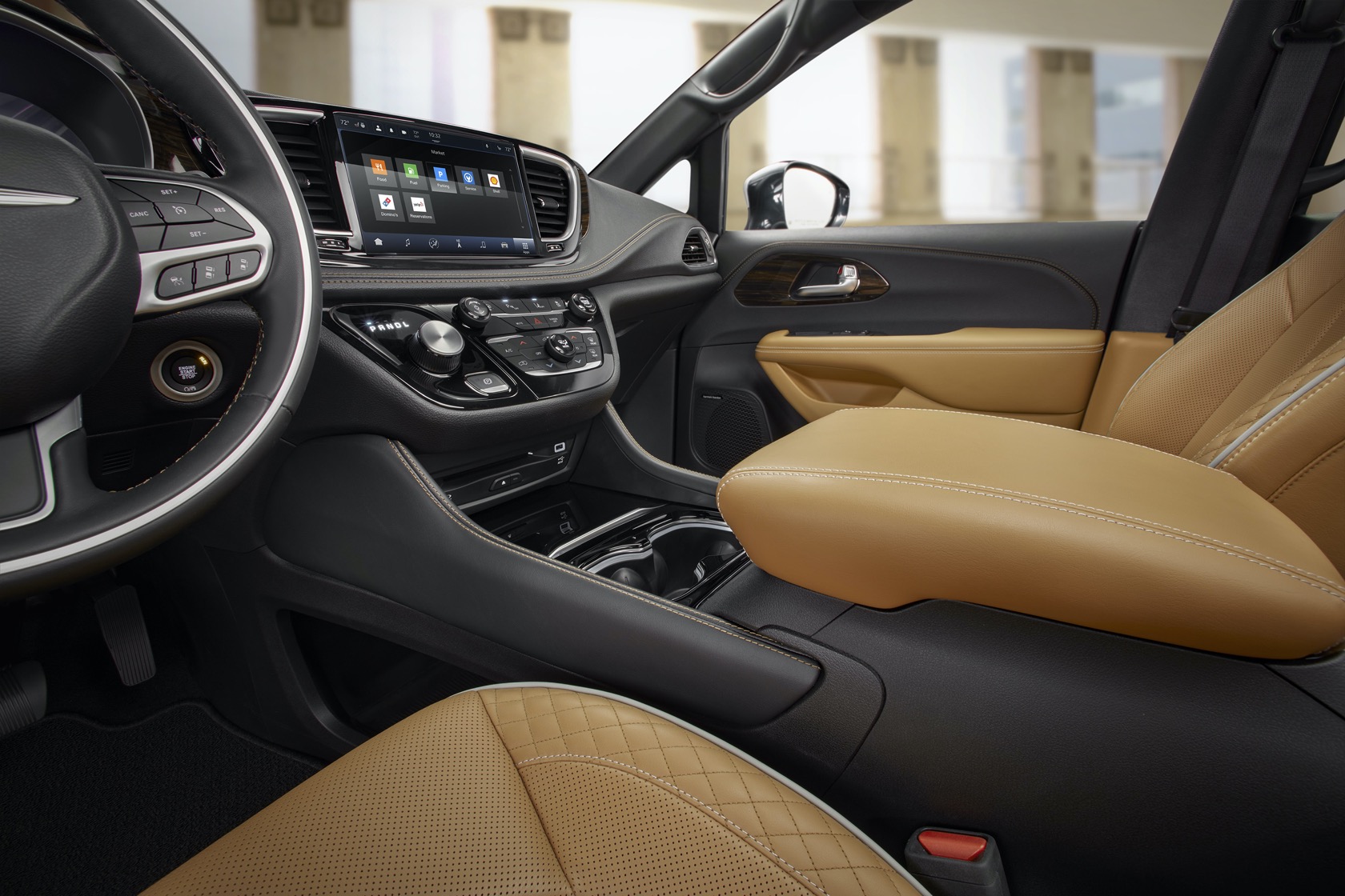 The Pacifica Hybrid is still being offered, with 30+ miles of all-electric range. A new Pacifica Pinnacle trim has been added, with a more plush cabin. Uconnect 5 is now standard, with embedded Alexa, the ability to pair two Bluetooth devices simultaneously, and the option of wireless Apple CarPlay and Android Auto. A new FamCAM feature beams a view of the rear seats to the standard 10.1-inch dashboard touchscreen.