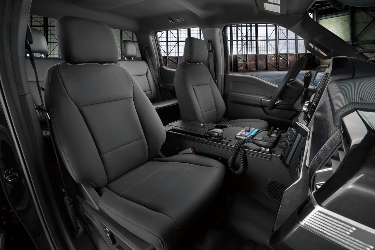 The truck uses specially developed Goodyear Enforcer all-terrain tires, the only all-terrain tires available for a pursuit-rated police vehicle. Ford fits the truck as standard with the F-150 FX4 off-road package providing officers with outstanding off-road capability. The package includes underbody skid plates, off-road-tuned shocks, electronic-locking rear axle, and Hill Descent Control. The truck is also designed with a standard towing capacity of 7000 pounds and an available towing capacity of 11,200 pounds. It also has a payload capacity of 2030 pounds. Ford offers a Trailer Tow Package with Pro Trailer Backup Assist as an option.