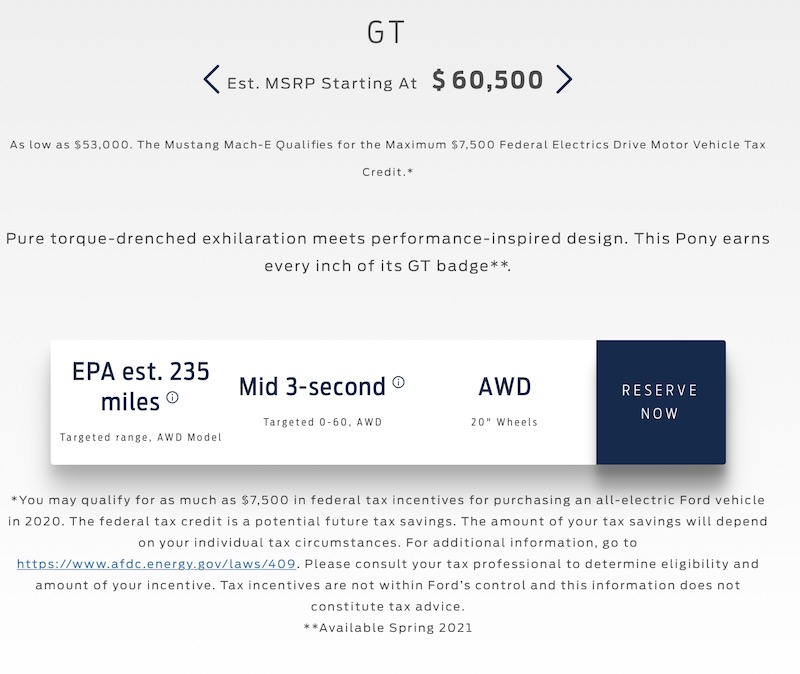 The Select will come in early 2021, as will the California Route 1. Finally, the 2021 Mustang Mach-E GT will hit dealerships in spring 2021, according to the site.