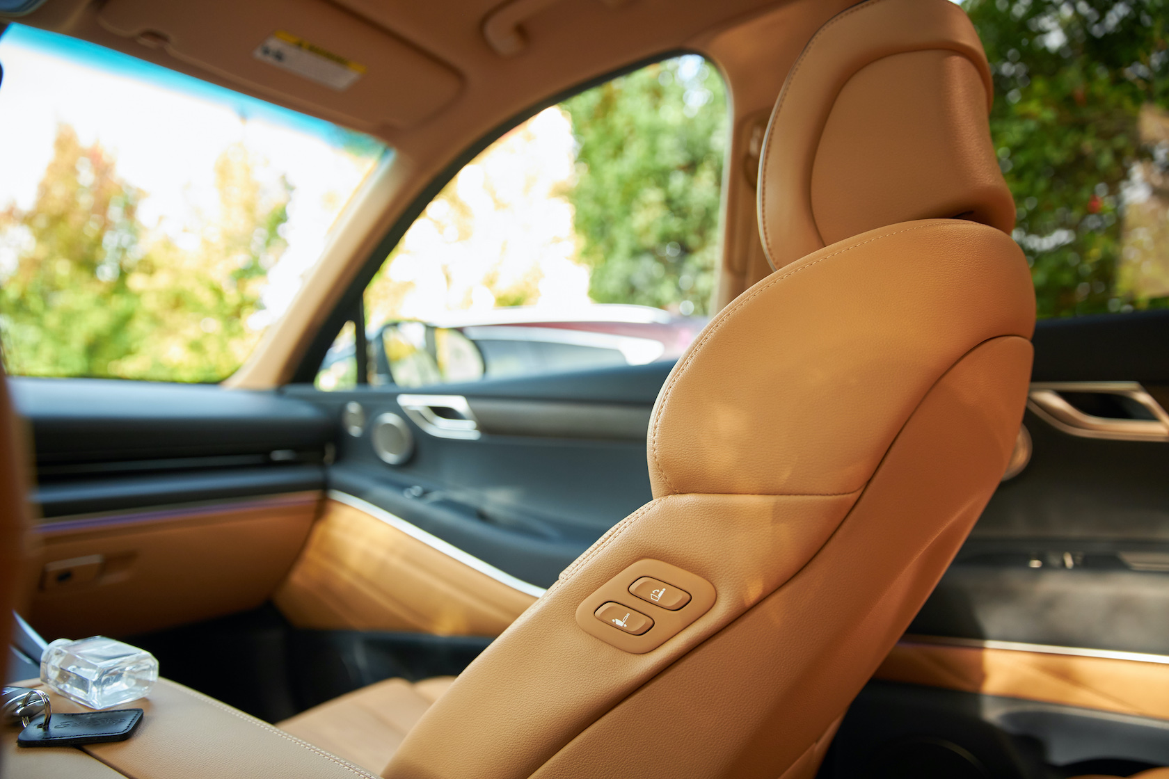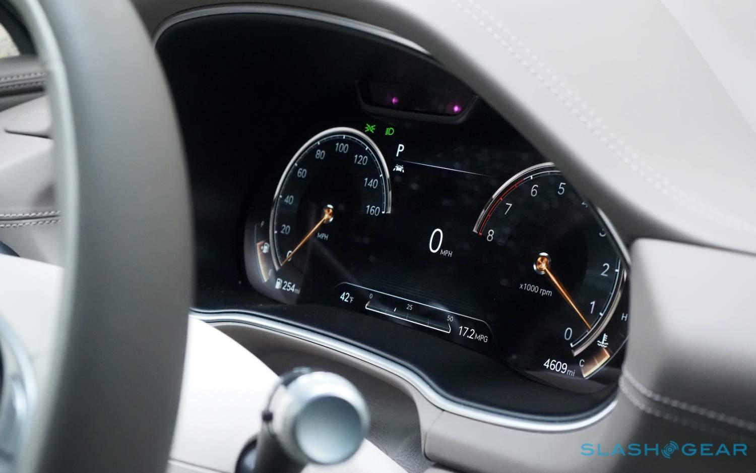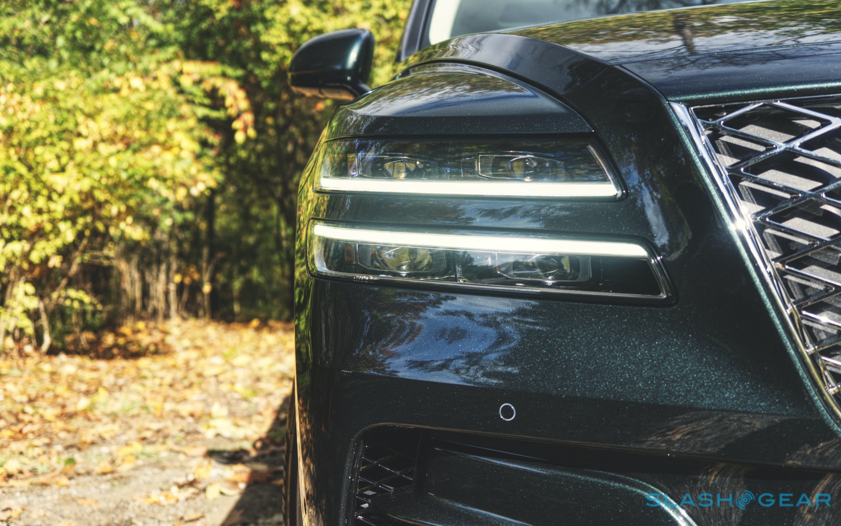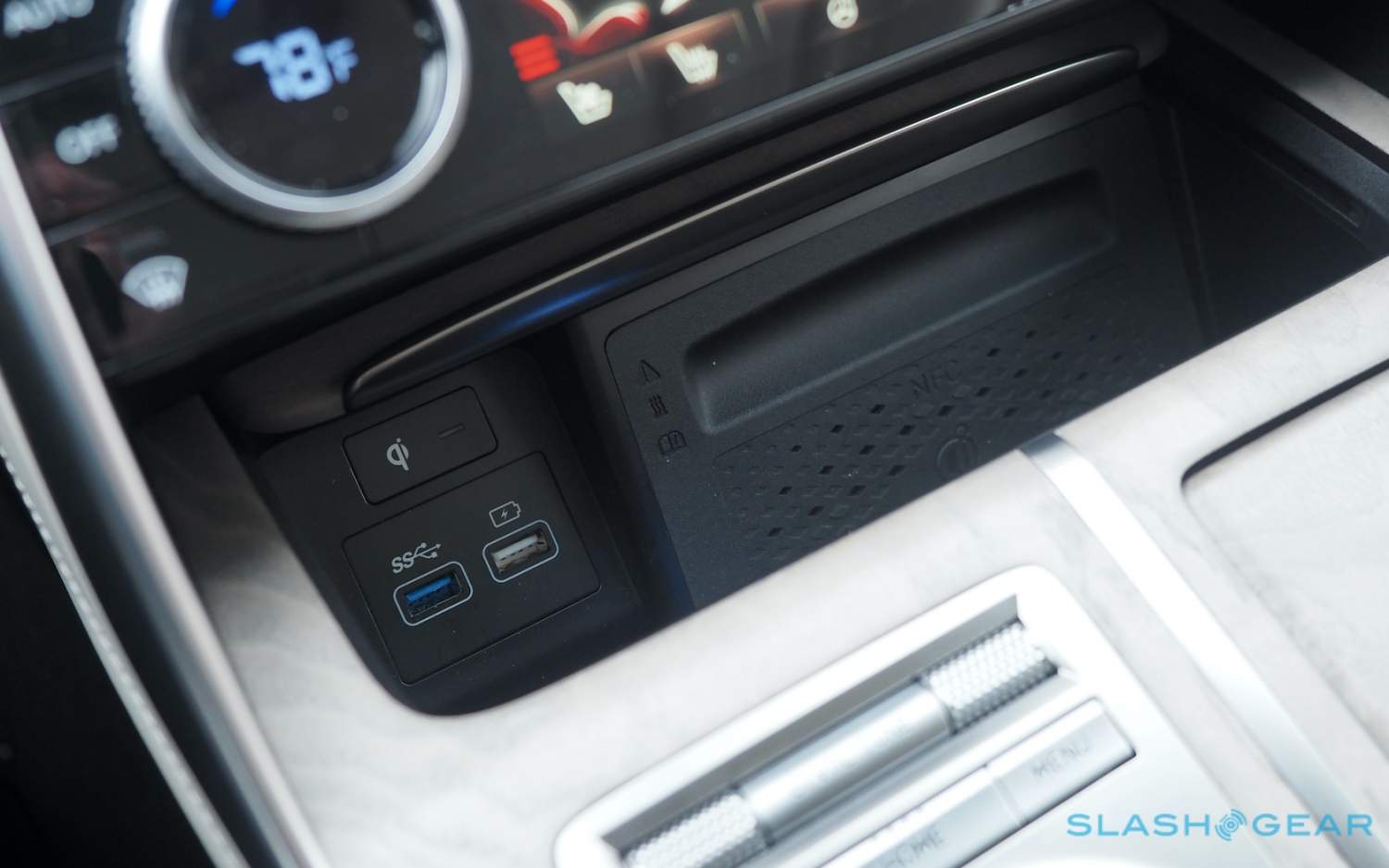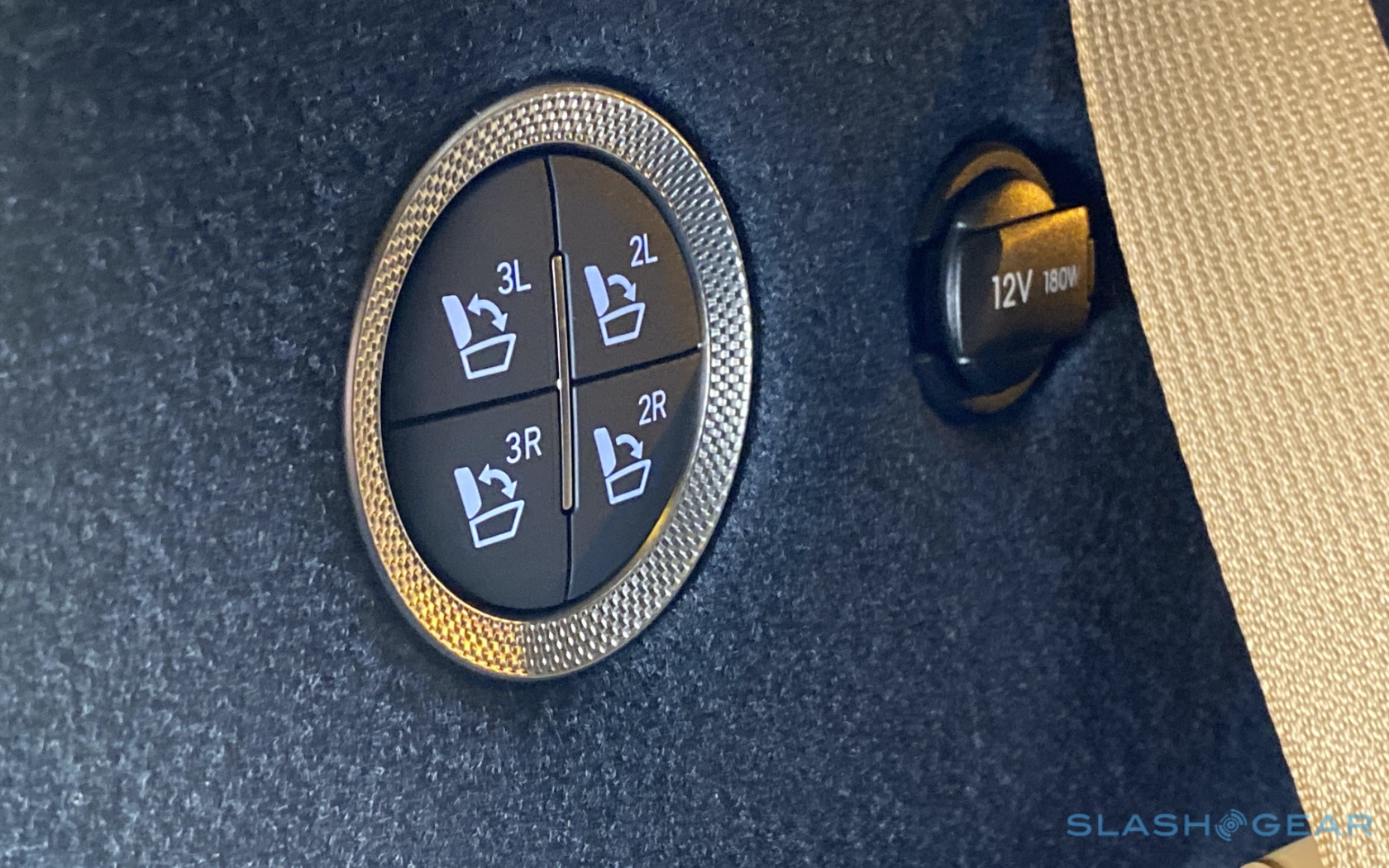 Inside, it's a calmer, cleaner place than some SUV cabins we've seen. Genesis keeps the switchgear to a functional minimum, preferring to put most of the detail on the GV80's trio of screens. That includes digital graphics for the driver, a small screen for HVAC controls, and then a huge 14.5-inch widescreen panel atop the dashboard. That's remotely controlled using a handwriting-recognizing dial in the center console.