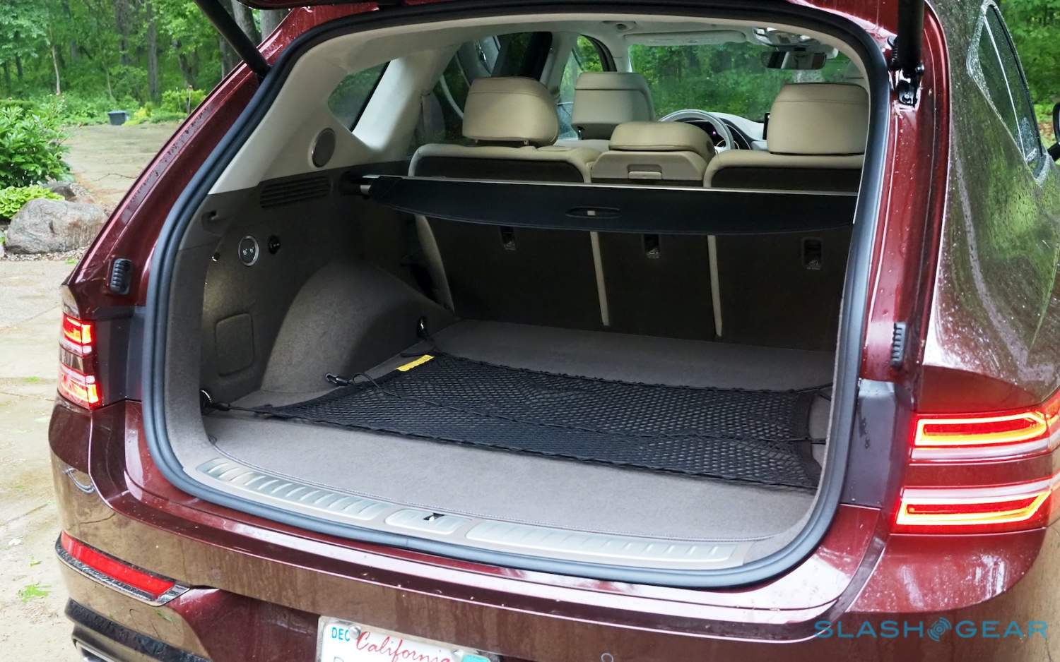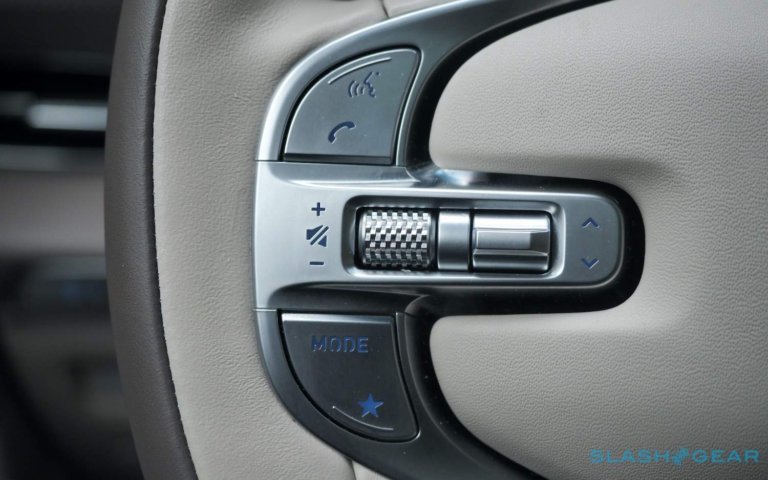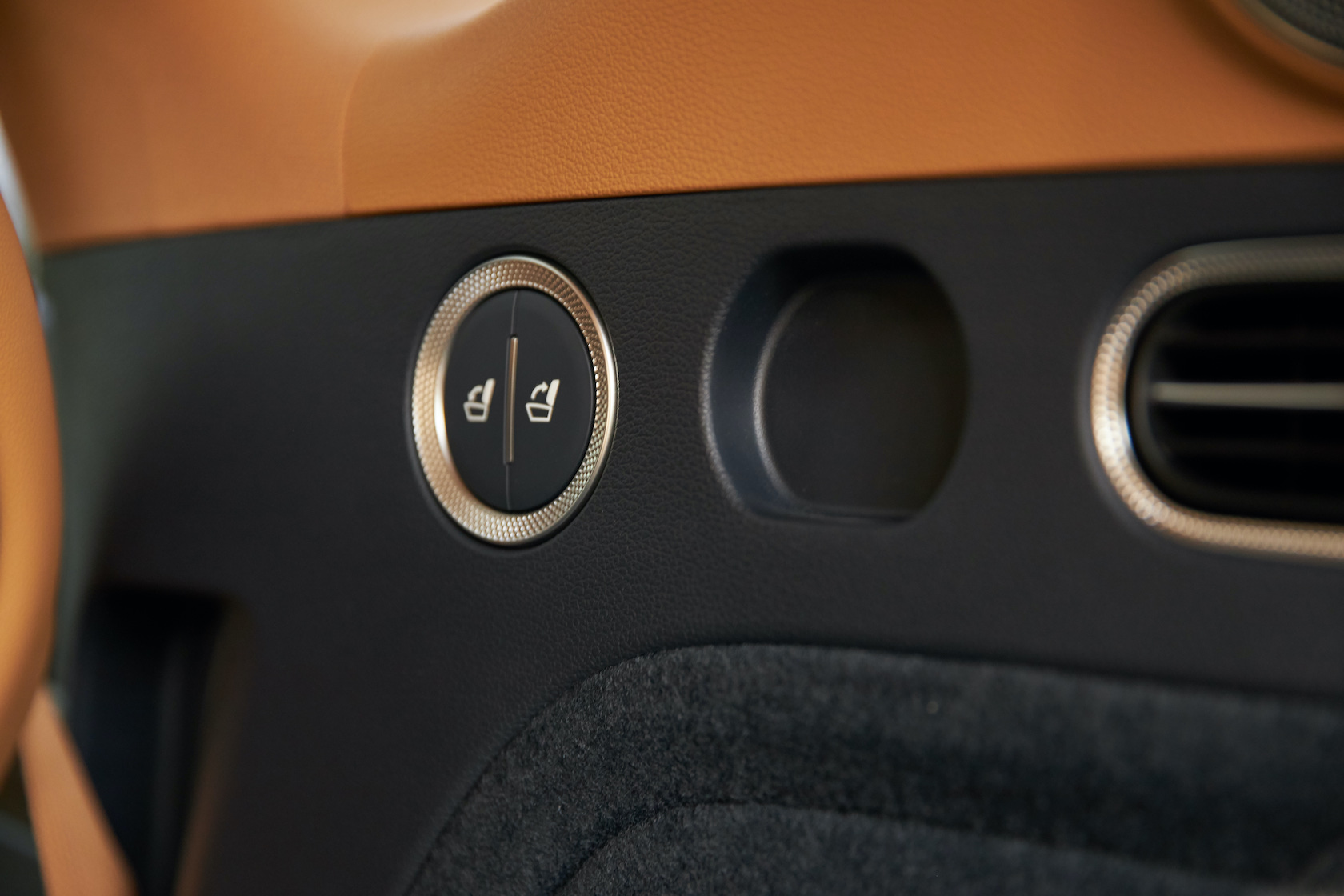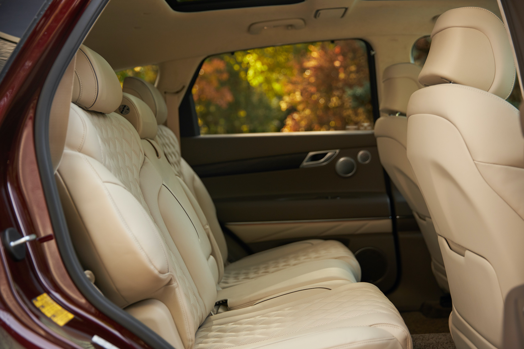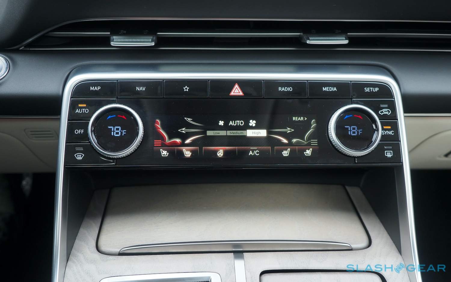 Inside, it's a calmer, cleaner place than some SUV cabins we've seen. Genesis keeps the switchgear to a functional minimum, preferring to put most of the detail on the GV80's trio of screens. That includes digital graphics for the driver, a small screen for HVAC controls, and then a huge 14.5-inch widescreen panel atop the dashboard. That's remotely controlled using a handwriting-recognizing dial in the center console.