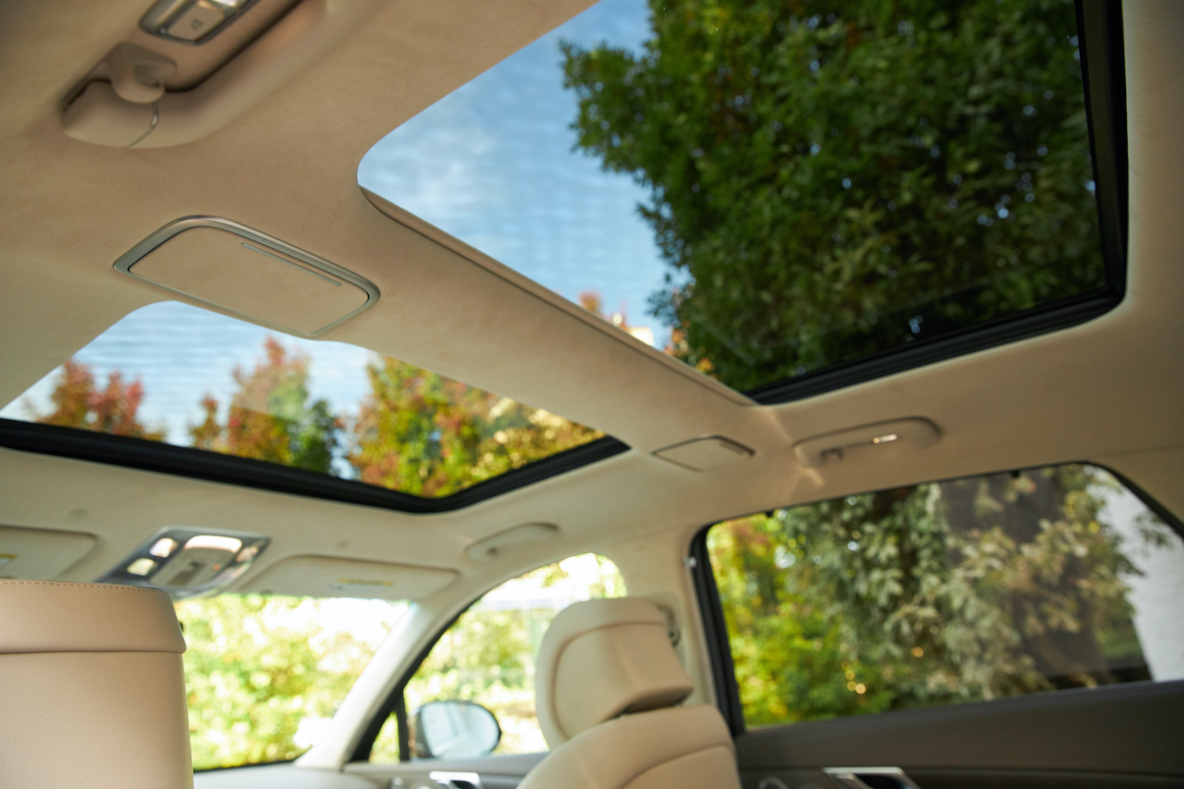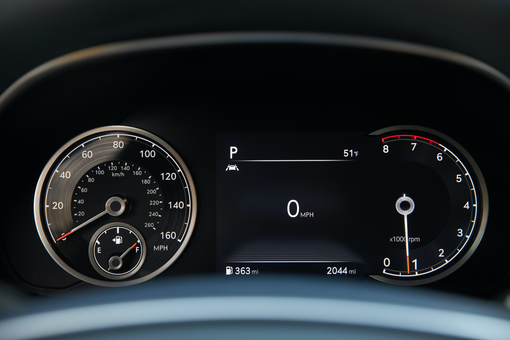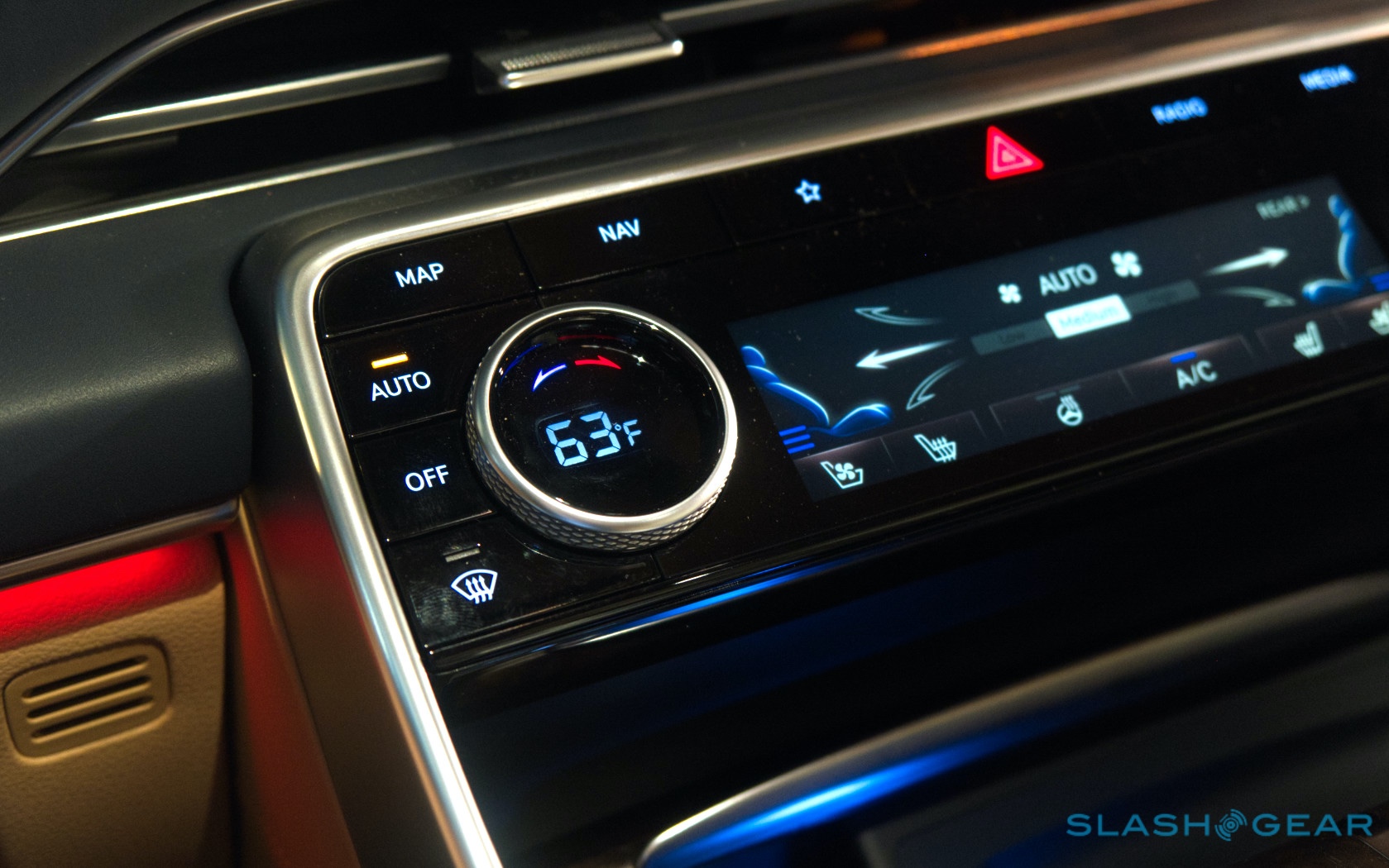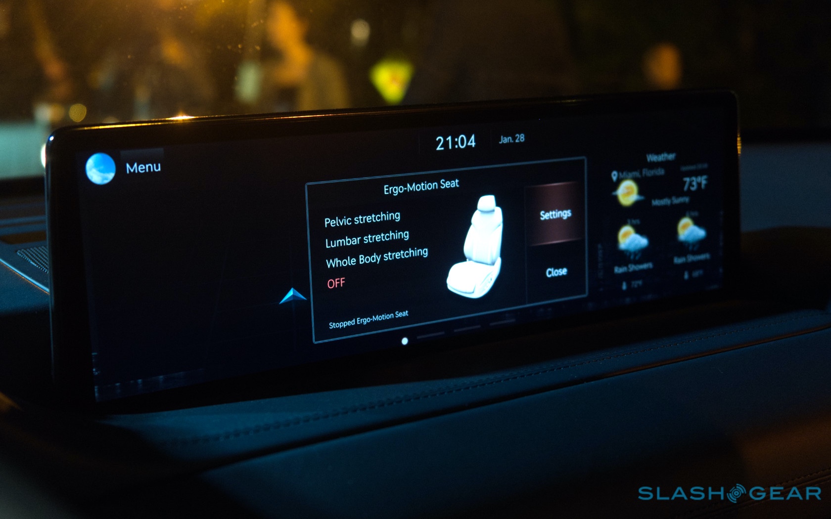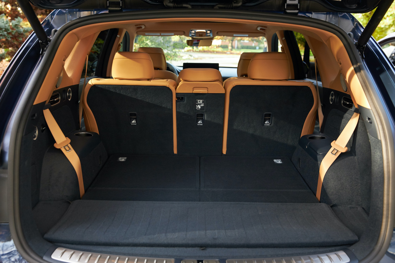 Inside, it's a calmer, cleaner place than some SUV cabins we've seen. Genesis keeps the switchgear to a functional minimum, preferring to put most of the detail on the GV80's trio of screens. That includes digital graphics for the driver, a small screen for HVAC controls, and then a huge 14.5-inch widescreen panel atop the dashboard. That's remotely controlled using a handwriting-recognizing dial in the center console.