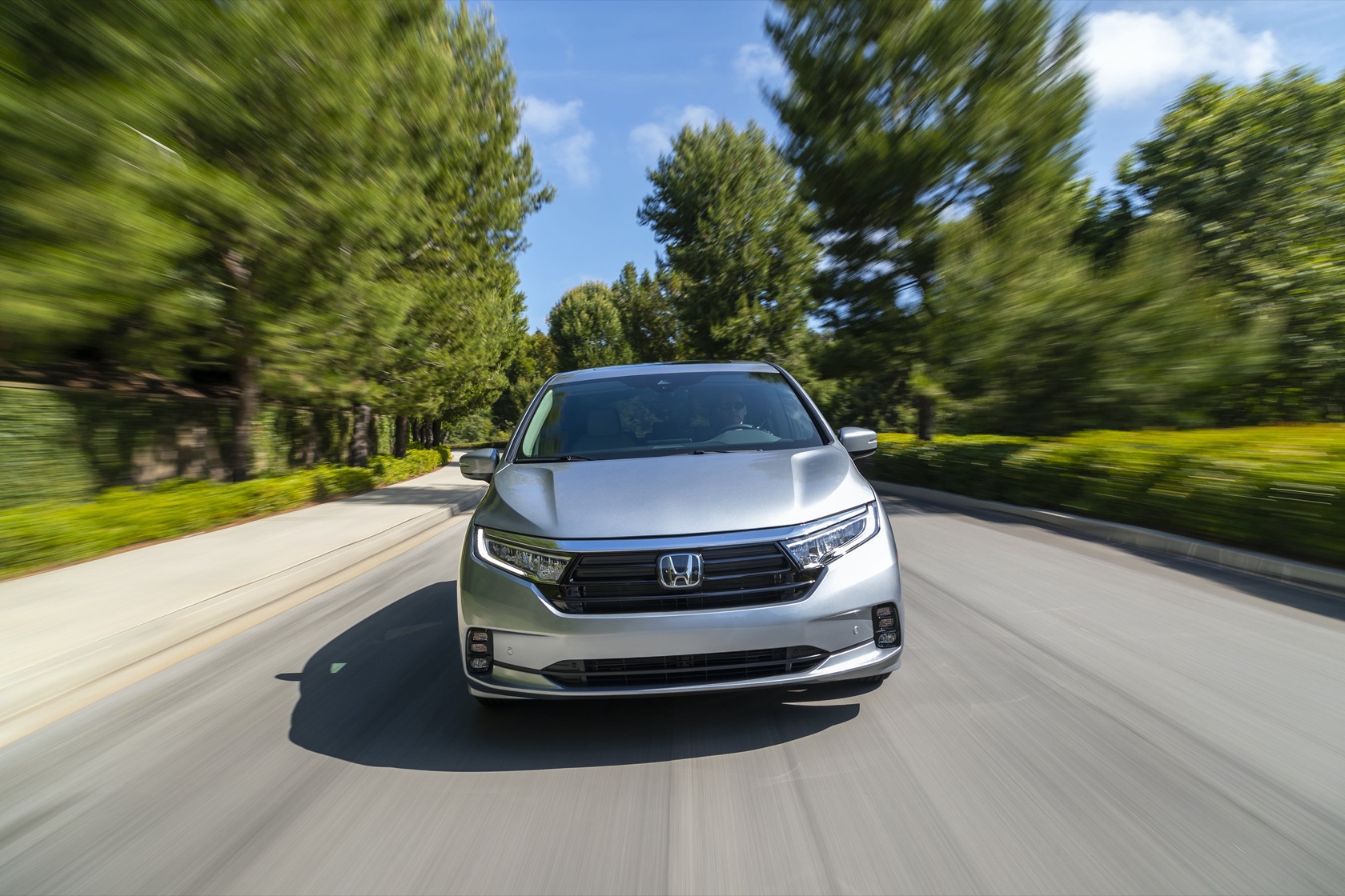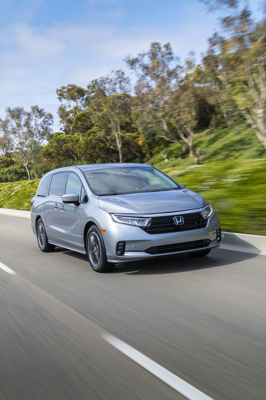 Honda's best-selling minivan is getting a refresh, with the 2021 Odyssey making style changes outside, practicality changes inside, and loading up on extra active safety tech. All trims of Odyssey get Honda Sensing as standard, but for the new model year there are three new features: Low-Speed Follow, Pedestrian Emergency Braking, and Traffic Sign Recognition. All but the base trim get blind-spot warnings, too.