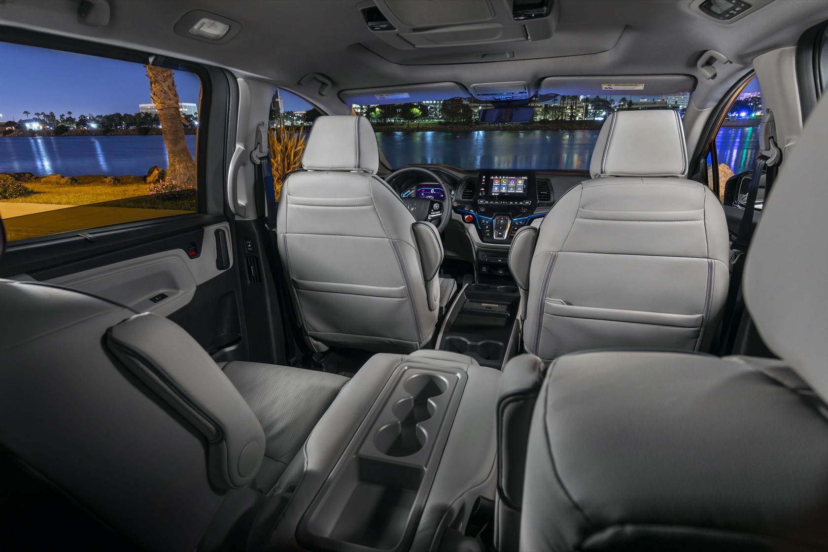 In the trunk, there are now grocery bag hooks on the back of the third row seats. Honda has added extra center console cord management, while Odyssey EX-L and above get leather seats on all rows with contrast stitching. Odyssey Touring and Elite get new piano black interior trim and a fifth USB charging port, in the third row. CabinWatch and CabinTalk are better integrated into the Display Audio infotainment system.