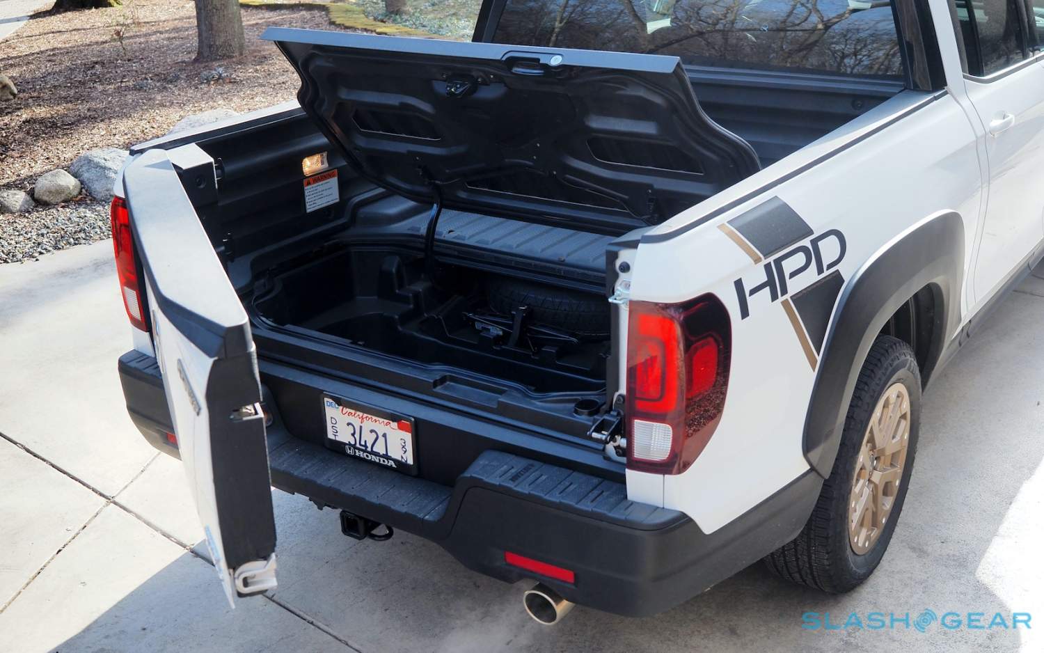 There's a new grille and bolder wheel arches, and a Honda Performance Design package adds things like gold wheels and even more rugged features. None of that dilutes the Ridgeline's core usability, of course: this is Honda we're talking about. You still get a handy dual-opening tailgate – which folds down or swings out – and a huge, lockable compartment under the bed floor, complete with a drain hole at the bottom.