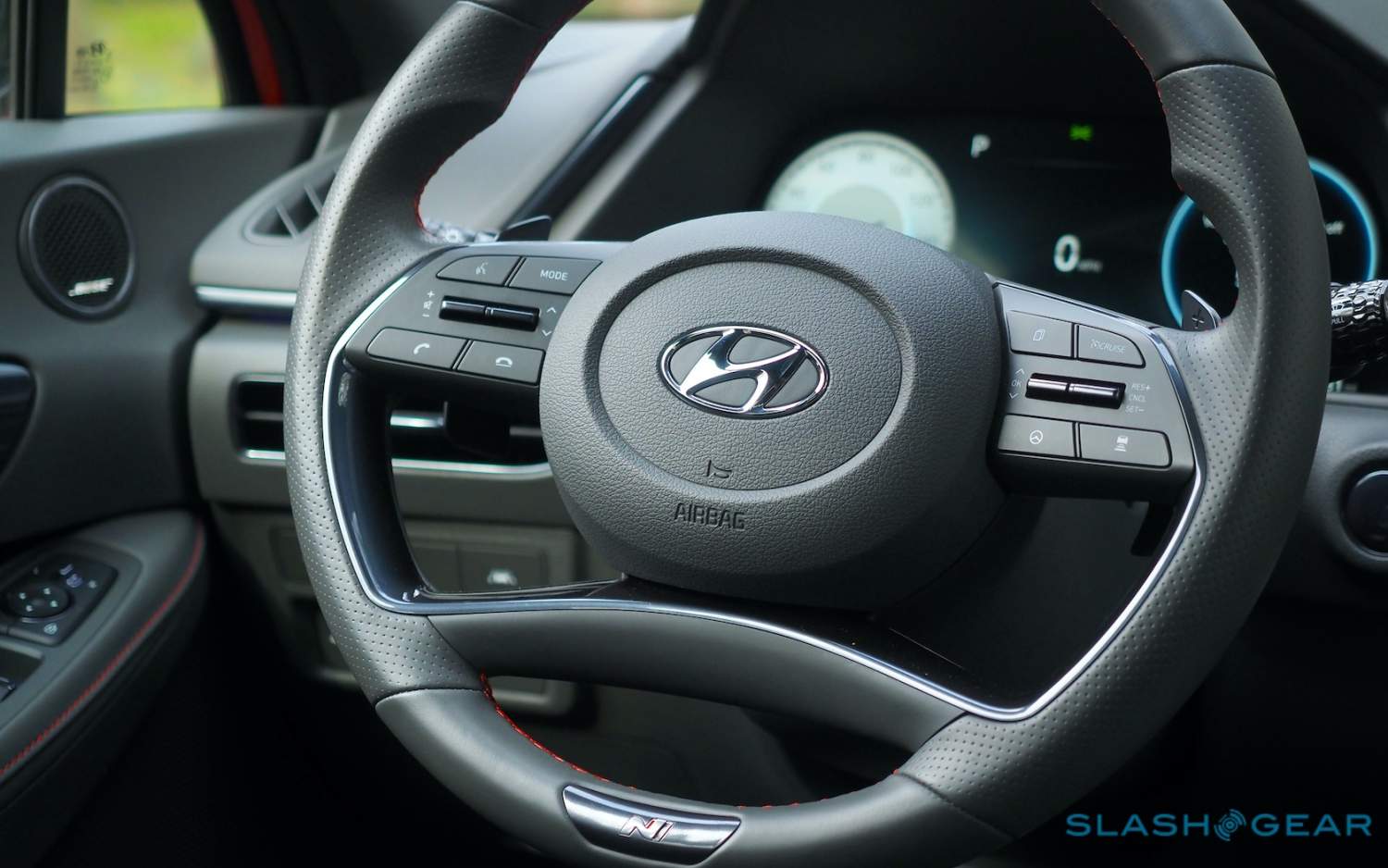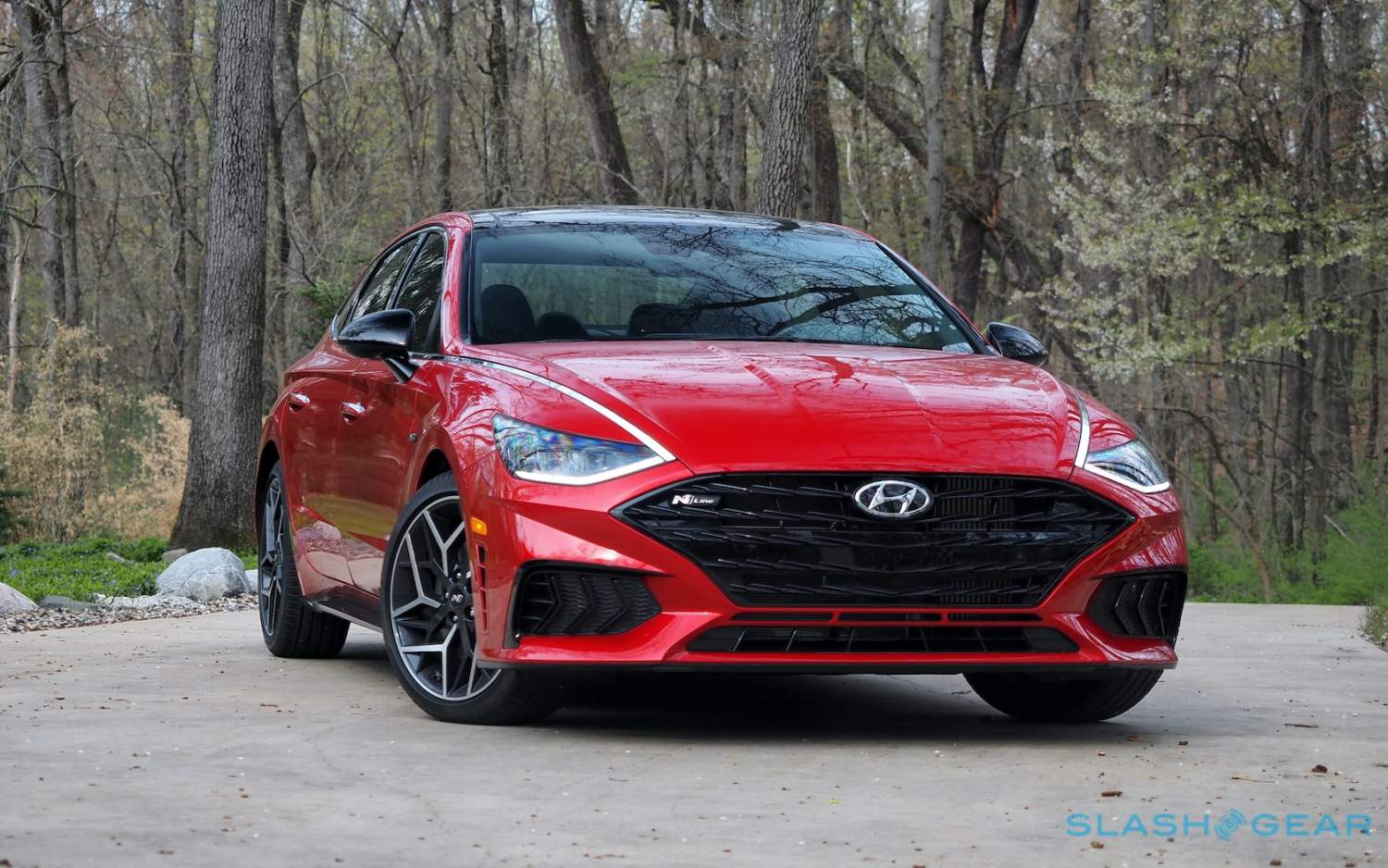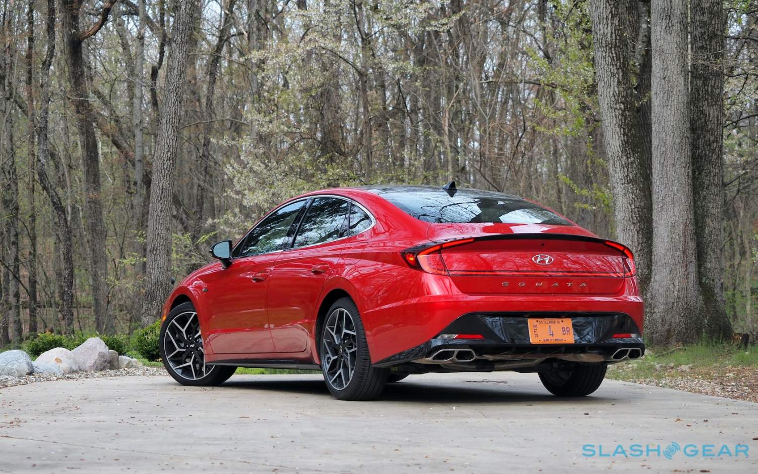 Regular 2021 Sonata models get a 1.6-liter turbo-4, good for 180 horsepower and 195 lb-ft of torque. The N Line drops in the 2.5-liter turbo-4 that we've seen Genesis use. It kicks things up to 290 hp and 311 lb-ft, and swaps the standard 8-speed automatic for an N 8-speed DCT.