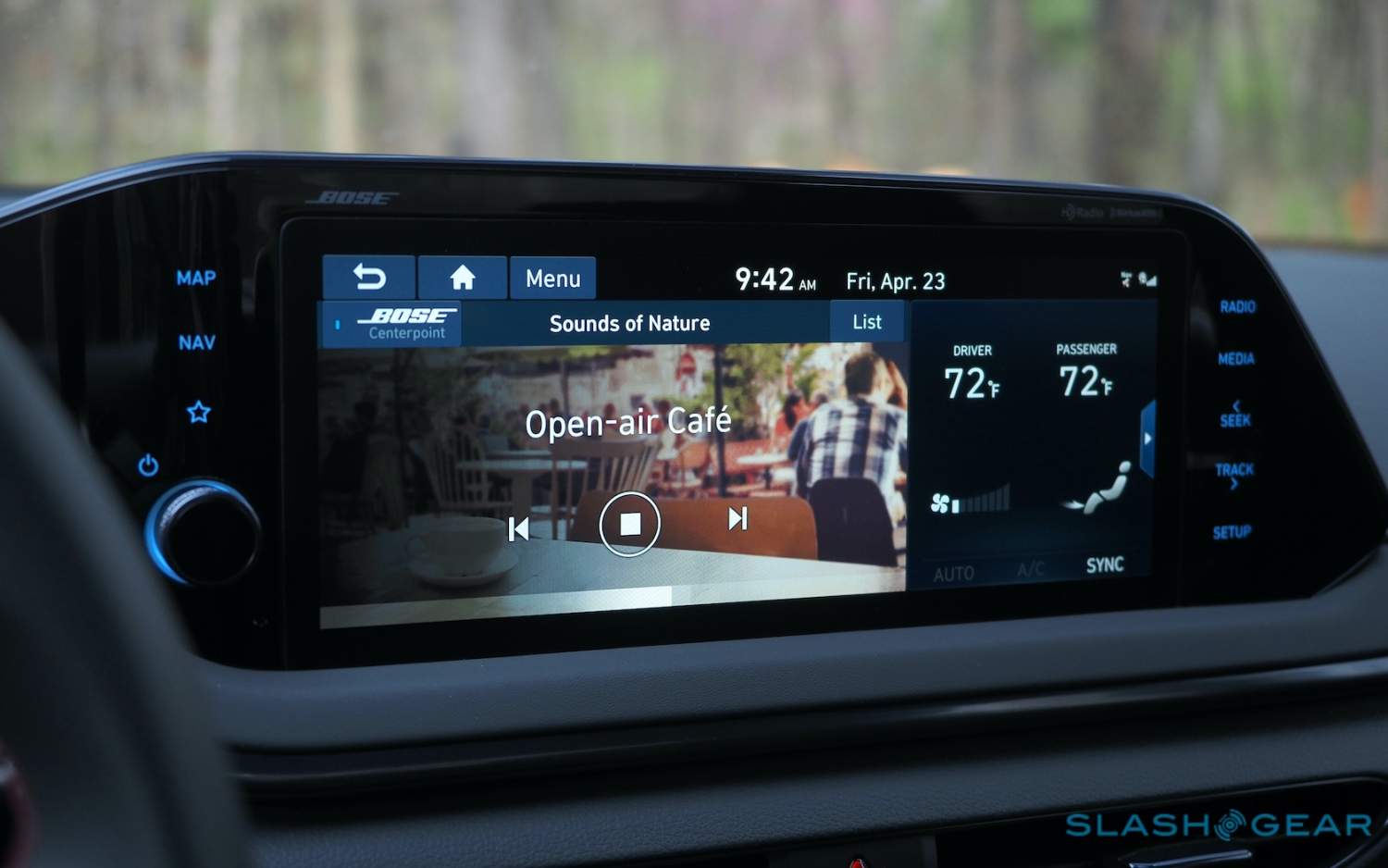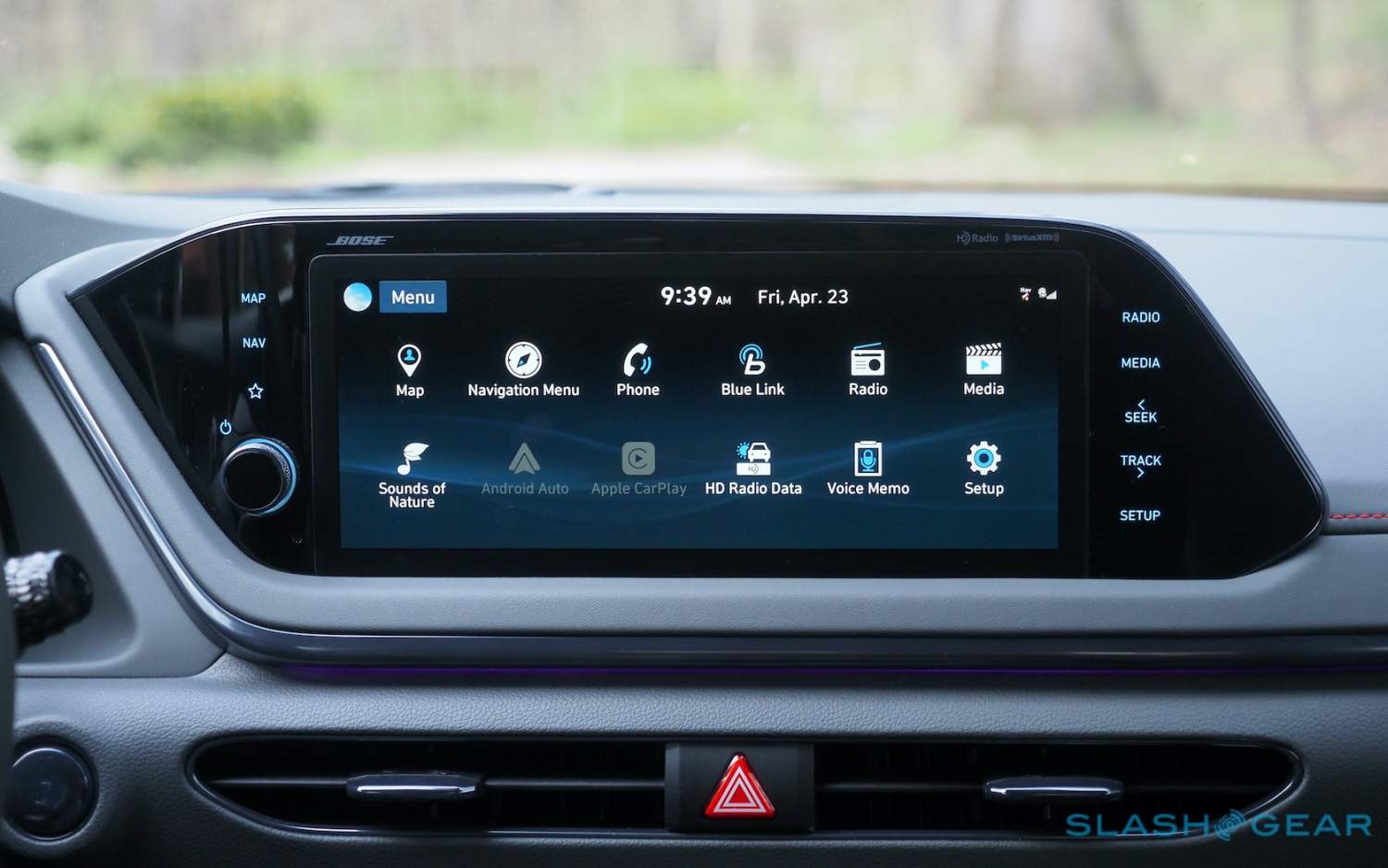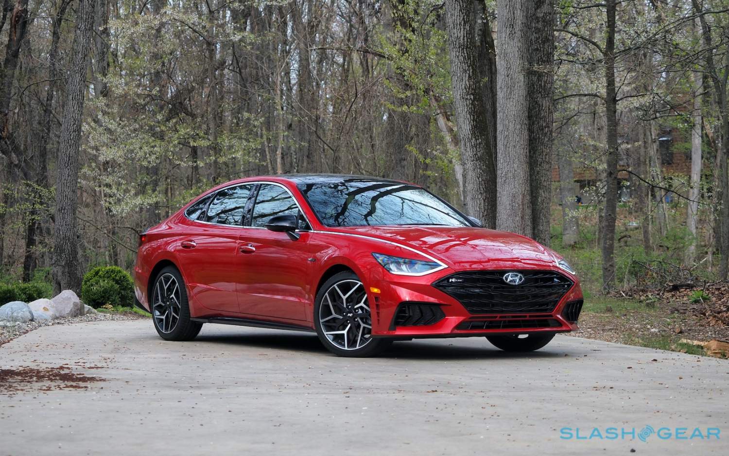 Regular 2021 Sonata models get a 1.6-liter turbo-4, good for 180 horsepower and 195 lb-ft of torque. The N Line drops in the 2.5-liter turbo-4 that we've seen Genesis use. It kicks things up to 290 hp and 311 lb-ft, and swaps the standard 8-speed automatic for an N 8-speed DCT.