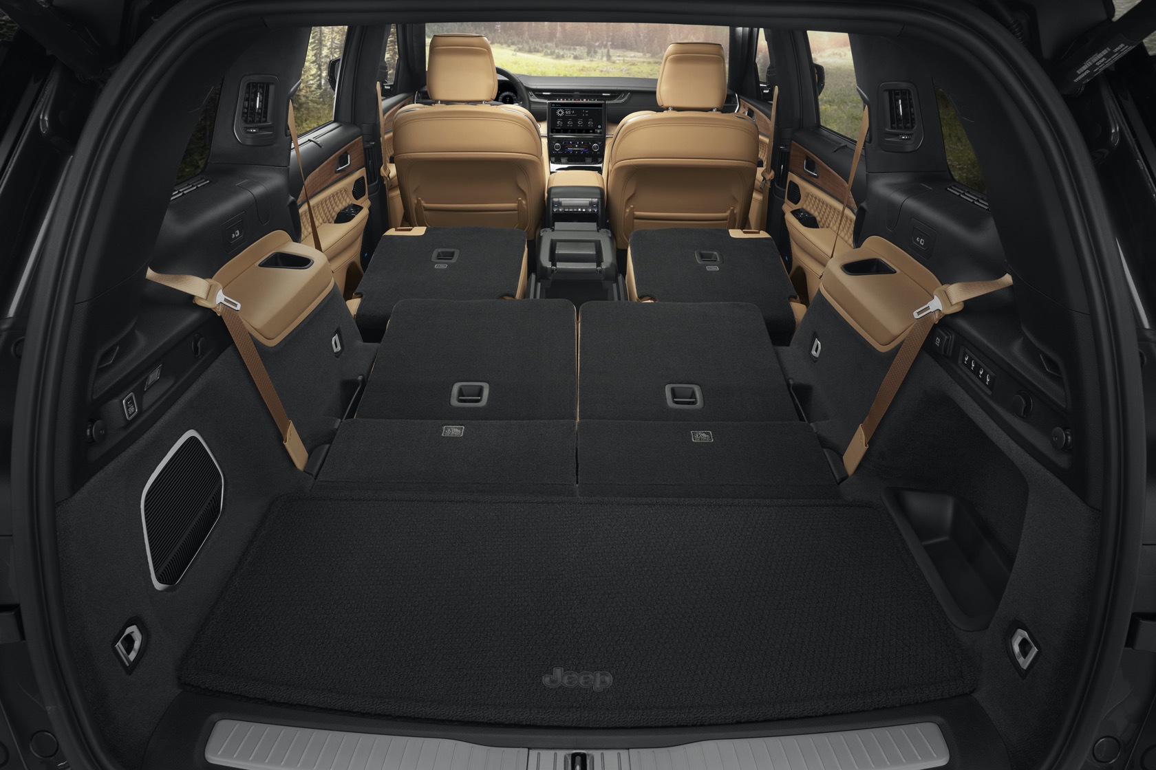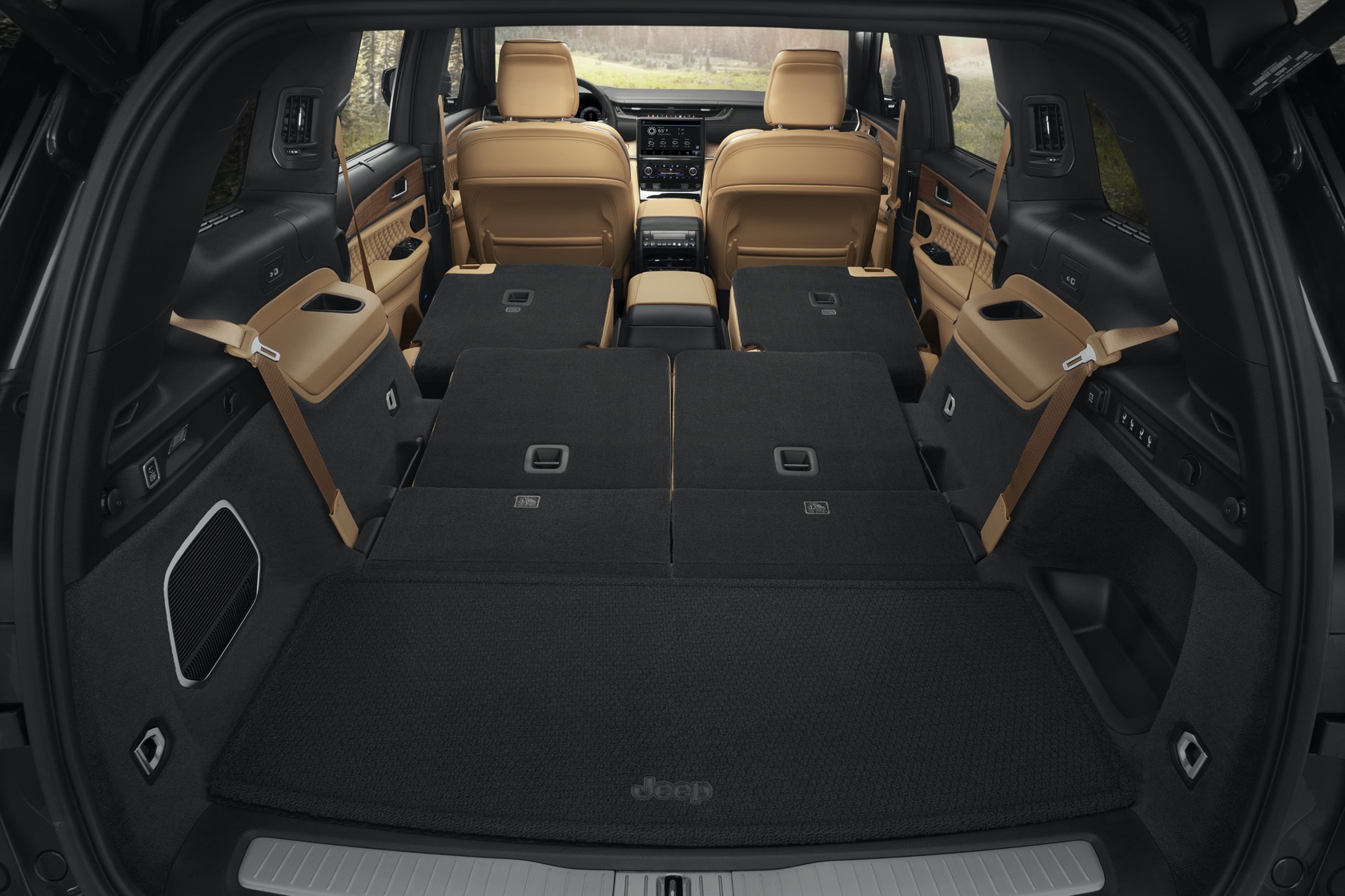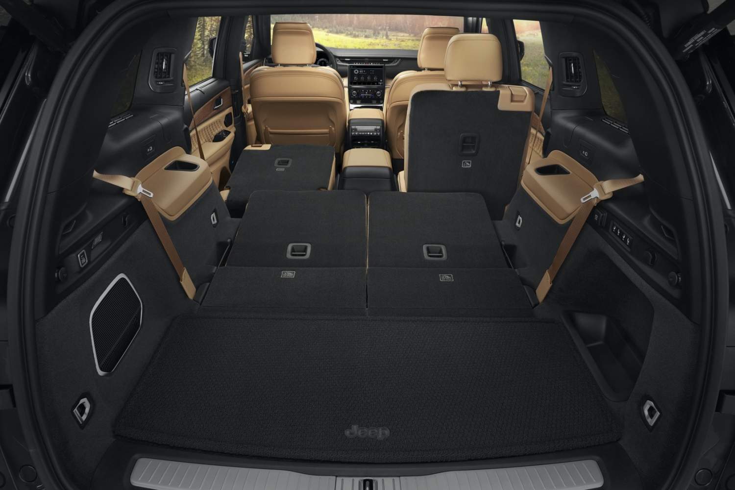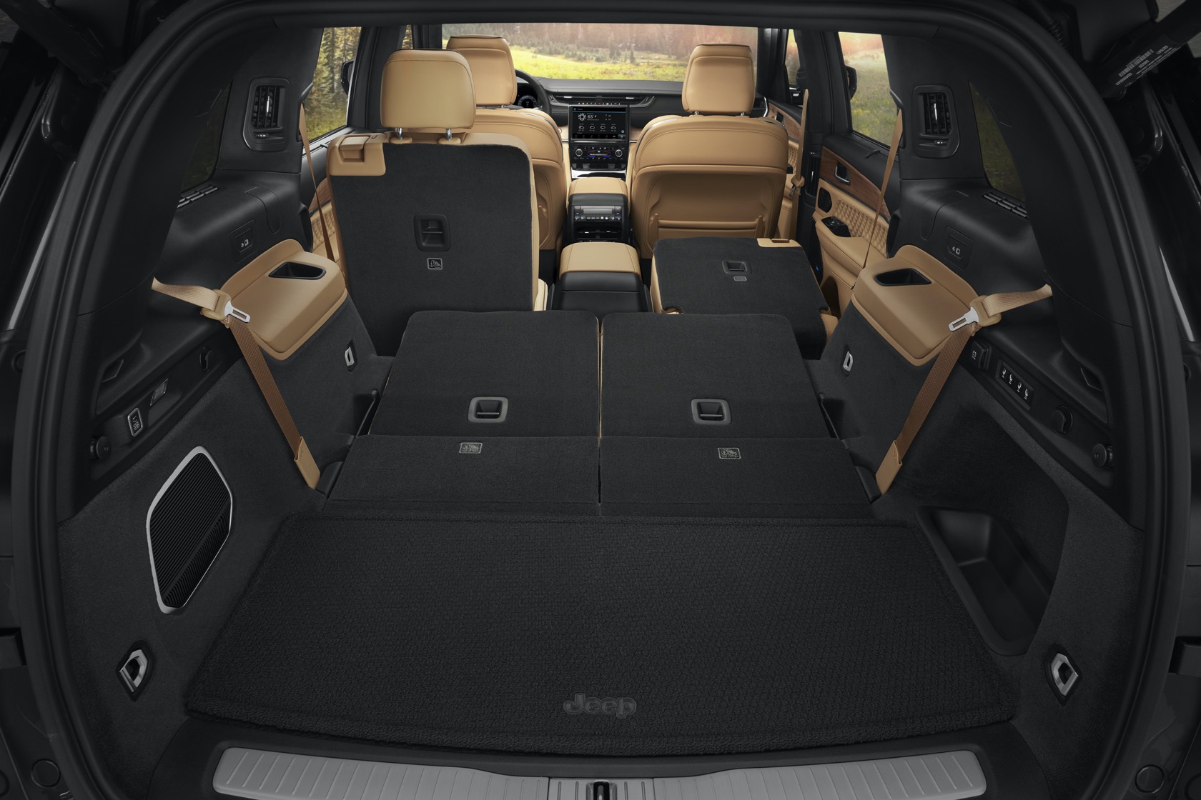 Under the hood there'll be one of two engines at launch. Standard is a 3.6-liter V6; optional is a 5.7-liter V8. Both get an eight-speed transmission. Still to come, Jeep says, is a 4xe electric version of the SUV.