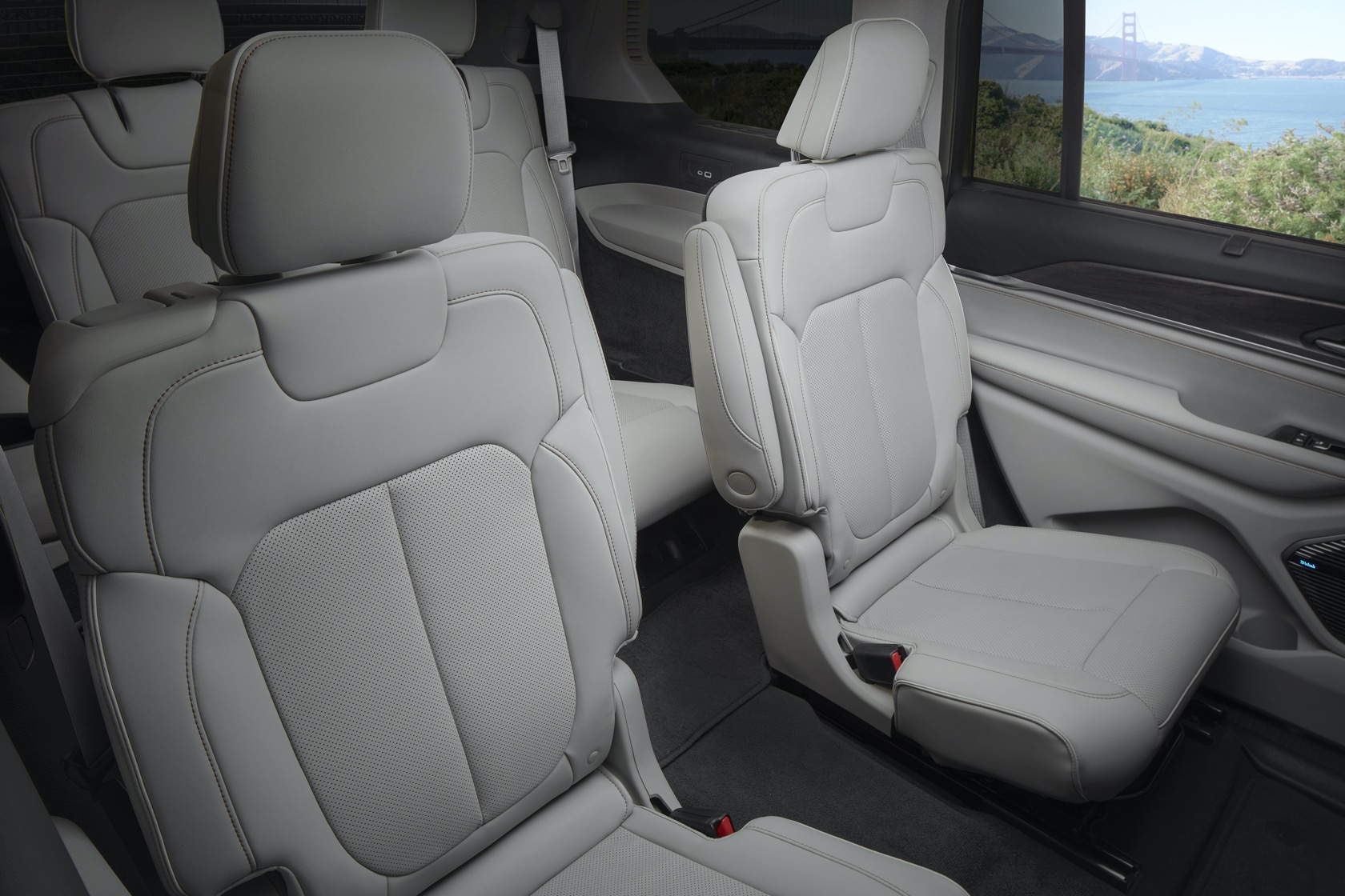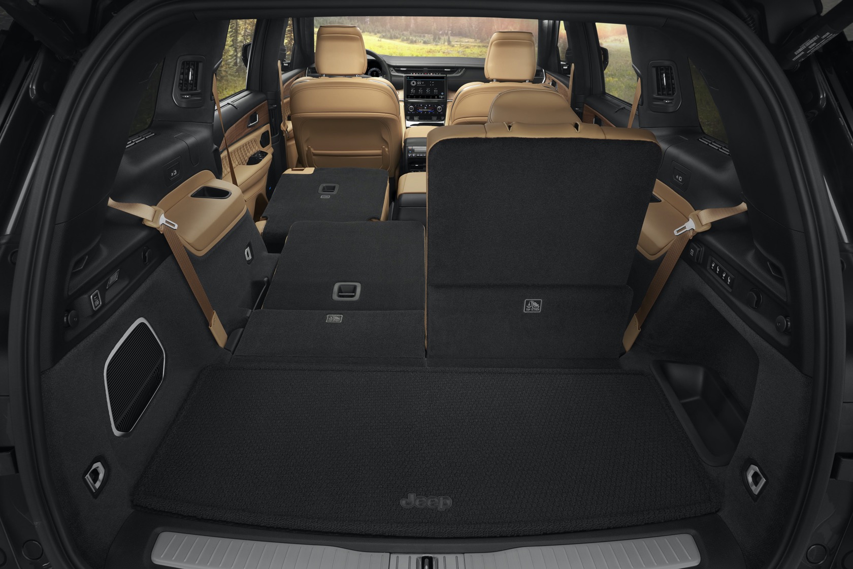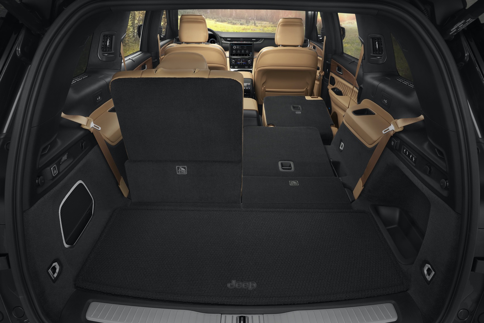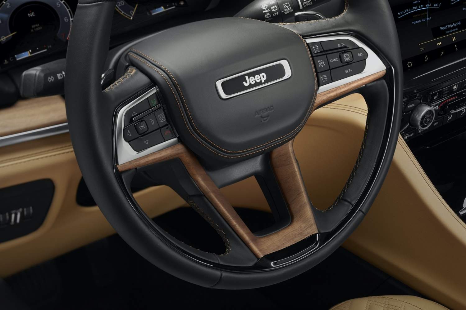 Under the hood there'll be one of two engines at launch. Standard is a 3.6-liter V6; optional is a 5.7-liter V8. Both get an eight-speed transmission. Still to come, Jeep says, is a 4xe electric version of the SUV.