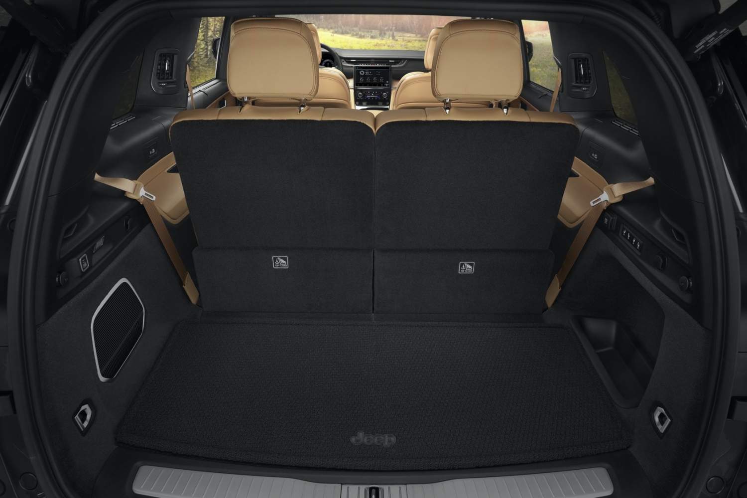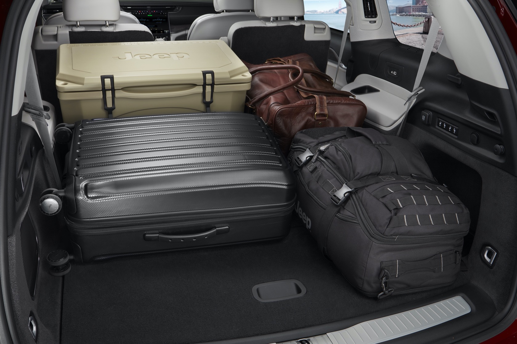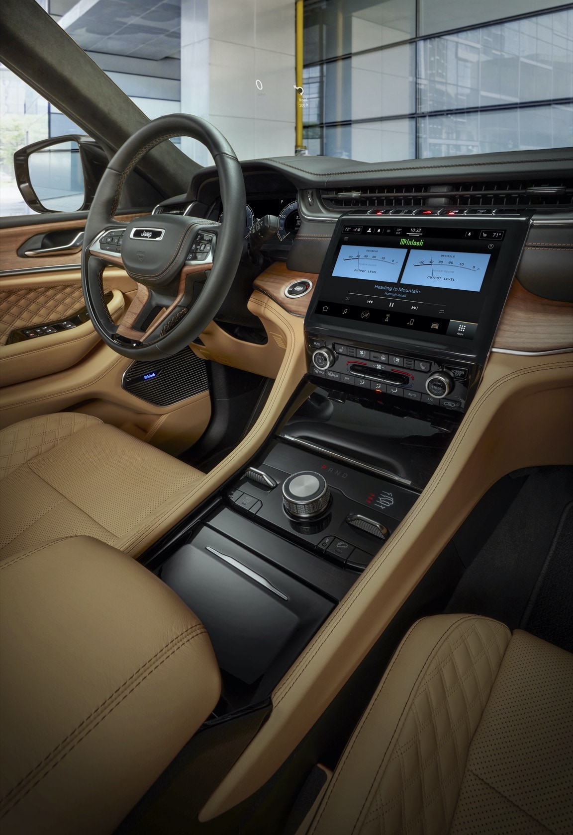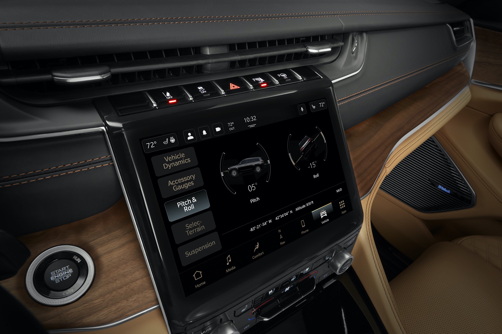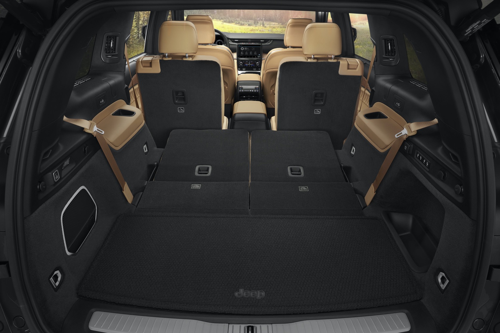 Under the hood there'll be one of two engines at launch. Standard is a 3.6-liter V6; optional is a 5.7-liter V8. Both get an eight-speed transmission. Still to come, Jeep says, is a 4xe electric version of the SUV.