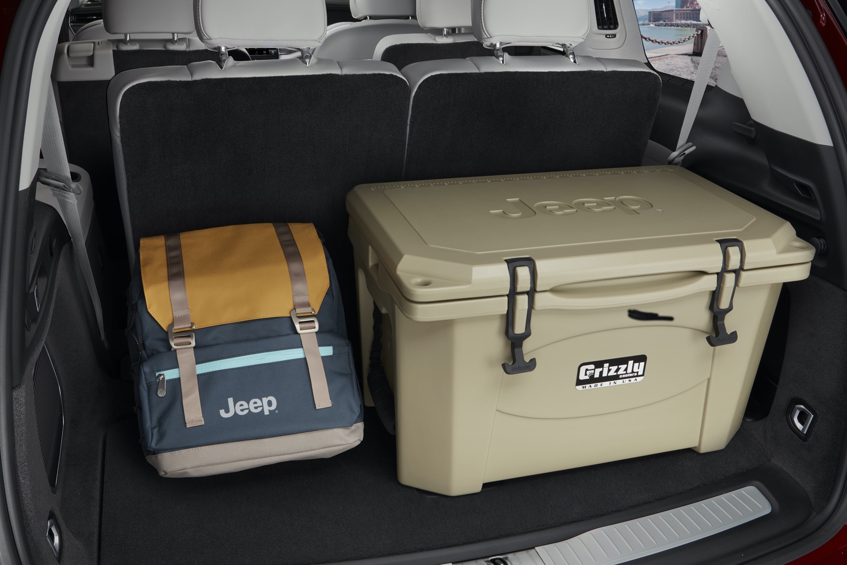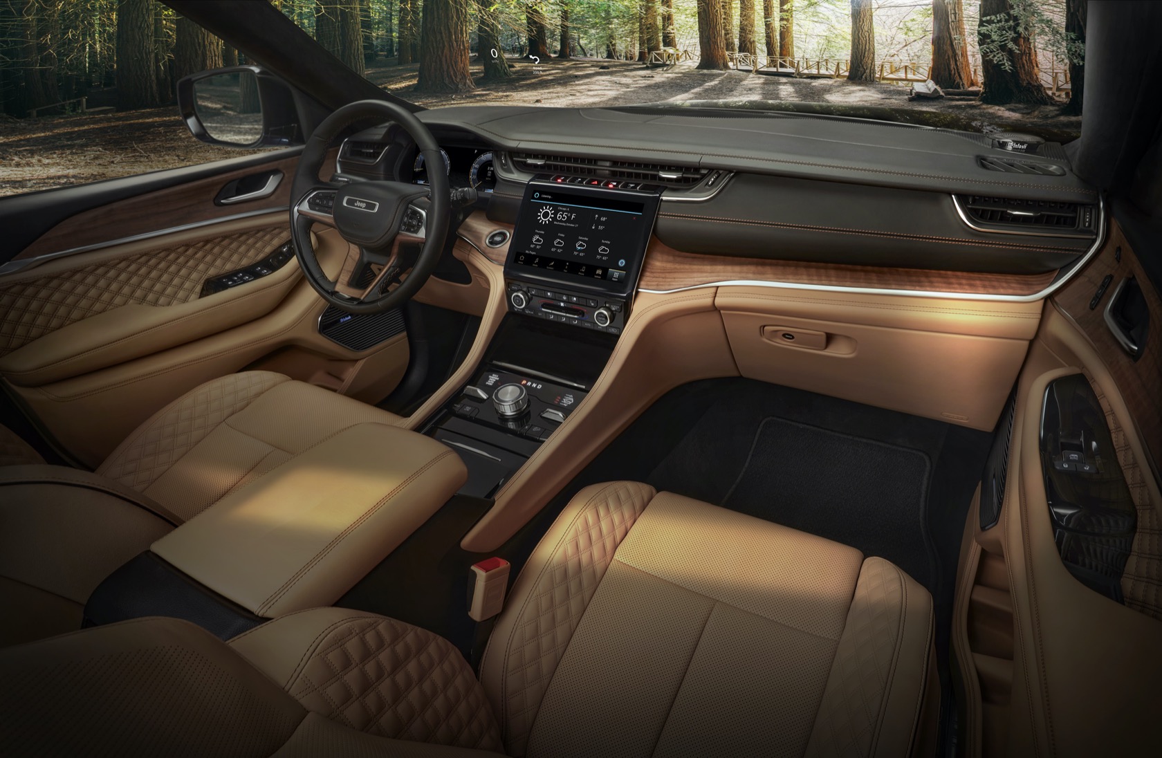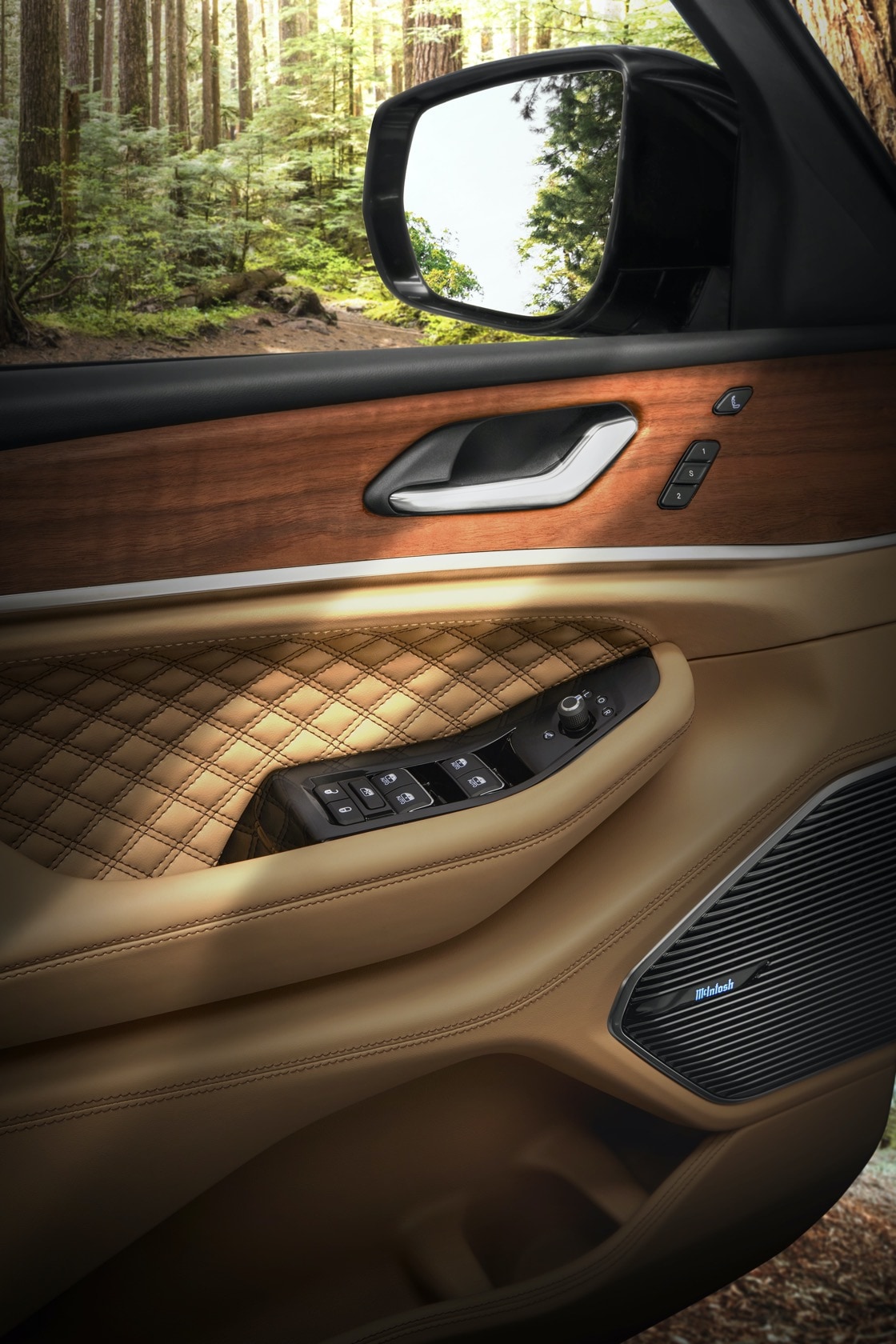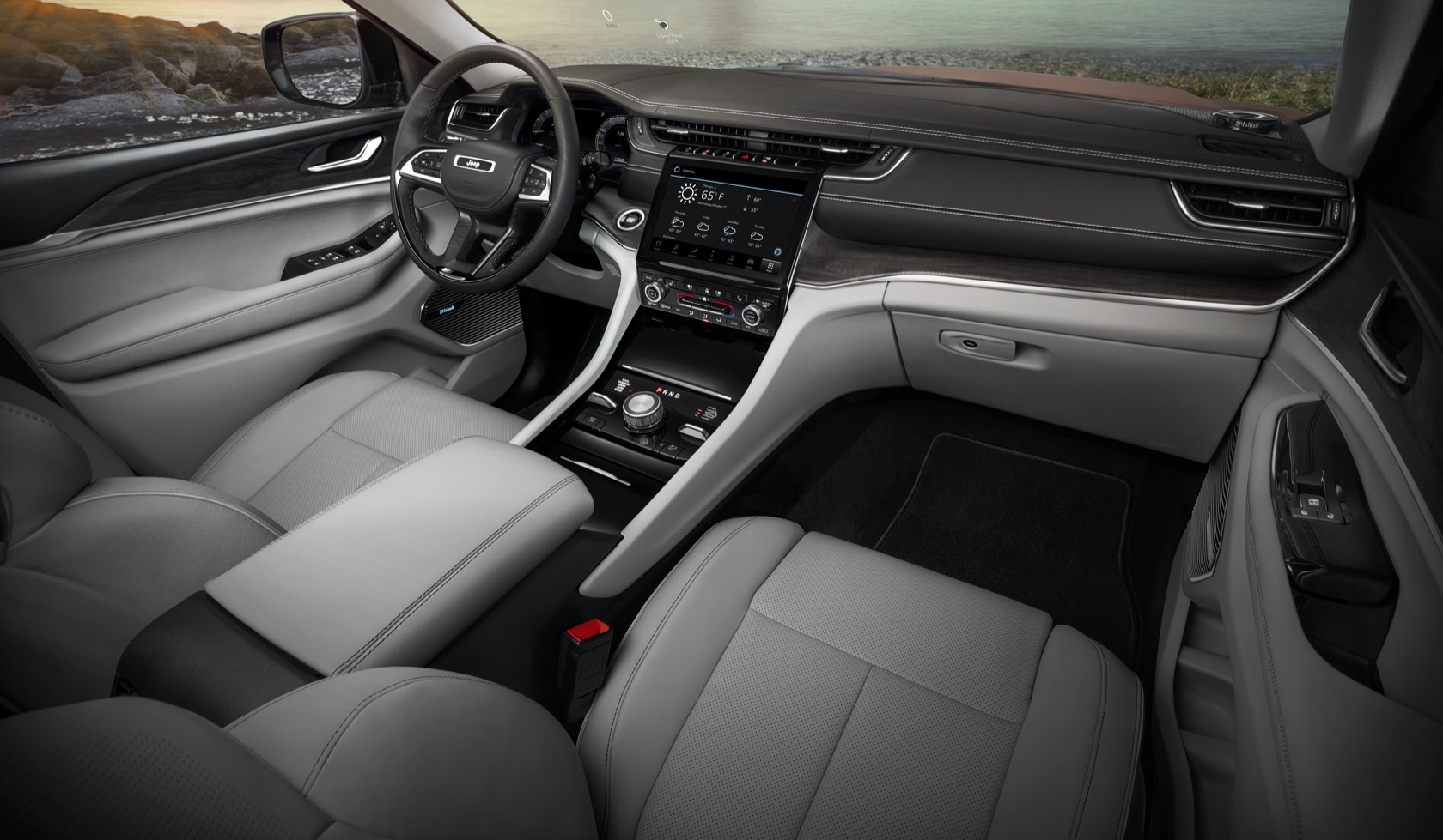 Under the hood there'll be one of two engines at launch. Standard is a 3.6-liter V6; optional is a 5.7-liter V8. Both get an eight-speed transmission. Still to come, Jeep says, is a 4xe electric version of the SUV.