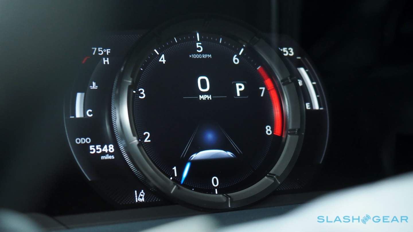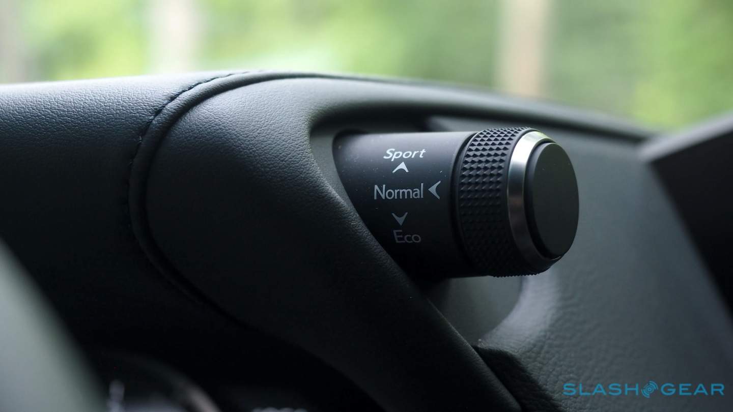What you get instead is dependability: the ES 250 cruises smoothly, with light steering and a generally serene drive. The F Sport package adds special suspension tuning, among the visual fancies, but active dampers are a separate option and weren't on my review car. Even without them, though, it's a compliant and cushy ride. Sure, you can twist the drive mode knob – perched up at the side of the instrument cluster – into Sport mode, but it just makes things louder and courser, without really having any noticeable benefit on overall pace.