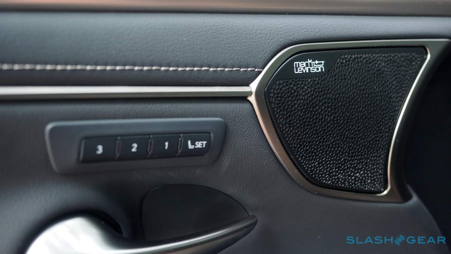 Only the door speaker grilles, perforated organically with a pattern reminiscent of some strange mushroom, add a touch of levity. You can enjoy them as you fuss your way through Lexus' annoying infotainment system, here with the bigger, 12.3-inch screen courtesy of the $2,900 Mark Levinson and Navigation package. Regardless of whether you get that, or just the standard 8.0-inch screen, you're stuck with Lexus' touchpad to scroll through it.