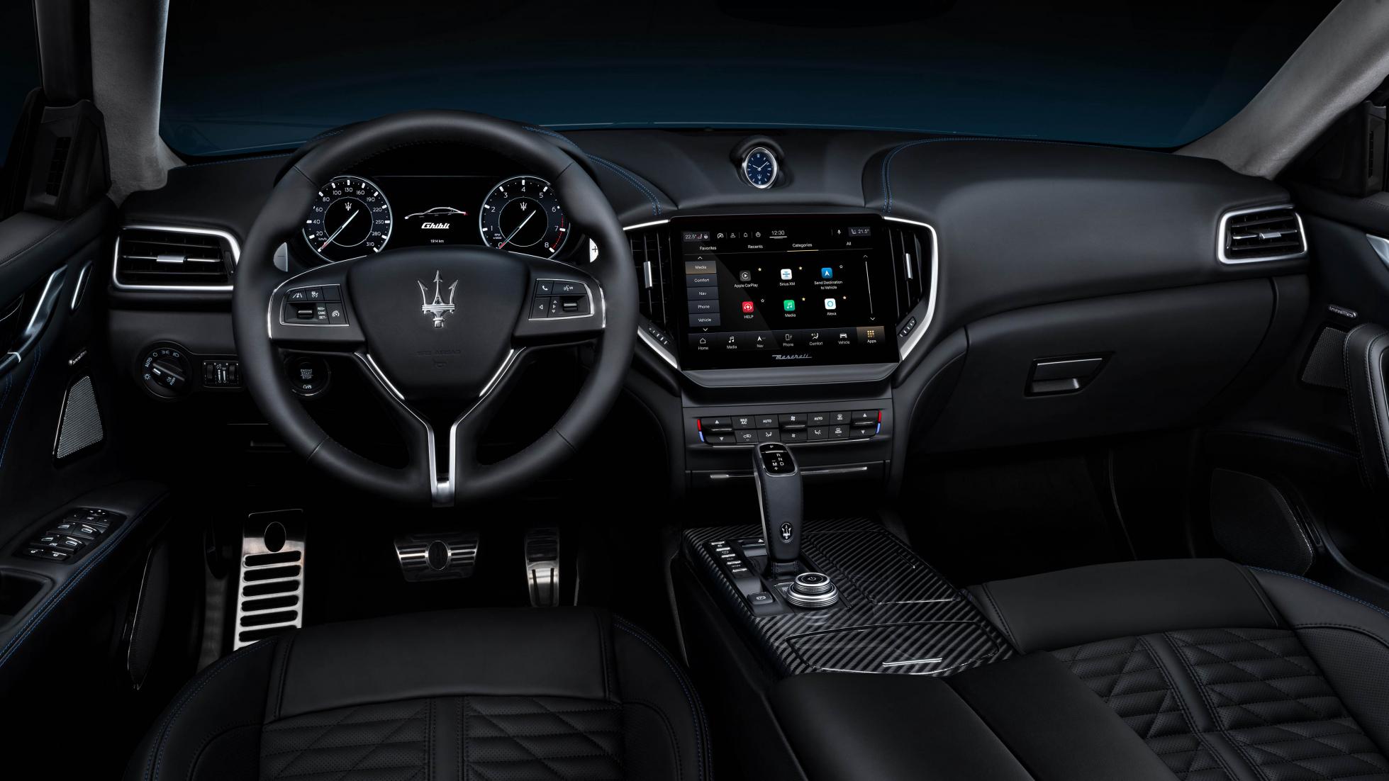 New for the 2021 Maserati Ghibli Hybrid is a 10-inch touchscreen infotainment display with Maserati Connect and over-the-air updates. Production starts this September, while the first European deliveries are arriving in late October.