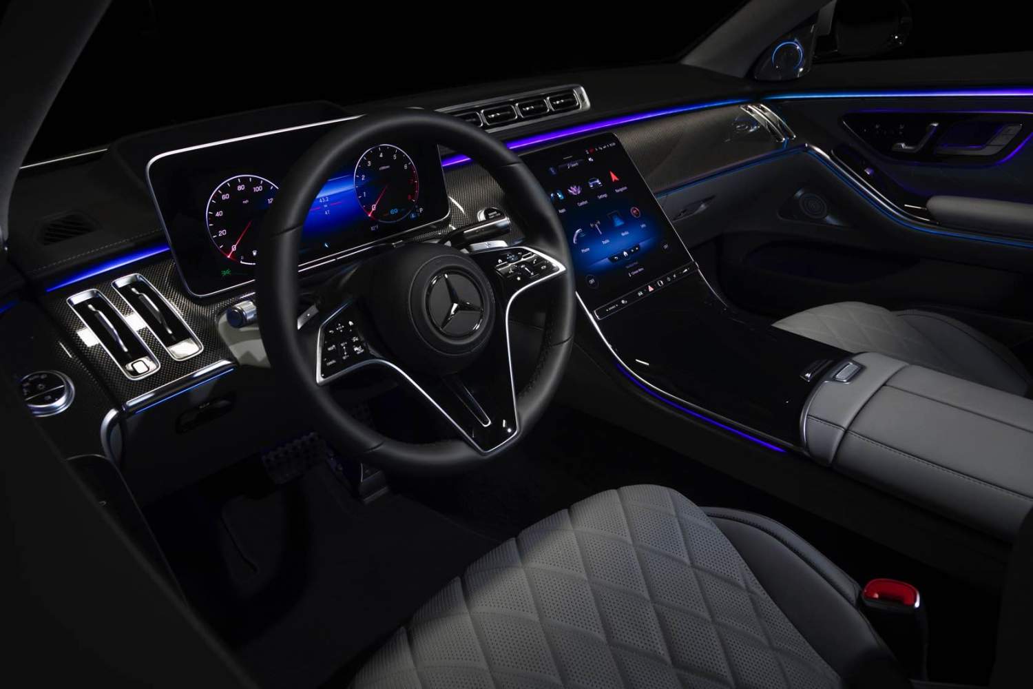 Active ambient lighting taps up to 250 LEDs and is now integrated into the driving assistance systems. It means you not only get a soothing glow inside the cabin, but visual warnings for better awareness. As you'd expect for Mercedes de-facto showcase, the S-Class is overflowing with active safety tech, possibly making it one of the safest cars on the road. It has an active distance assist that predicts the speed regulation ahead of speed limits, and active steering assist that follows the driving lane up to 130 mph. Meanwhile, the S-Class also comes with standard active lane-keeping assist and active lane changing assist, blind-spot assist, and active brake assist, to name just a few.