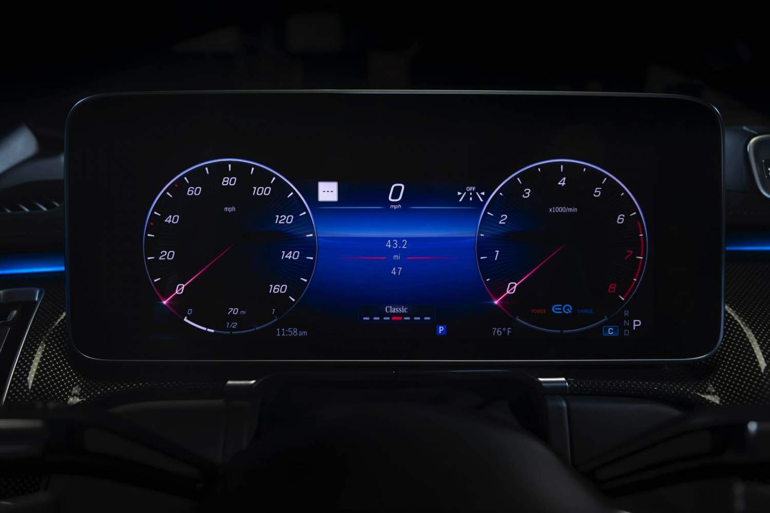 Unsurprisingly, Mercedes' options list is long and varied. There are $1,950 21" AMG V-Multispoke wheels with black inlays, $1,300 4.5-degree rear-axle steering, a $250 heated steering wheel, and my favorite option – the 3D Technology package. In return for your $3,000, you get the MBUX augmented reality head-up display and 3D instrument cluster.