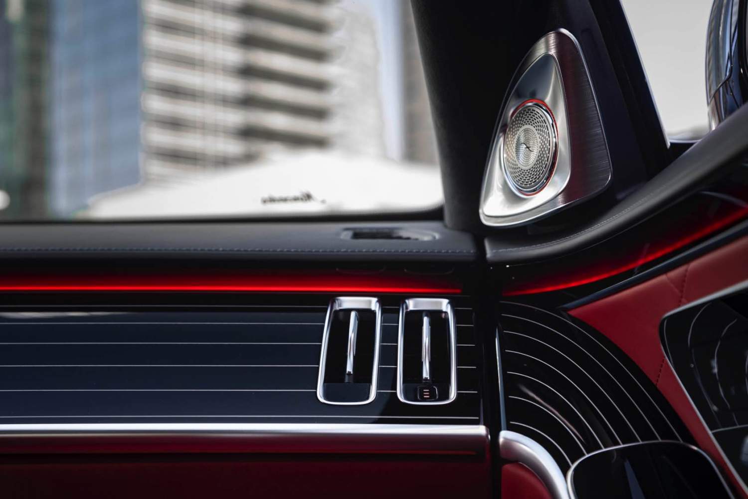 Driving tunes are courtesy of a bespoke Burmester 4D surround sound system, pumping out 1,750 watts of power via 30 high-end speakers and two resonators in each seat. It allows a virtual four-dimensional listening experience, which feels like the artist is playing on a rotating pedestal to recreate the harmonics of an actual live performance. The system can also direct navigation instructions to the driver's seat only, to not disturb the passengers from their dreamy listening experience.