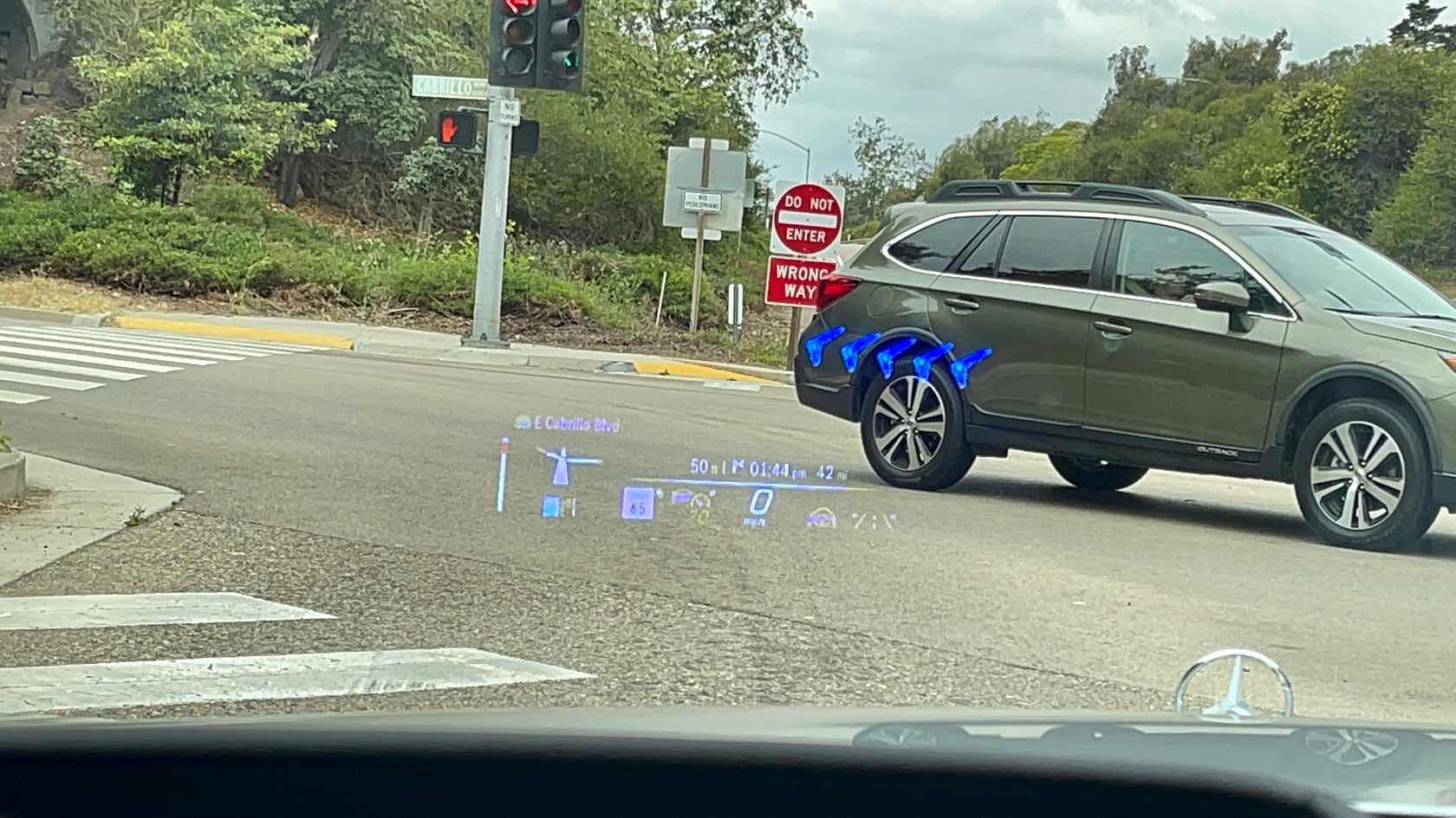 Another favorite feature of mine is the new head-up display, which floats a virtual 77-inch diagonal screen out at a virtual distance of 32 feet. I had a lot of fun with this feature. The augmented reality aspect virtually projects all your driving information, such as speed, driving assistance settings. Still, it goes a step further by overlaying navigation instructions as well. I love how precise the lane markings are shown in almost true to size. The system also tracks the vehicle in front as well.
