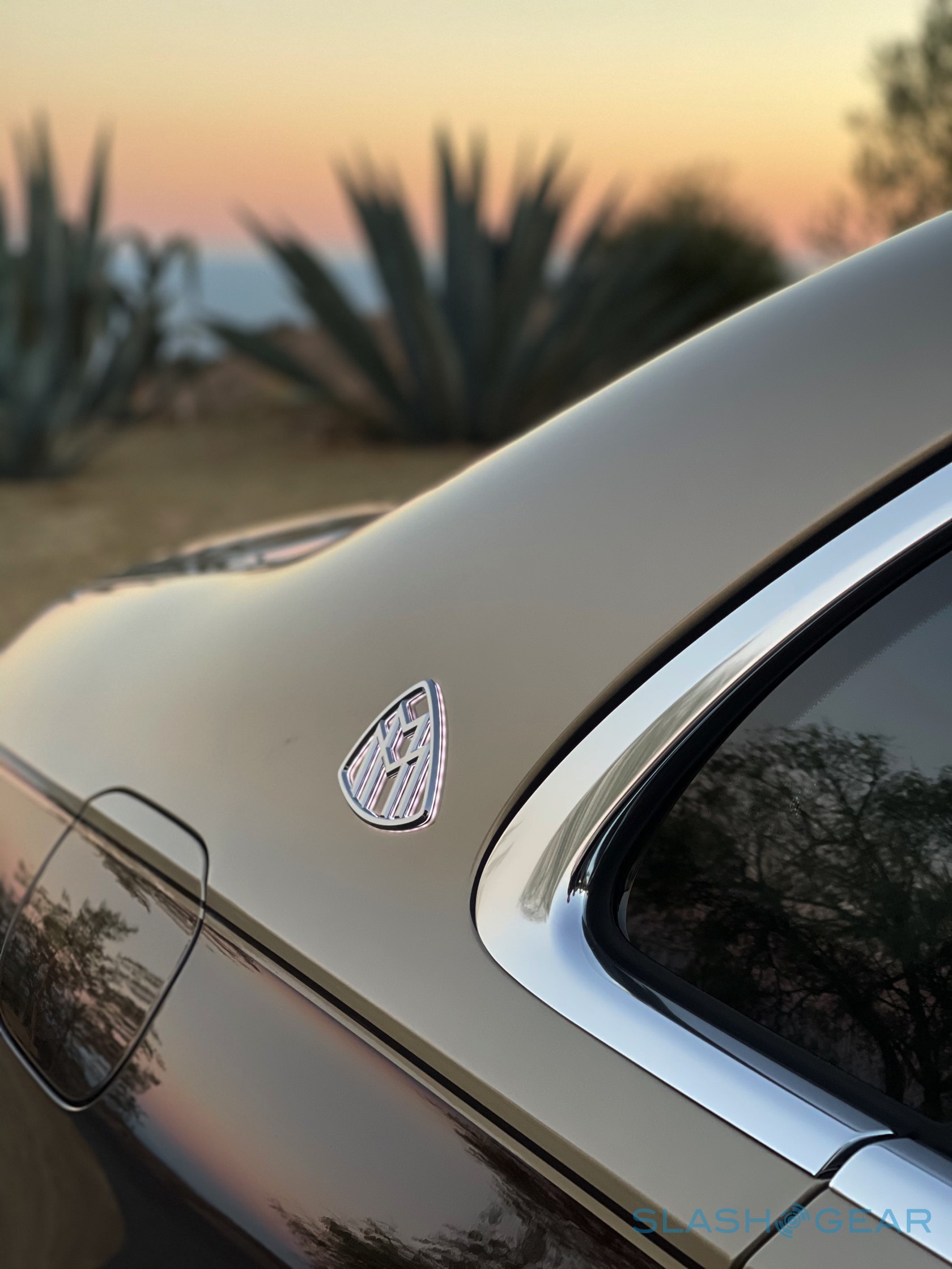 Unlike a regular S-Class – and with cleanly clearing tight driveways in mind, even with that extra length – the Maybach comes standard with rear-axle steering, reducing the turning circle by up to two meters (or seven feet). Depending on your chosen wheel size (20-inch custom wheels are standard), the rear wheels can turn up to 10 degrees to improve high-speed handling and low-speed maneuverability.