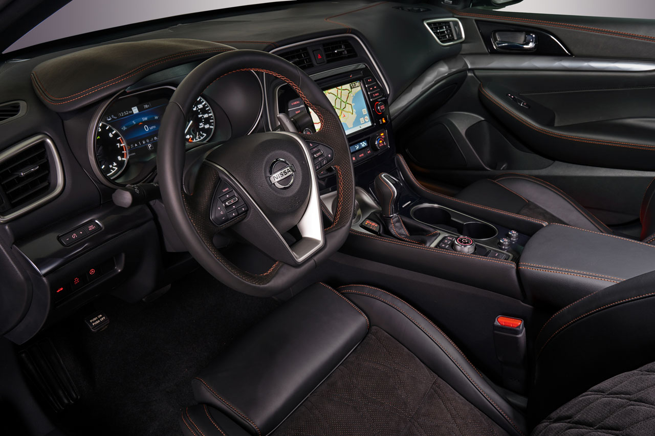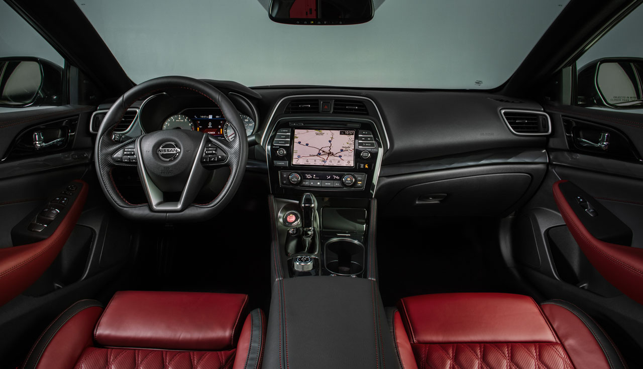 All Maxima versions get LED headlights with Nissan Signature Daytime Running Lights. The vehicle is designed to seat five occupants and is designed around a driver-oriented cockpit. Nissan Safety Shield 360 is standard across the line with numerous driver assistance and safety devices.