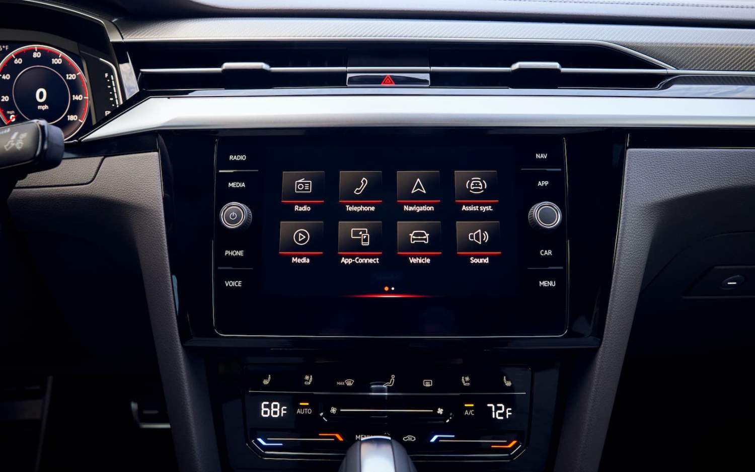 Inside, things are well specified if a little dark. You get leather on the seats and steering wheel, plus tri-zone climate control, heating for the front seats, and an 8-inch touchscreen infotainment system with wireless Android Auto and Apple CarPlay. There's also a wireless charging pad, remote start, and a fully-digital driver display. You'd not be wrong in comparing all that to what Audi offers on that aforementioned A5 Sportback, and noting with alarm just how much more the Arteon's sibling would cost you for it.