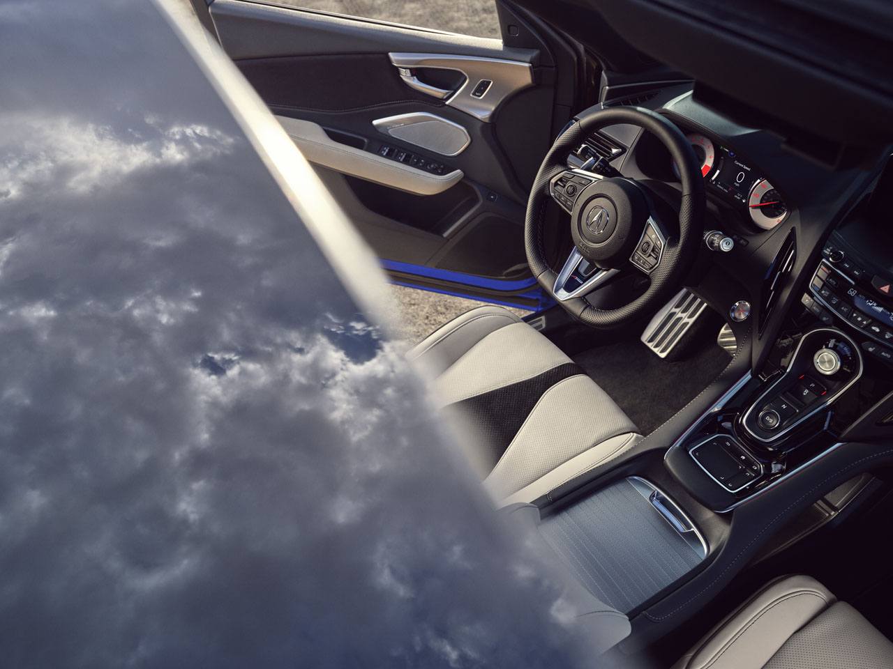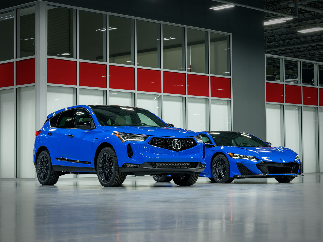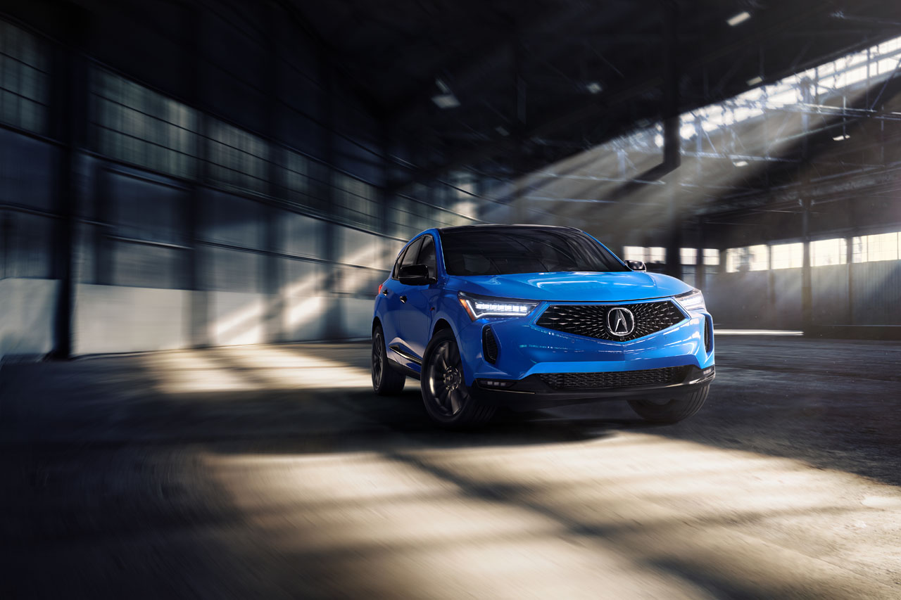 Buyers of the RDX A-spec get a flat-bottom sport steering wheel, and Advance Package buyers get power-folding side mirrors. The RDX PMC edition includes Long Beach Blue Pearl paint with an orchid interior, and production is limited to 200 units. All MSRPs include the destination and handling charge.