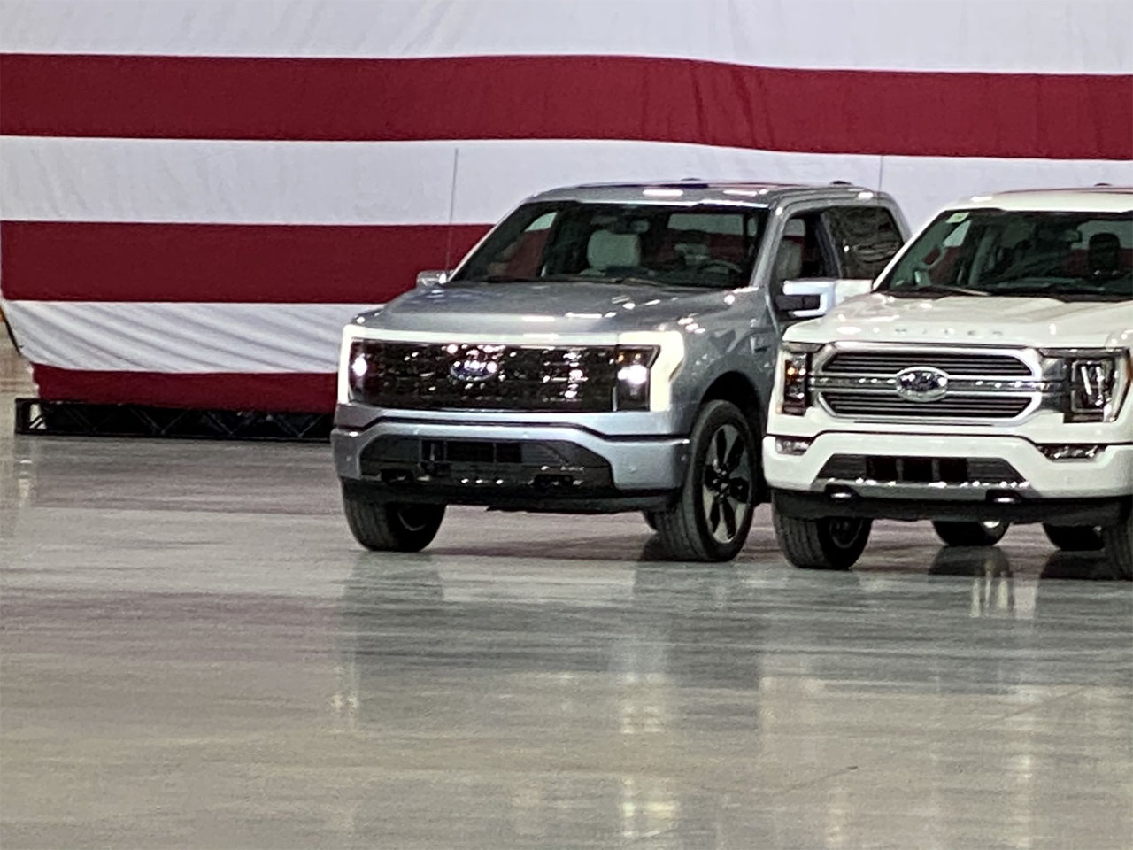 And there it is. The electric @Ford F-150 Lightning ahead of comments by @POTUS. pic.twitter.com/IF0baIT55w
