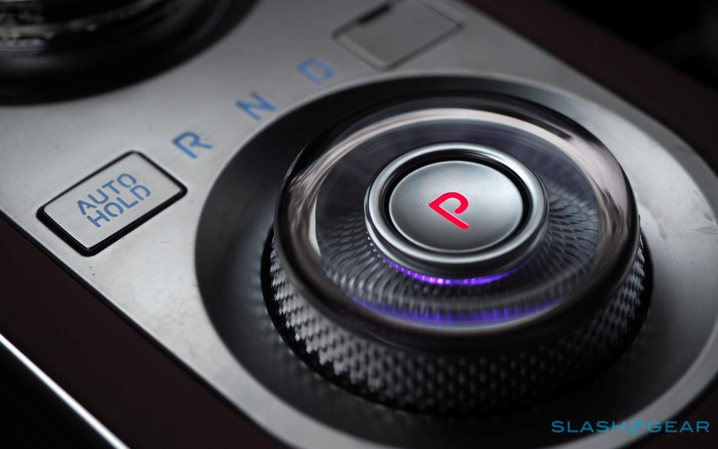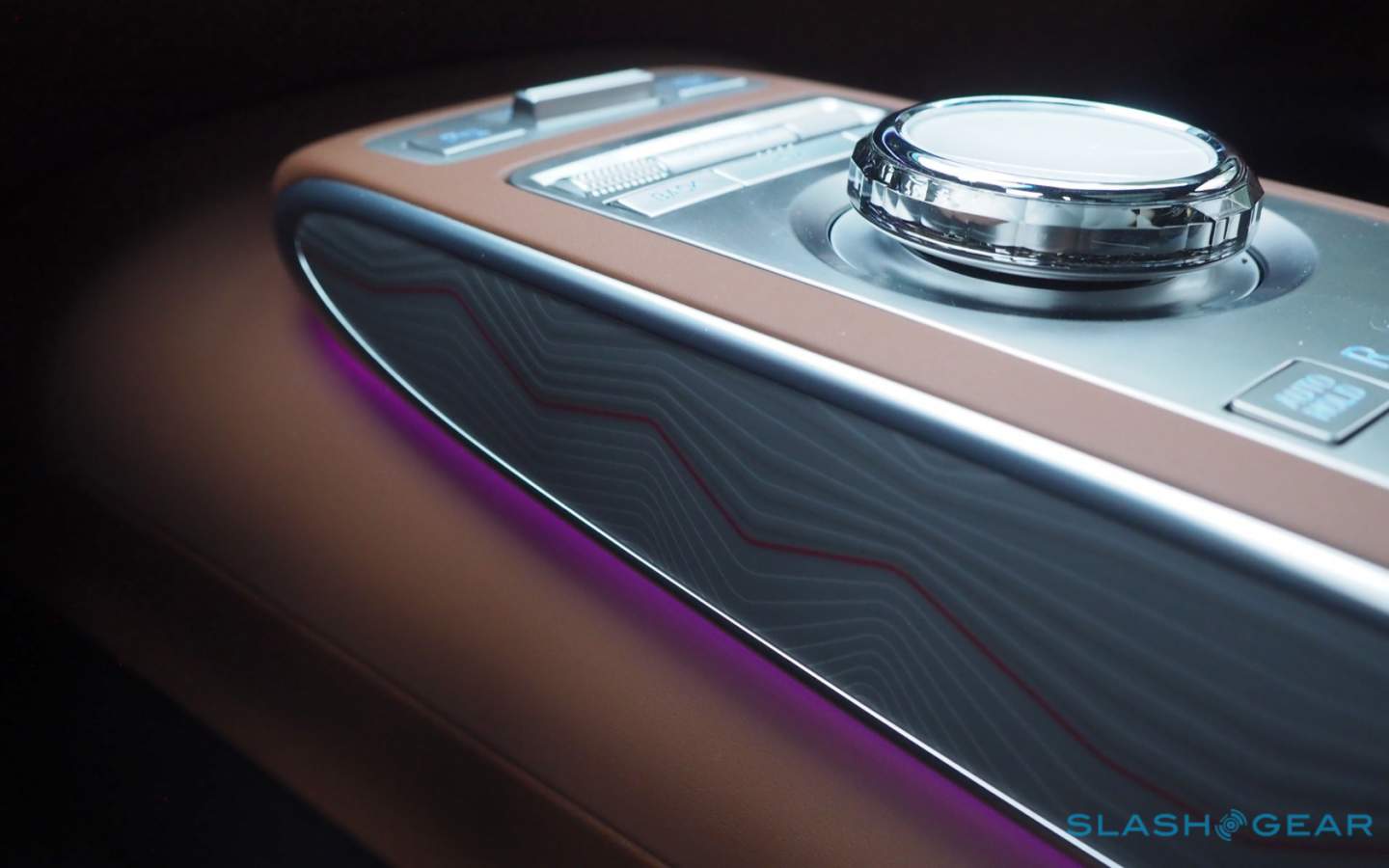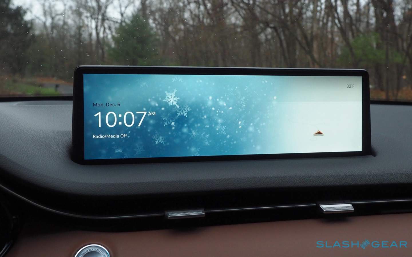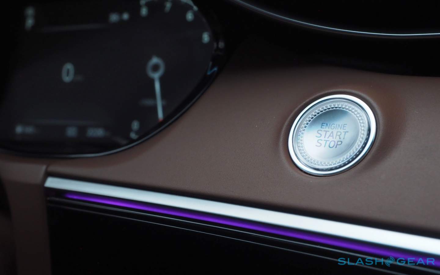 Swathes of soft-touch material span the dashboard, intersected with a scoop of metal and glossy touchscreen for the HVAC controls. A sizable crystal drive mode dial sits in the center console, behind a similarly-lavish jog wheel for the infotainment system. That spins, yes, but its smooth, concave surface is a trackpad as well. Or, you can simply reach out and tap the wide, low, 14.5-inch touchscreen which is generously standard on all trims.
