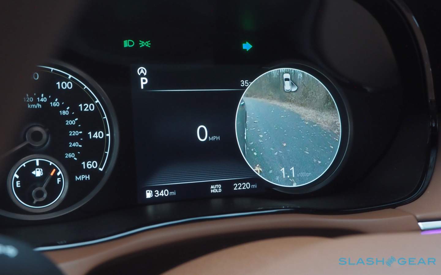 Advanced trim and above have leather seats, a 360-degree camera, blind spot view monitor (which pipes a live camera feed from the side of the car to the instrument cluster when you flip on the turn-signal), along with parking collision-avoidance assist alongside a brace of standard safety tech. That includes Smart Cruise Control with Stop & Go; Genesis' surprisingly capable Highway Driving Assist II lane-keeping assistance tech is offered on higher-spec cars. It's one of the better systems out there, though it does require hands-on-wheel reassurance.