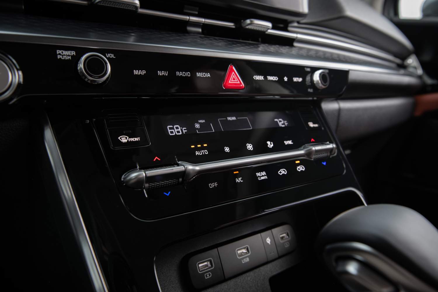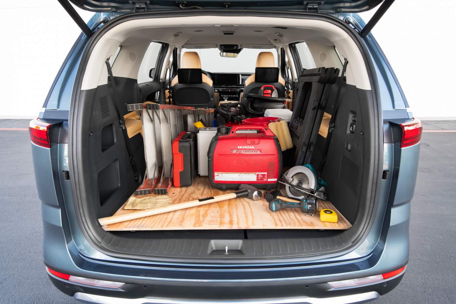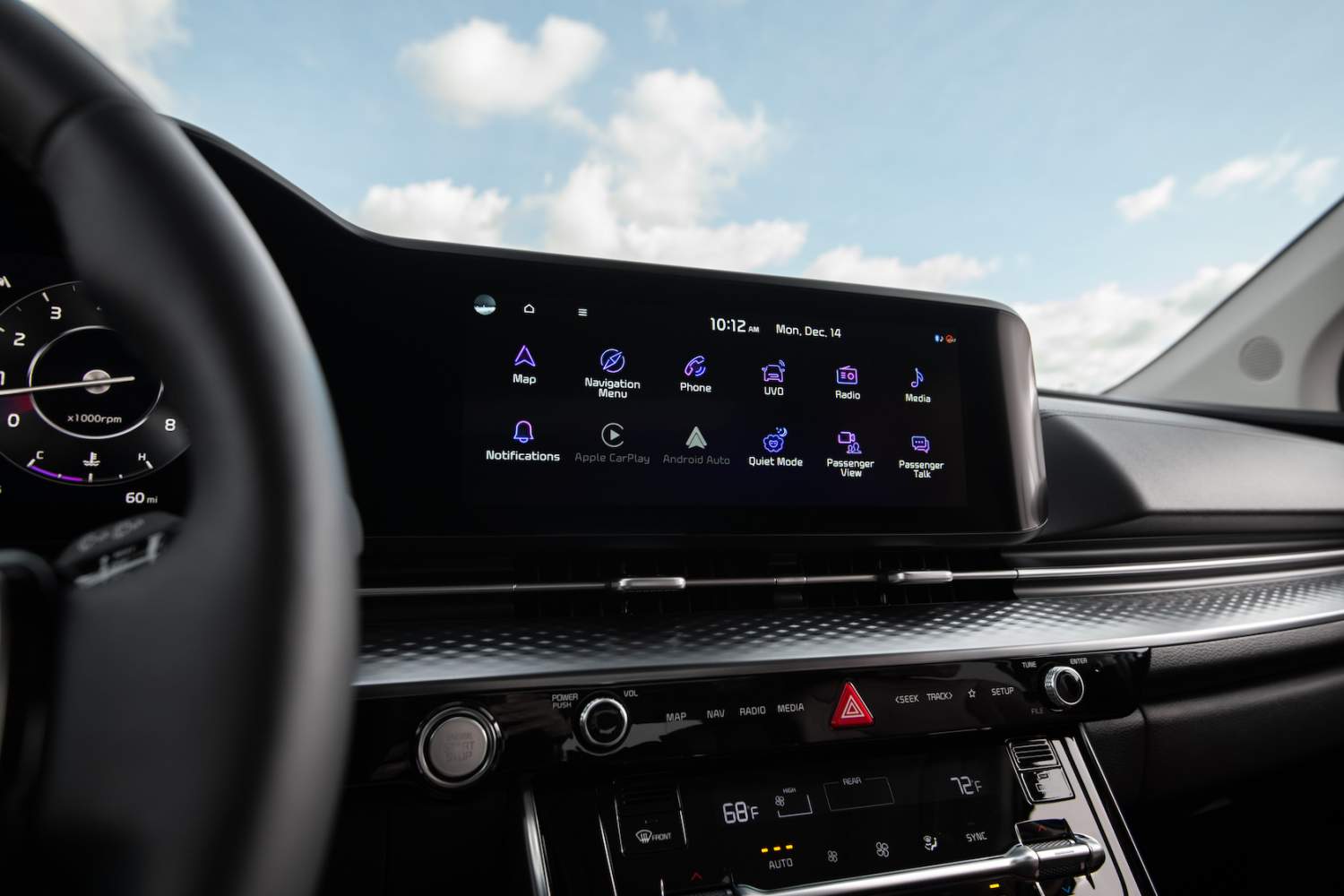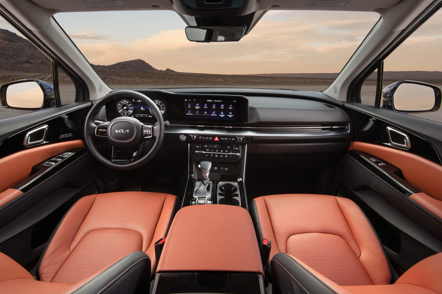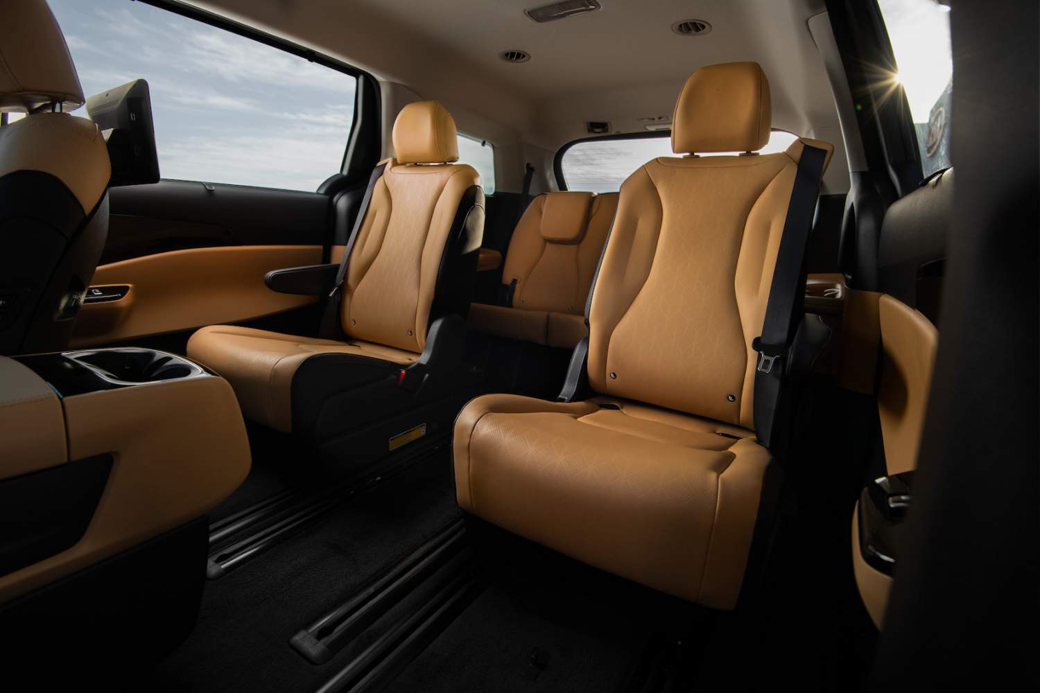 Inside, there's wireless Apple CarPlay and Android Auto as standard, along with wireless phone charging. Upscale trims get rear displays with wireless phone mirroring, a rear cabin camera and intercom, and even luxury second-row seats with heating, cooling, leg extensions, and power adjustment.