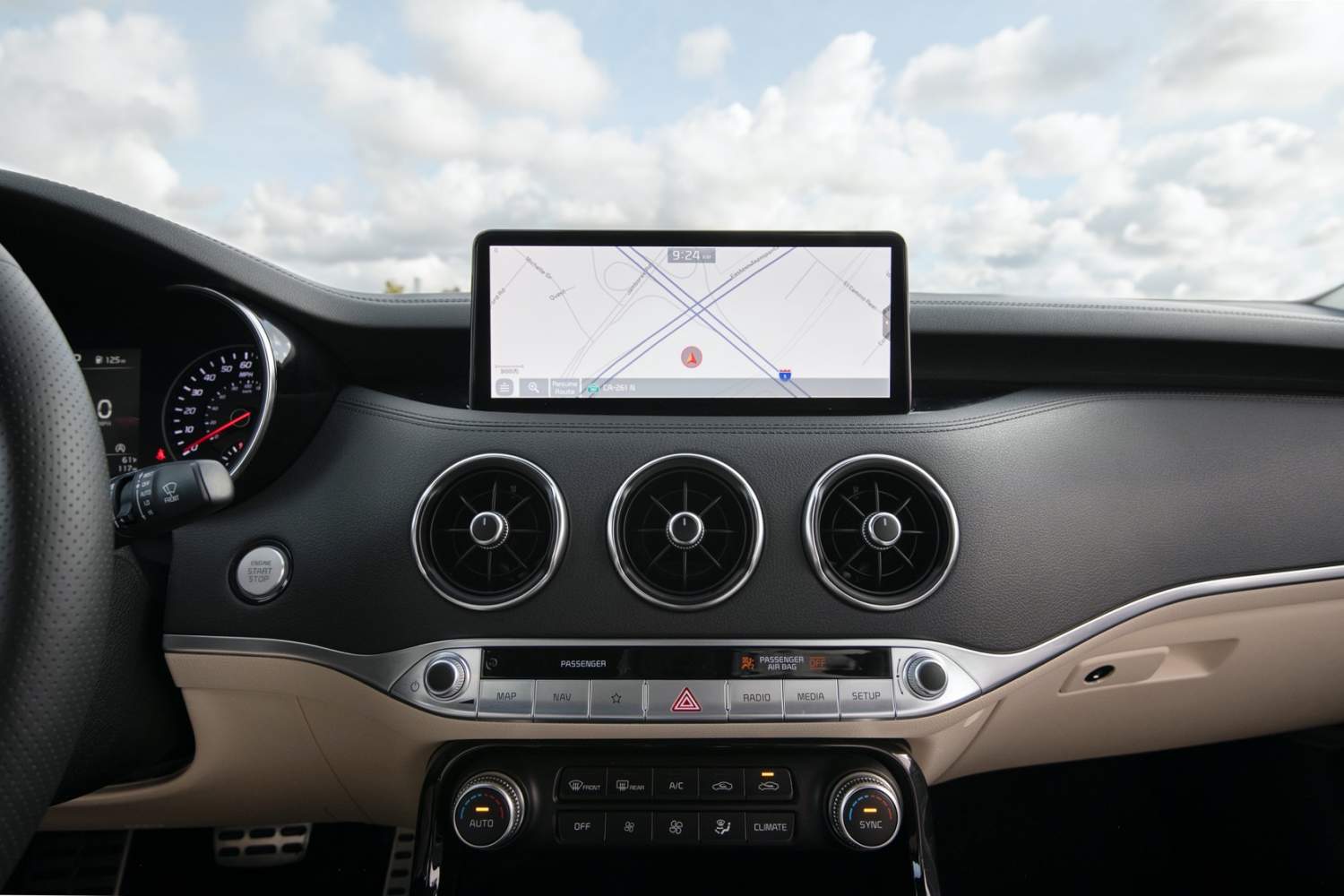 Standard is a 10.25-inch touchscreen display with navigation, Apple CarPlay, and Android Auto, plus multi-connection Bluetooth. You get a wireless phone charger, too, and a 4.2-inch cluster display; a 7-inch version is standard on the GT2, as are memory seats, Nappa leather, and a power-adjustment wheel. GT-Line and GT1 cars get leather seats with heating; the GT2 throws in front ventilation and rear heating. A heated steering wheel is optional on all trims.
